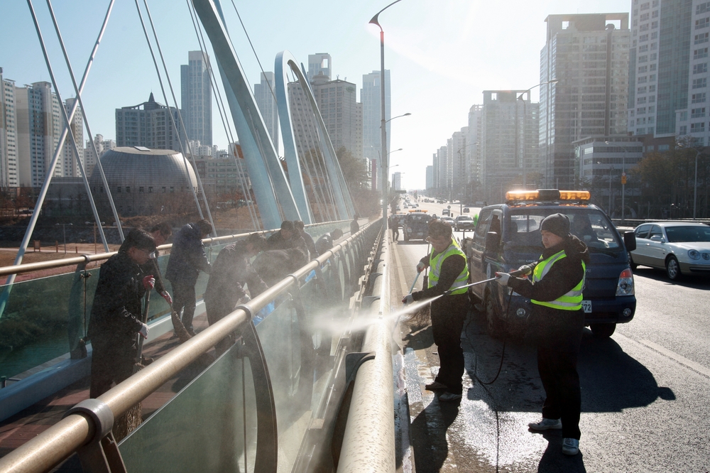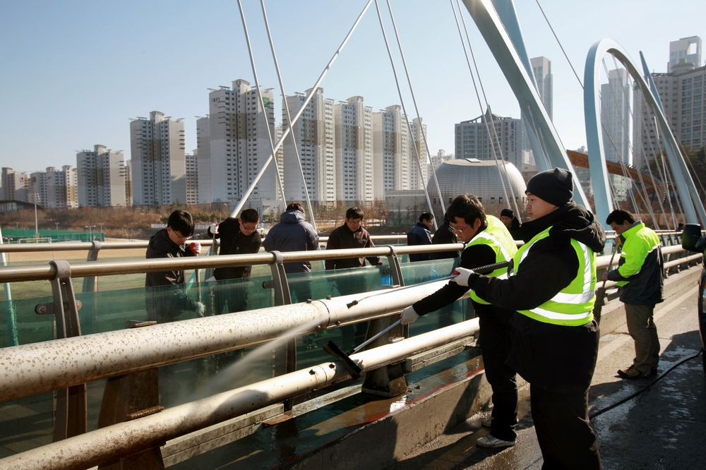 2011년 3월 3일, IFEZ 직원 및 관계자들은 송도를 청소하였다.