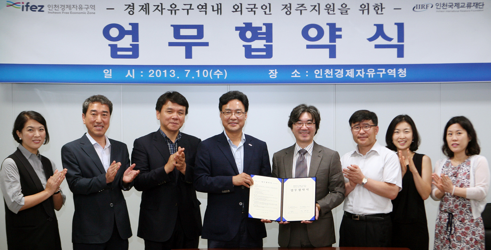 2013년 7월 10일 이종철 청장은 인천국제교류재단과 IFEZ에 입주한 외국인의 정주지원을 담당하고 있는 글로벌센터 운영에 대한 업무협약을 체결하였다.