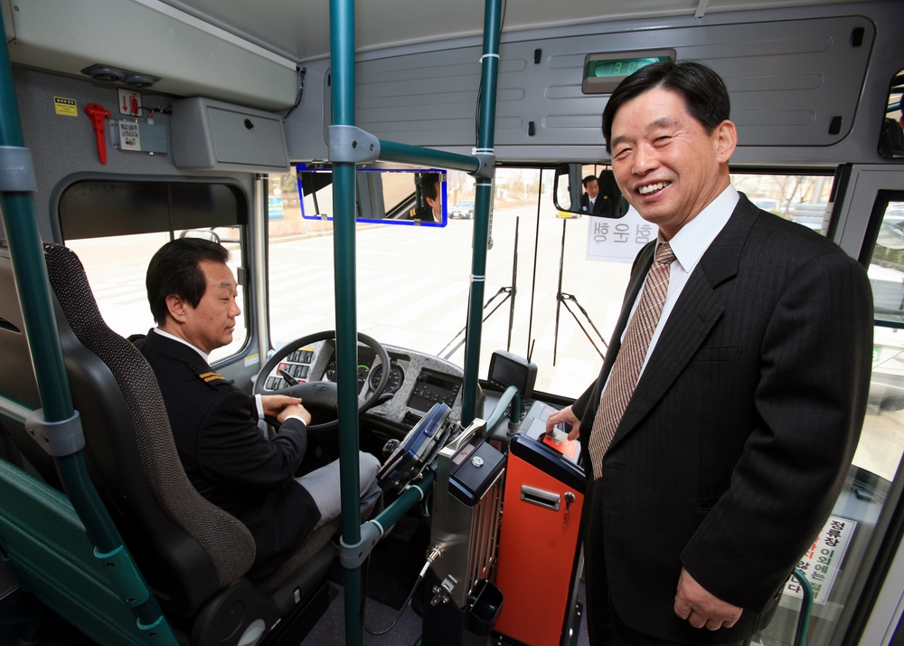 2009년 2월 23일 이헌석 청장은 앞으로 운행 될 송도국제도시 순환버스에 시승을 하고 있다.