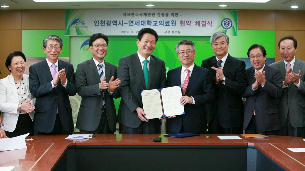 2010년 9월 28일 인천광역시와 연세대학교의료원은 연세대 세브란스 국제병원 건립을 위한 MOU를 체결하였다. 연세대의료원은 송도국제도시 7공구 연세대 국제화복합단에 외국인 전용 300병상을 포함해 1,000병상 규모의 국제병원을 건립하게 된다.