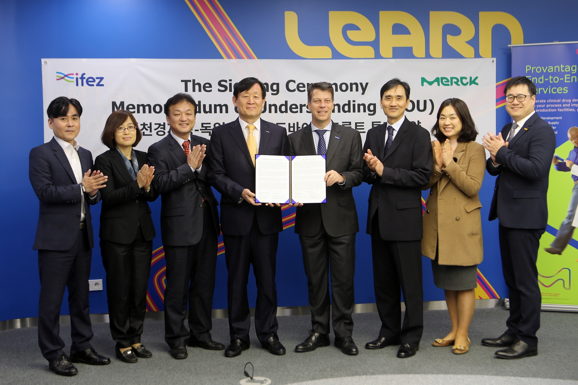 2016년 11월 14일, 이영근 청장은 독일 머크와 송도바이오프론트 투자협약을 체결하였다. 한국머크는 송도국제도시 내 물류서비스, 제조시설 등에 투자를 확대하고, IFEZ는 투자와 관련된 행정적 지원을 약속하였다.