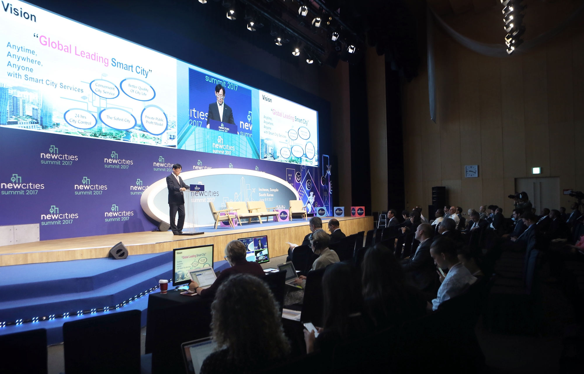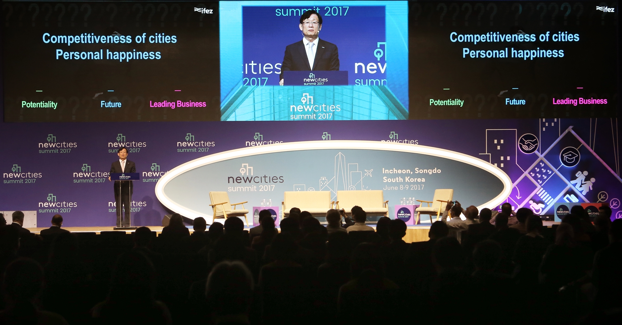 2017년 6월 7일~9일까지 송도컨벤시아에서 ‘2017 뉴시티 서밋’이 개최되었다. 뉴시티 서밋은 전세계 스마트시티, 도시 관련 전문가들이 한자리에 모여 새로운 미래도시 모델을 제시하는 국제회담이다. 뉴시티 서밋에 주제는 ‘번영하는 도시 : 도시 웰빙의 기본 구성 요소(Thriving Cities : The Building Blocks of Urban Wellbeing)’이다. 이영근 청장은 9일 오전에 IFEZ 개발현황의 주제로 기조발표를 하였다.