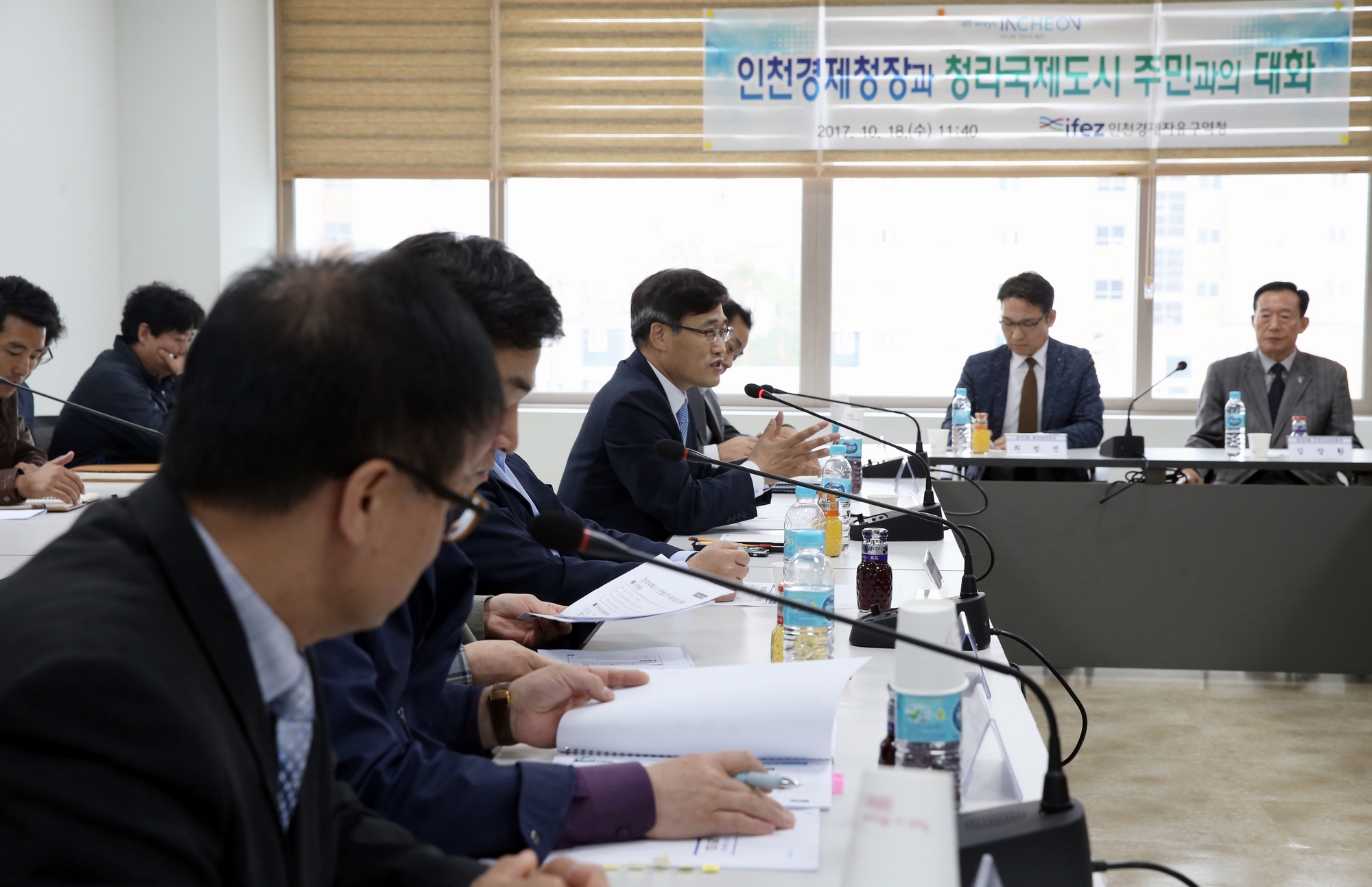 김진용 청장은 2017년 10월 18일, 청라국제도시 청라1동 주민센터에서 IFEZ 주요간부들과 함께 현장 간부회의를 개최했다. 회의가 종료 후 청라국제도시 개발 현장과 주민과의 대화도 함께 진행했다.