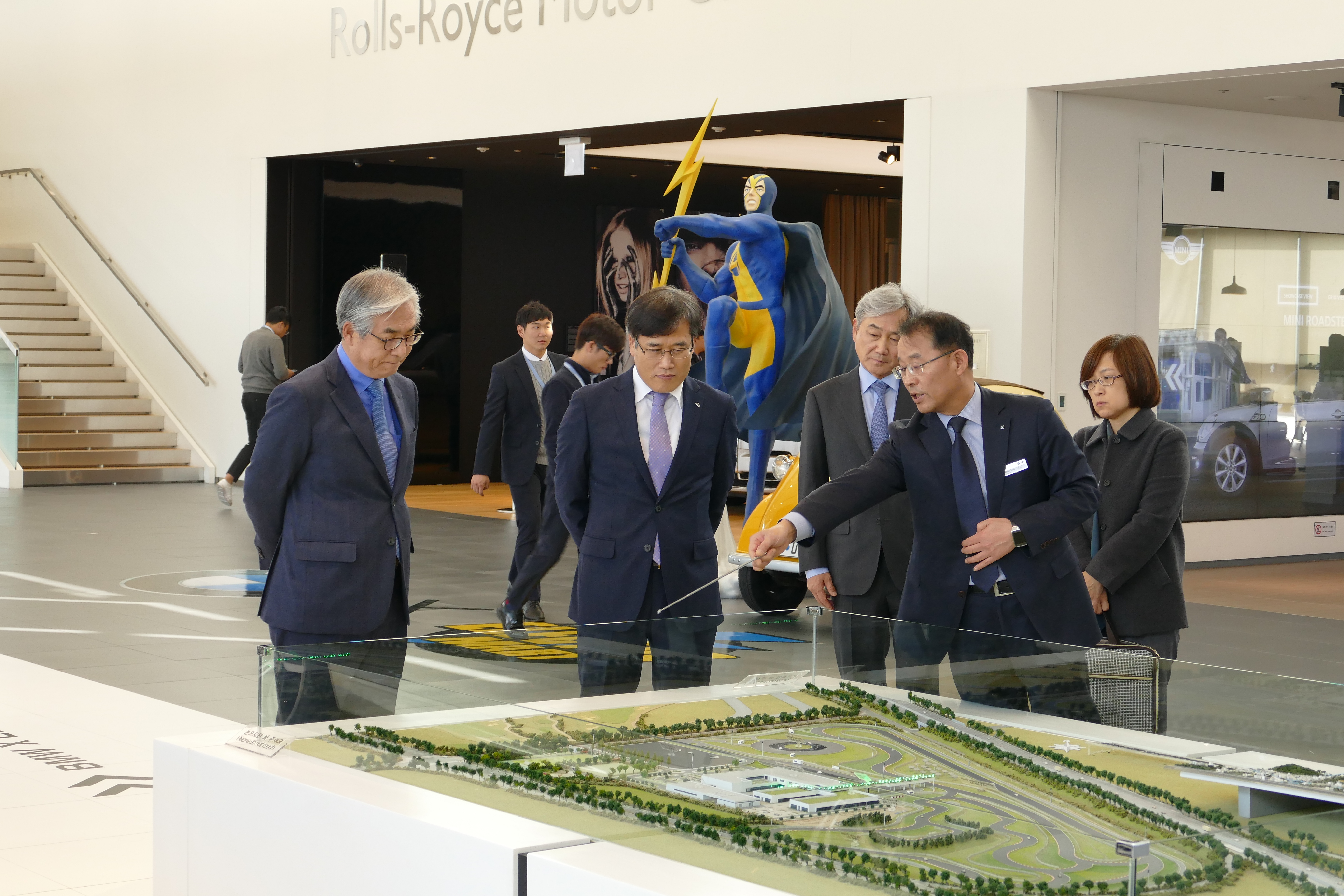 김진용 인천경제자유구역청장은 15일 IFEZ(인천경제자유구역) 영종지구의 대표적 랜드마크로 자리잡은 BMW 드라이빙 센터를 방문, 애로사항을 청취하고 자동차 전시장, 이벤트 홀, 체육시설 등 다양한 시설을 둘러보고 드라이빙 체험 시승도 했다.