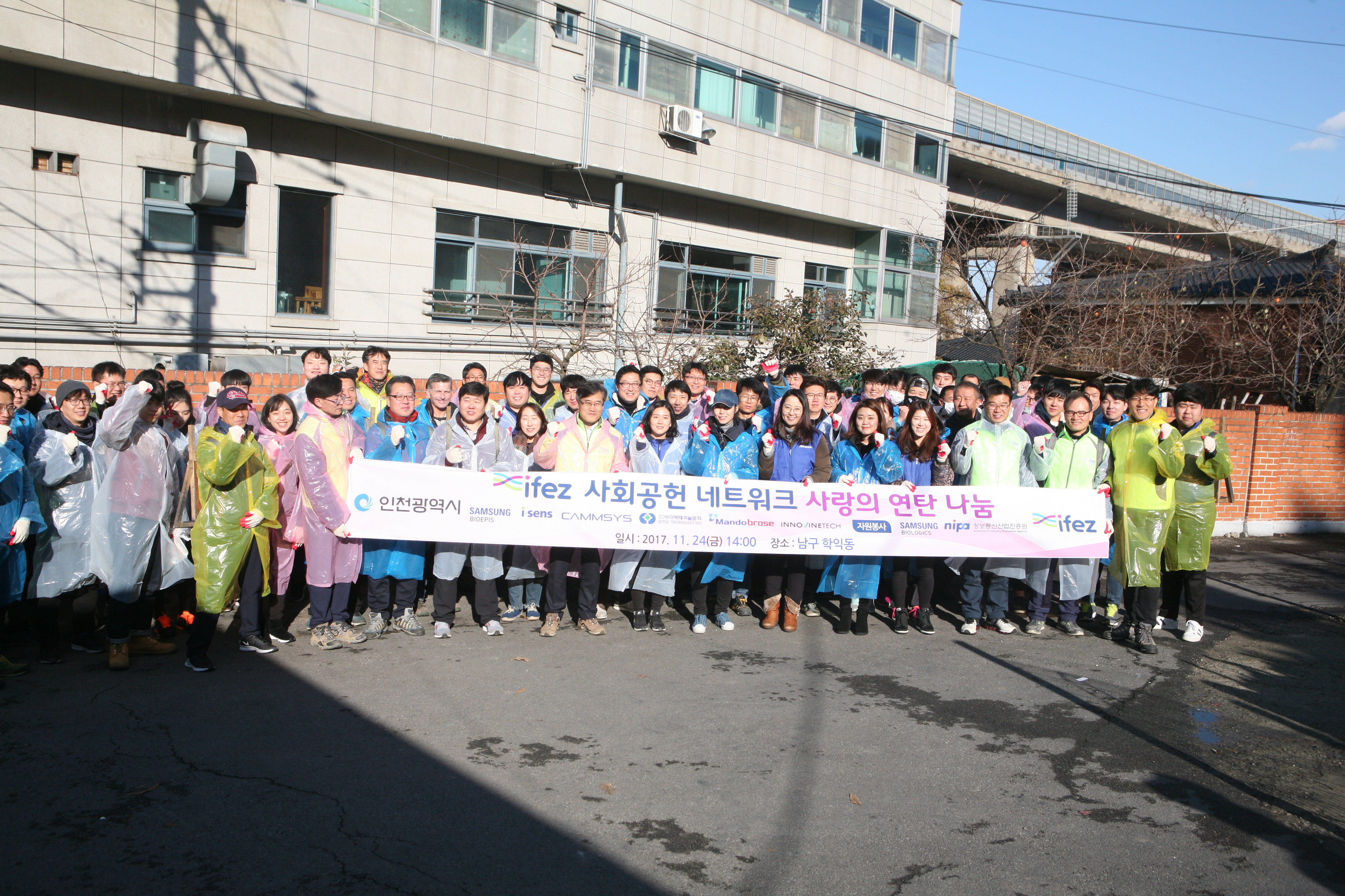김진용 인천경제자유구역청장은 사회공헌 사업의 일환으로 IFEZ 입주기업 직원들과 함께 24일 오후 남구 학익동을 방문, 연탄을 직접 전달하는 “IFEZ 사랑의 연탄 나눔” 행사를 가졌다.