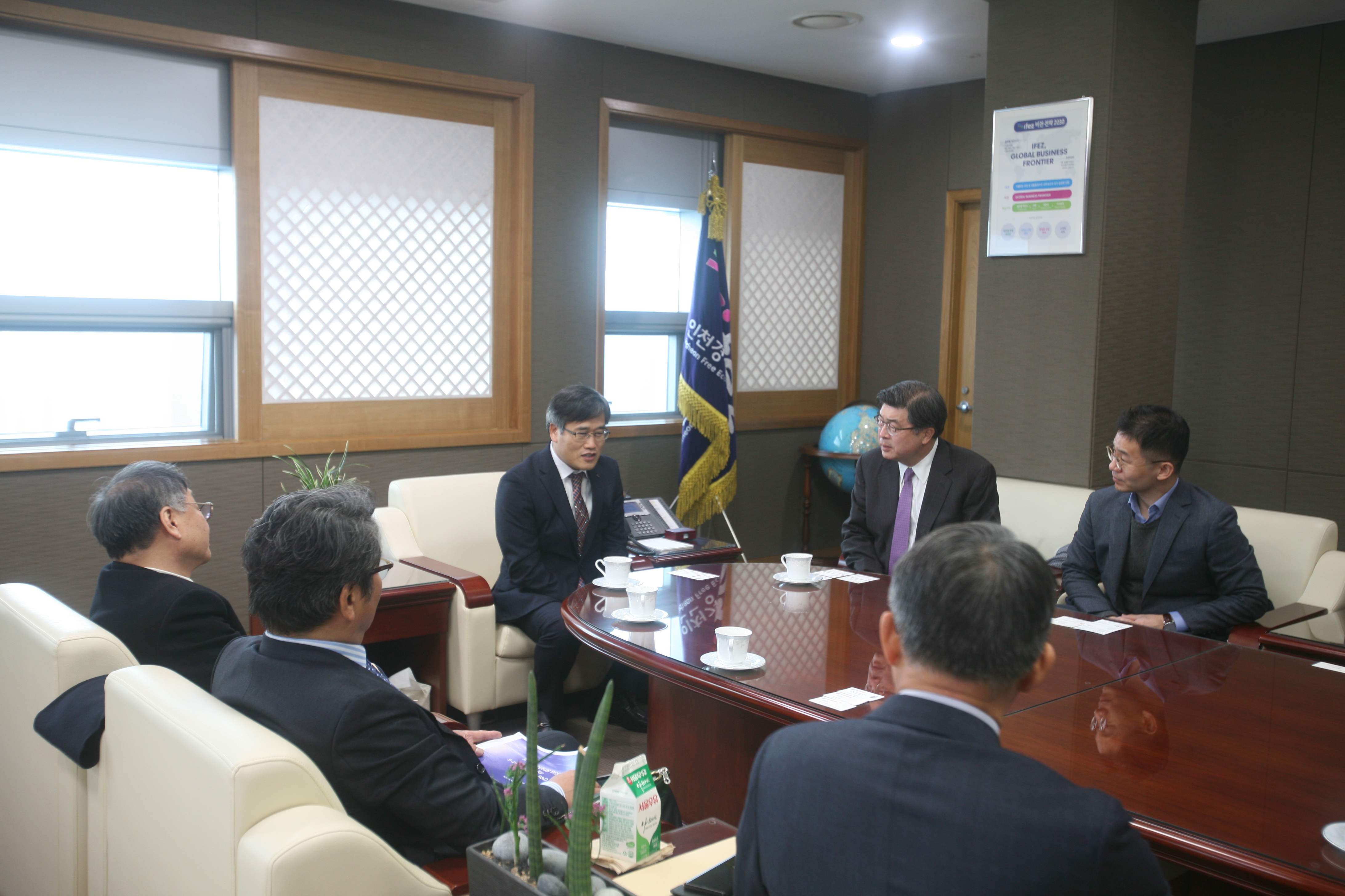 김진용 인천경제자유구역청장이 28일 서울대 공대 학장 등을 면담하고 있다