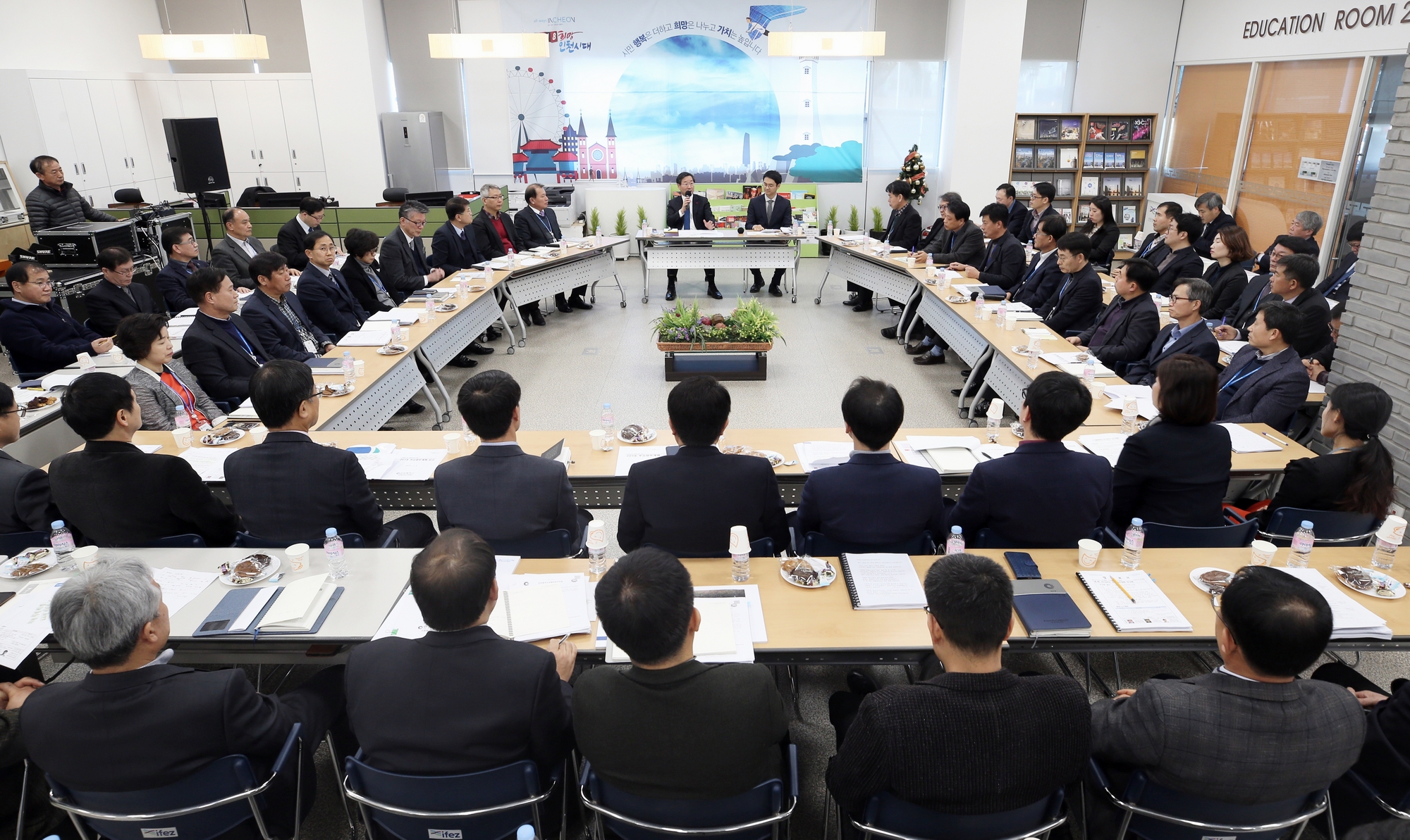 2018년 1월 9일(화요일), 김진용 청장과 IFEZ 임직원은 2018년 주요업무계획을 유정복 인천광역시장에게 보고했다.