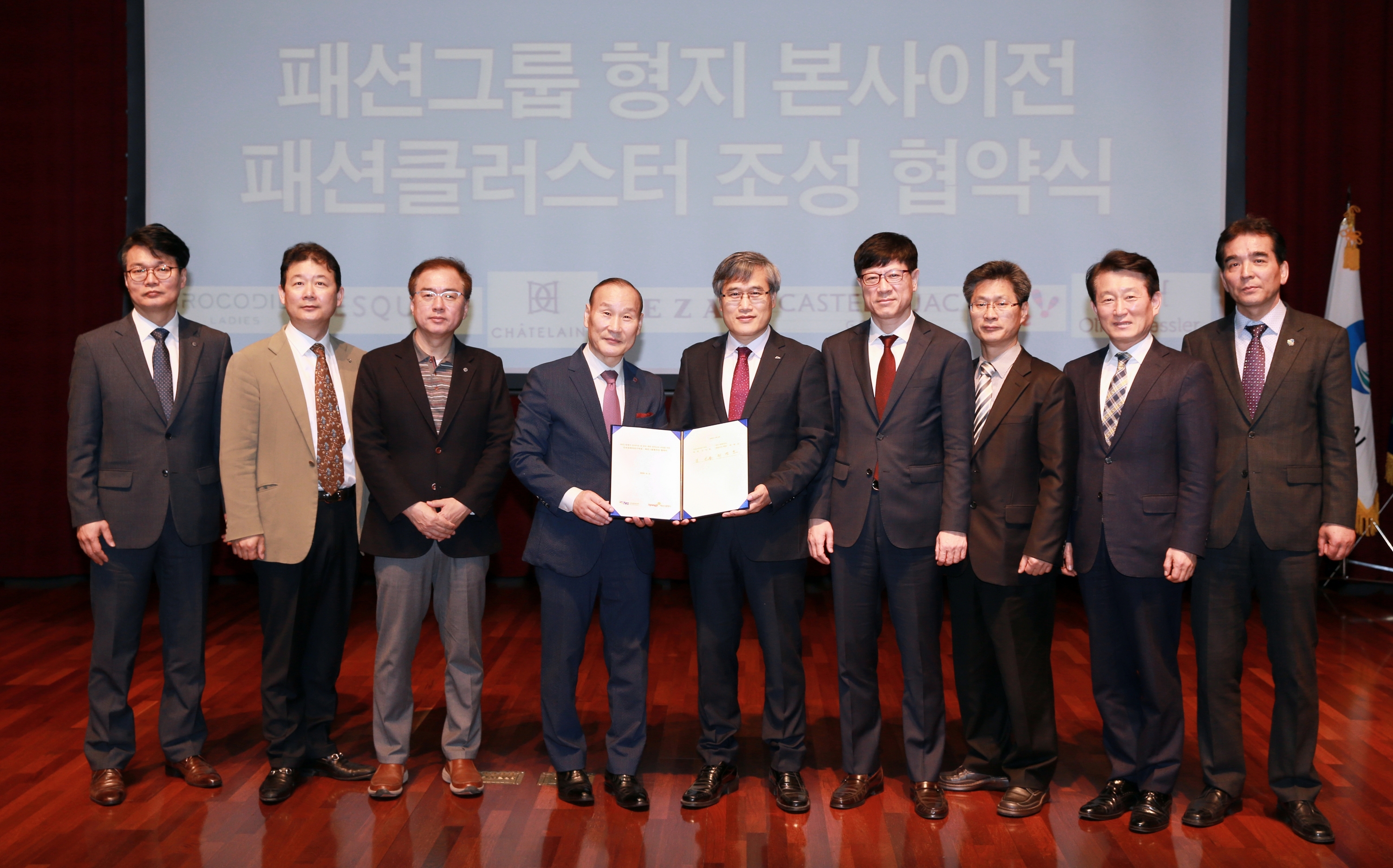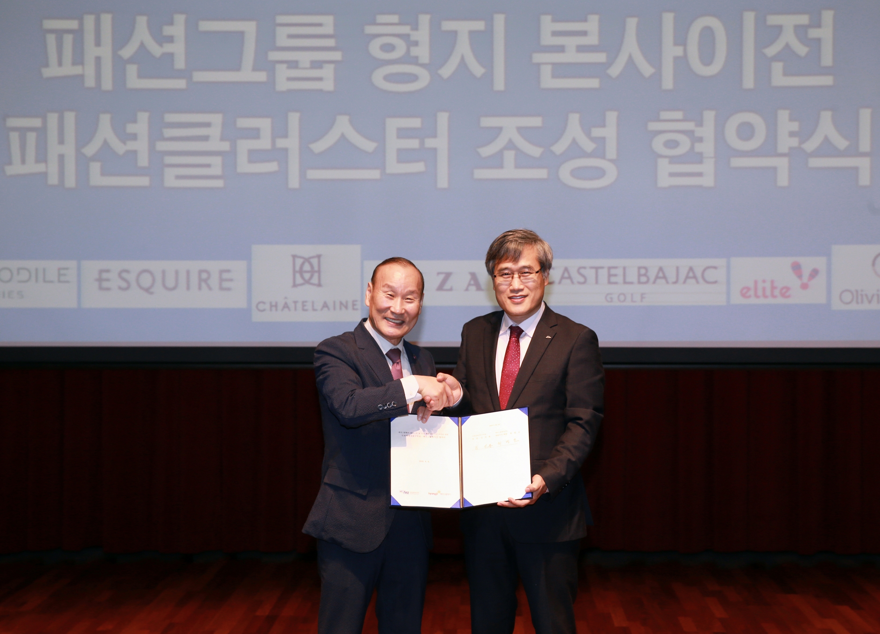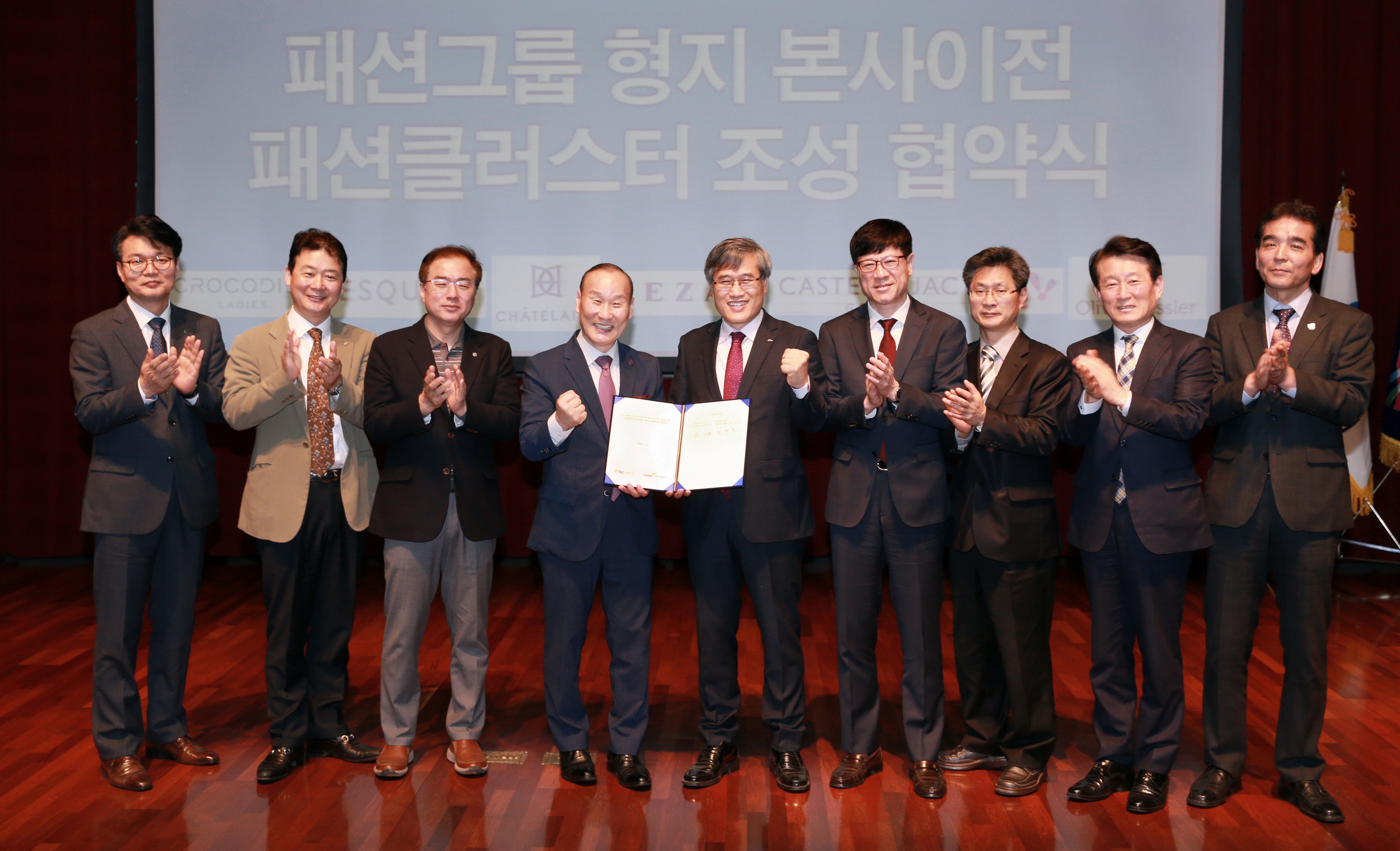 2018년 4월 4일(수요일), 김진용 청장은 패션그룹 형지와 ‘본사 이전 및 패션클러스터 조성’을 위한 업무협약을 체결했다.이번협약으로, 현재 조성 중인 송도 형지 글로벌 패션 복합센터의 준공(2020년)과 서울 역삼동에 소재한 패션그룹형지의 본사 이전을 확정했다. 또, 패션산업 클러스터 조성을 위해서 송도 글로벌캠퍼스에 입주해 있는 뉴욕 패션 주립대학(FIT)과의 산·학 협력 및 패션업계 핵심 협의체의 송도 이전, 국내외 주요 패션 관련 행사의 송도 유치 등 패션산업 클러스터 조성에 관한 내용을 담고 있다.