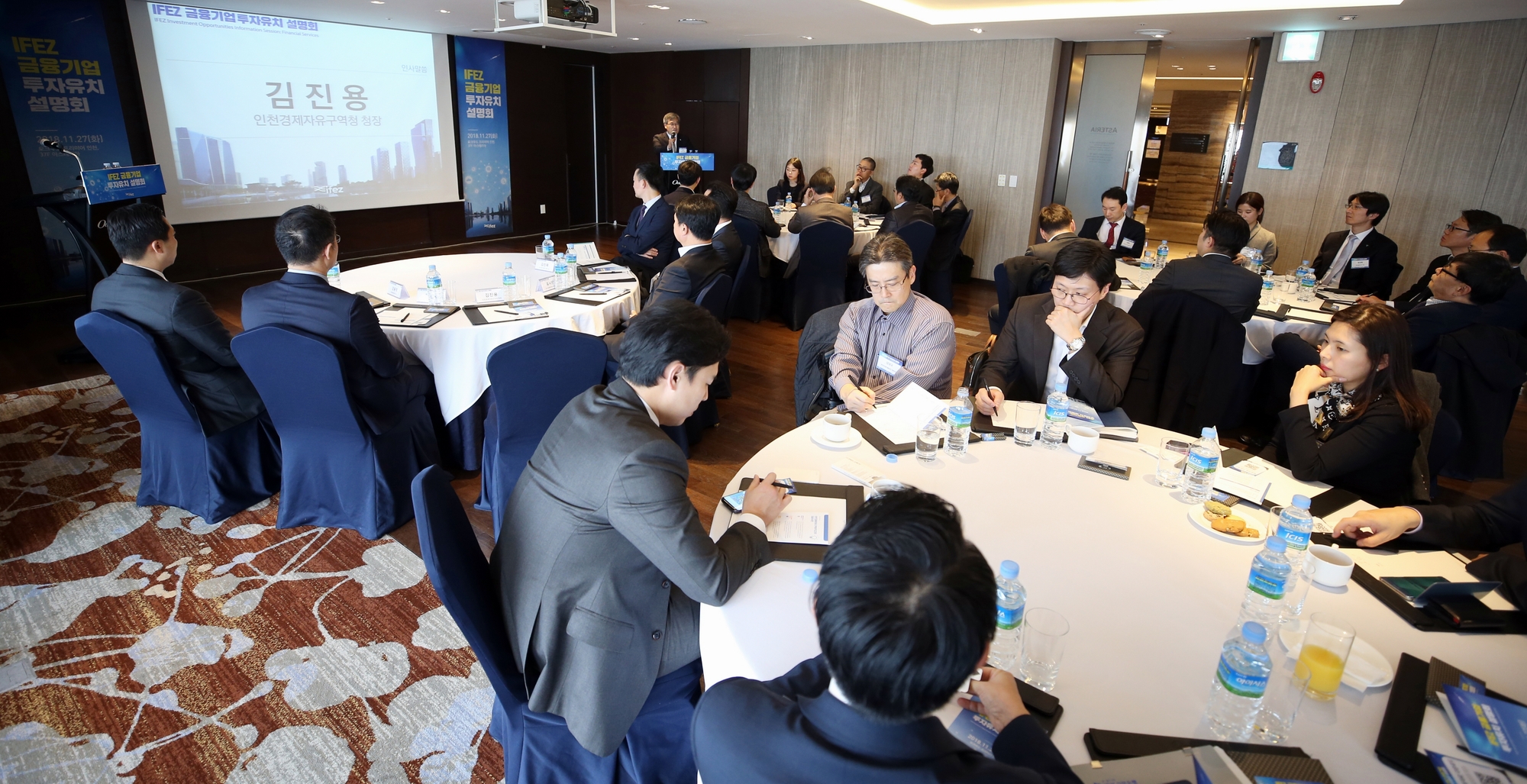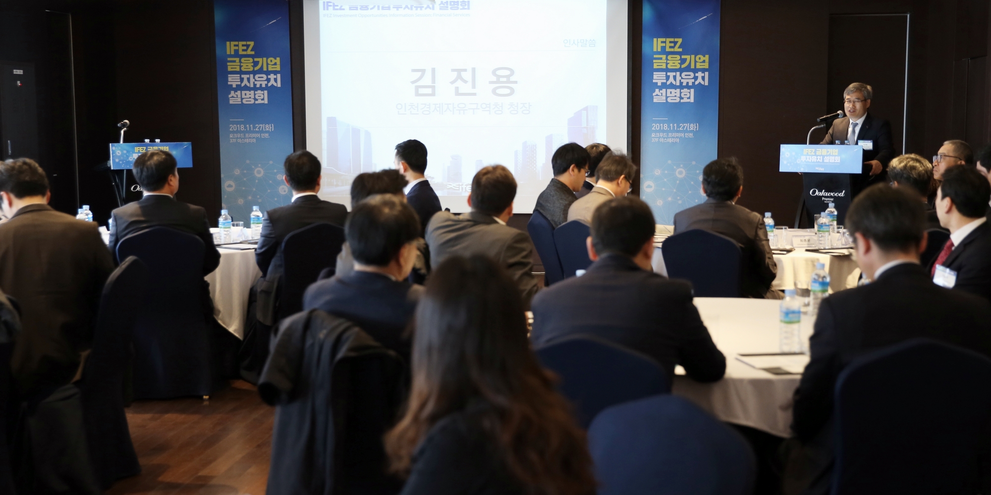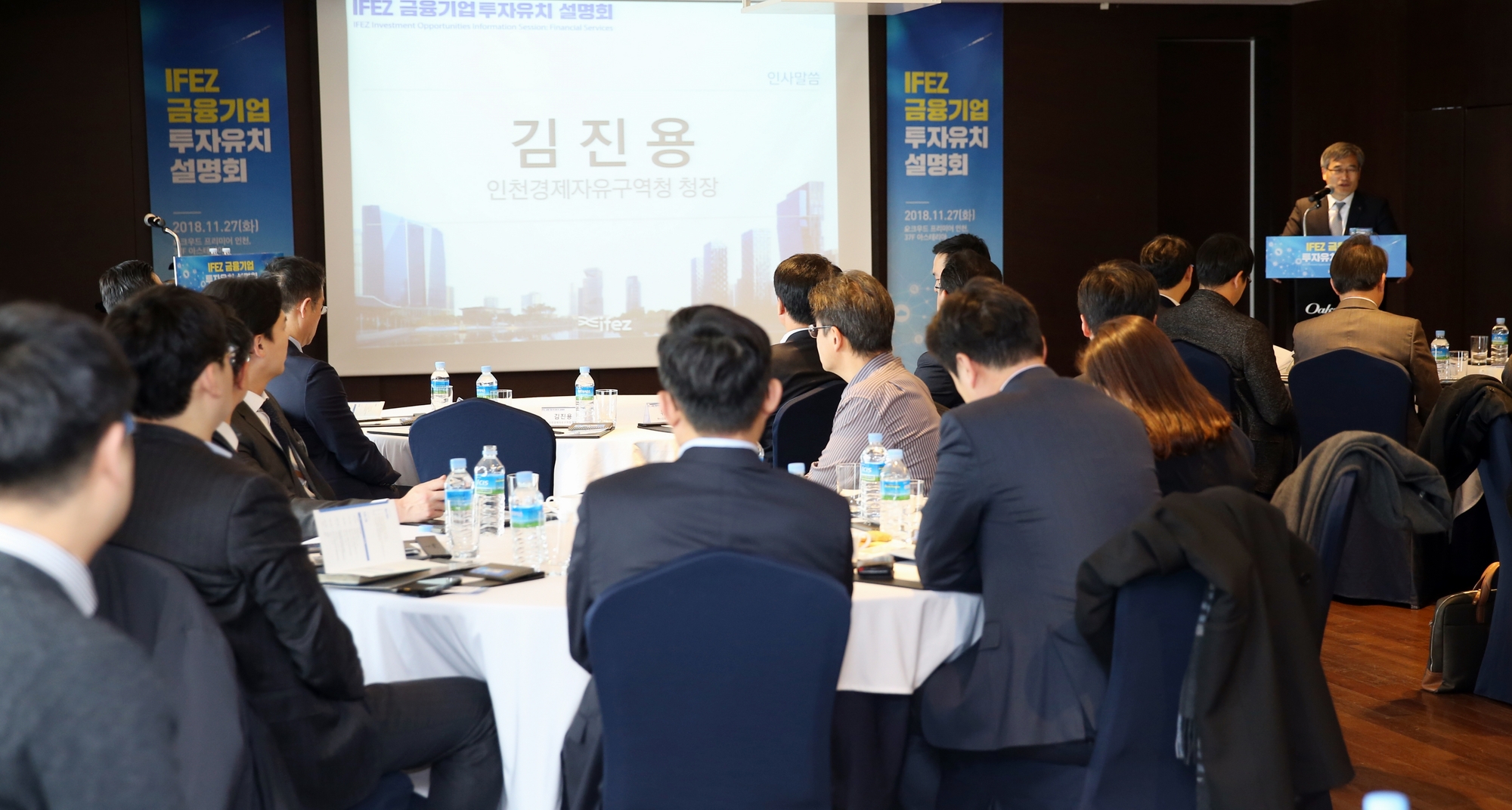 2018년 11월 27일(화요일) 김진용 청장은 오크우드호텔 인천에서 IFEZ 금융기관 투자유치 설명회를 개최했다. 이번 설명회는 IFEZ의 금융 앵커기업 유치와 금융산업 활성화를 위해 금융기업 관계자들을 대상으로 열렸다.