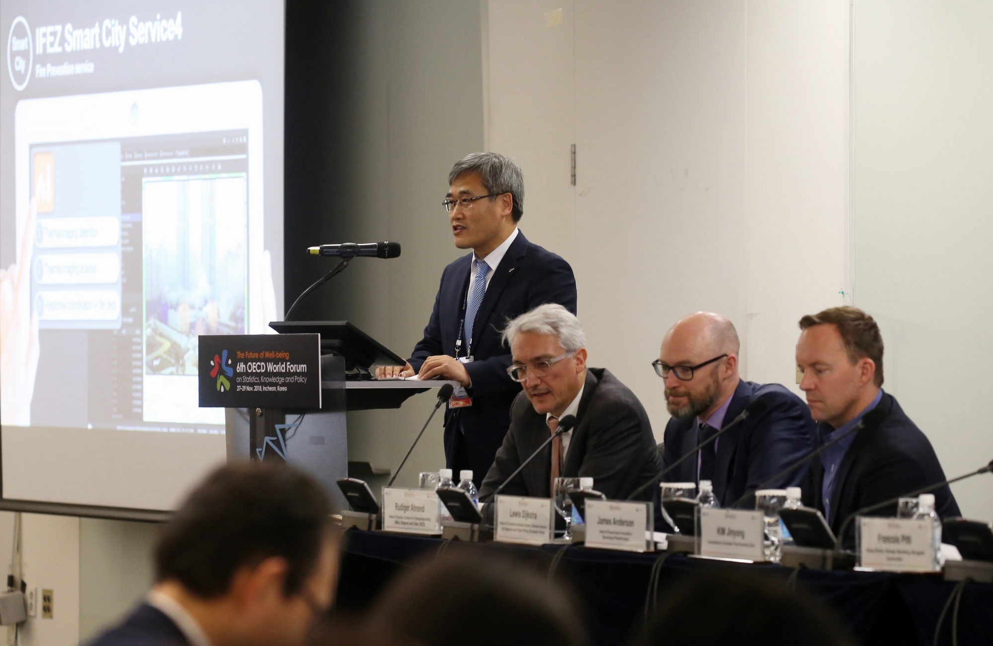 2018년 11월 28일(목요일) 김진용 청장은 송도컨벤시아에서 개최된 OECD 세계포럼에서 ‘IFEZ Smart City의 현재와 미래’라는 주제로 발표를 했다.
