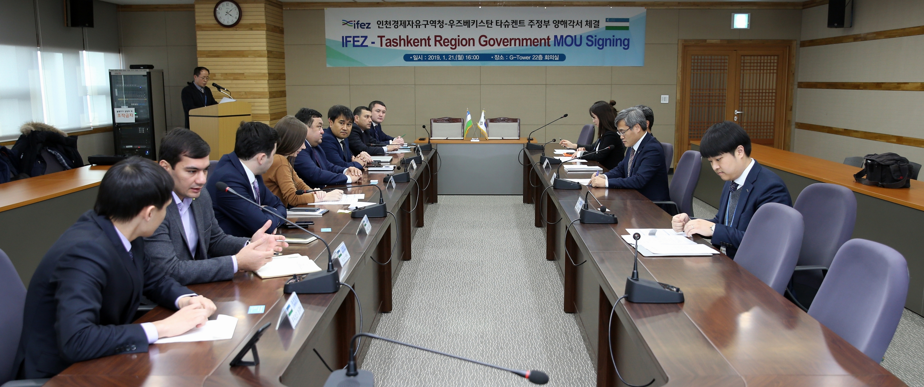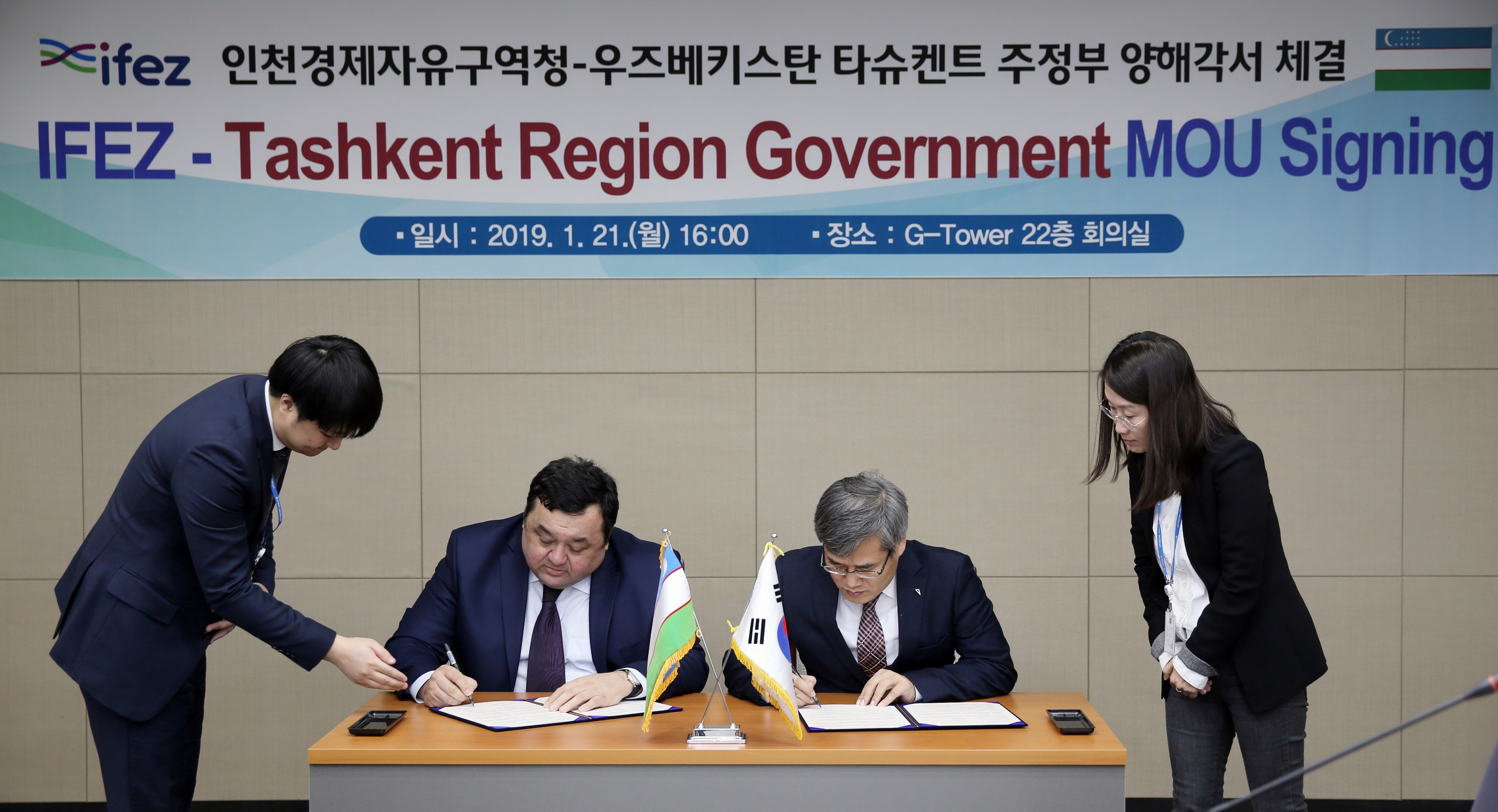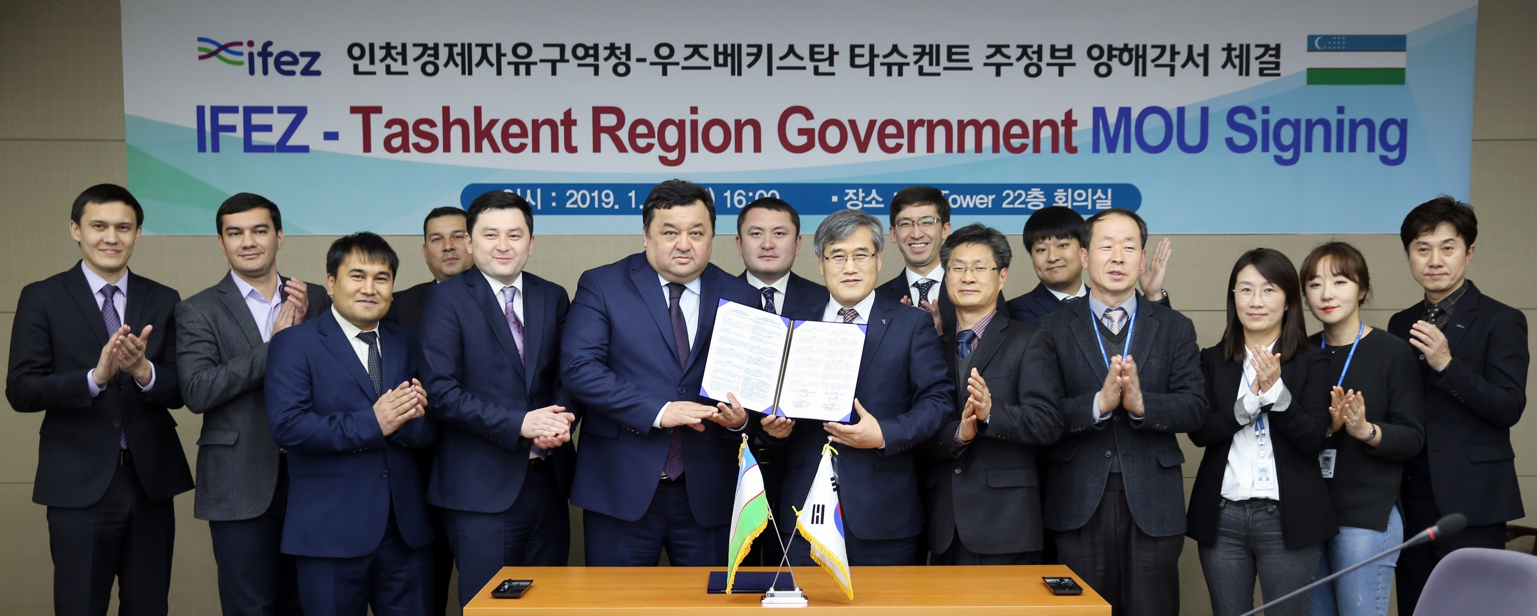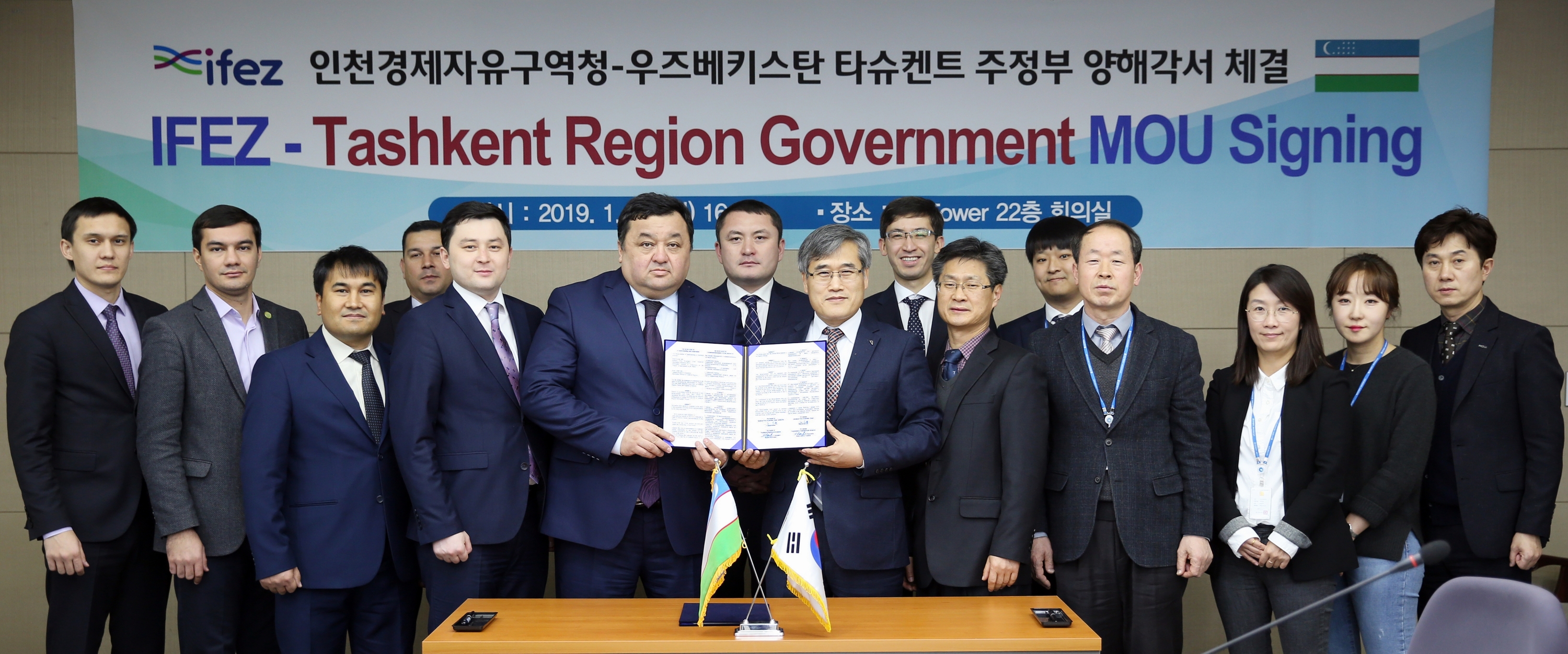 2019년 1월 21일(화) 김진용 청장은 우즈베키스탄 타슈켄트주(州)정부와 경제자유구역 개발 및 투자 촉진을 위한 양해각서를 체결하였다. 이번 체결로 두 기관은 경제자유구역 개발, 투자 촉진, 교류 활성화 등에 협력하게 된다.