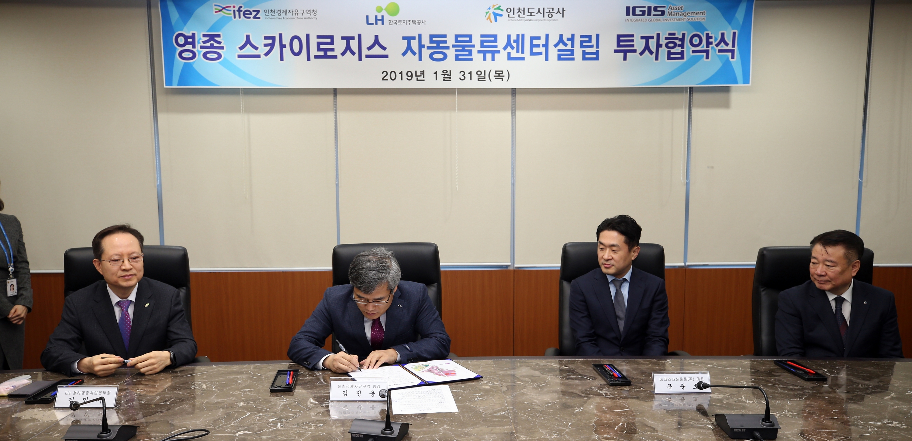 2019년 1월 31일(목요일) 김진용 청장은 영종국제도시에 스카이로지스 항공물류센터 건립을 위한 투자계약 체결하였다. 이번 계약 체결을 통해 스카이로지스 사모 부동산 투자 회사는 1,700억원을 투입하여 상반기 중 사업부지내 착공을 추진할 예정이다. 스카이로지스 항공물류센터 신축사업은 다국적 사업자와 투자기관이 공동으로 합작법인을 설립하여 사업을 추진하게 된다