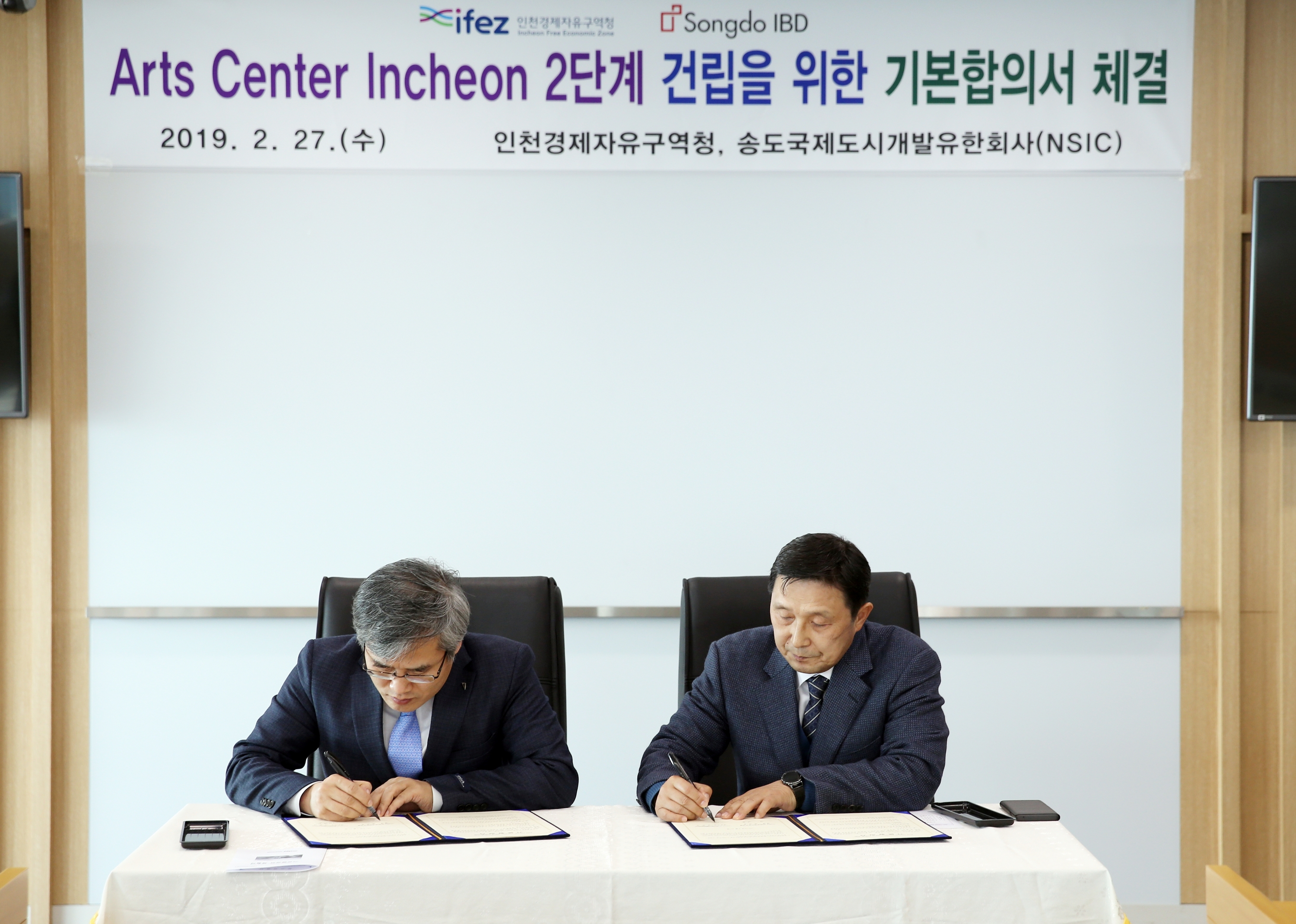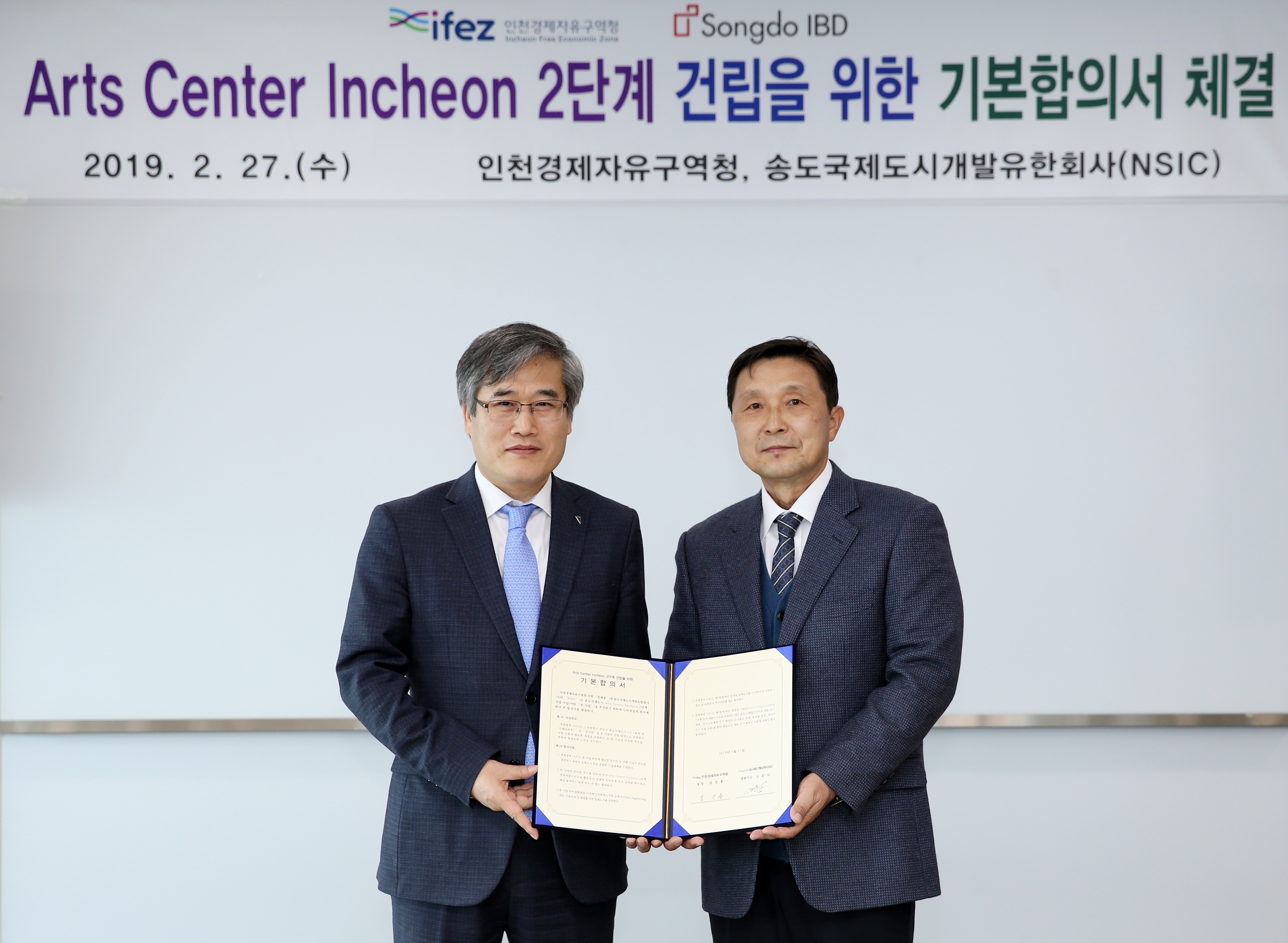 2019년 2월 27일(화요일), 김진용 청장은 송도국제도시개발유한회사(NSIC)와 Arts Center Incheon 2단계 건립을 위한 기본합의서를 체결하였다. 아트센터인천 2단계는 지하2층, 지상5층, 1천439석 규모의 오페라하우스와 지하2층, 지상8층, 건축연면적 20,373㎡ 규모의 공연장으로 사업비는 약2천 200억 원 규모로 건설된다. 인천아트센터 1단계 건설은 클래식 음악 공연을 위한 콘서트홀이 지어졌으며, 이번 2단계 건설은 대중가요 콘서트 및 뮤지컬 공연을 위한 오페라하우스&뮤지엄이 건설되게 된다.