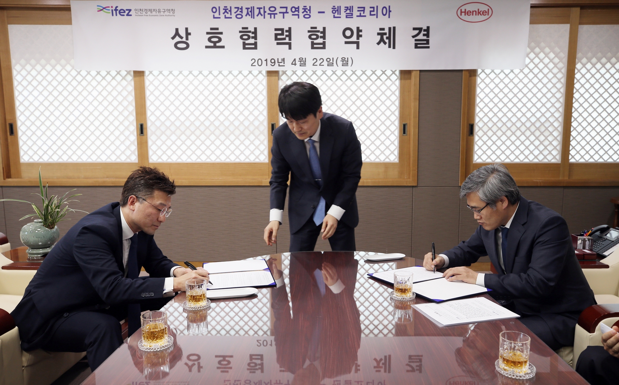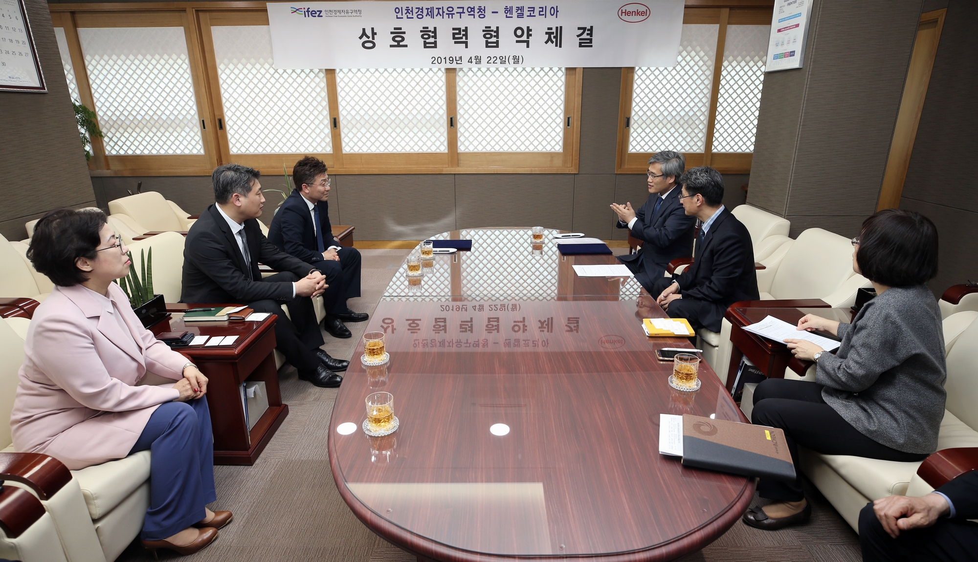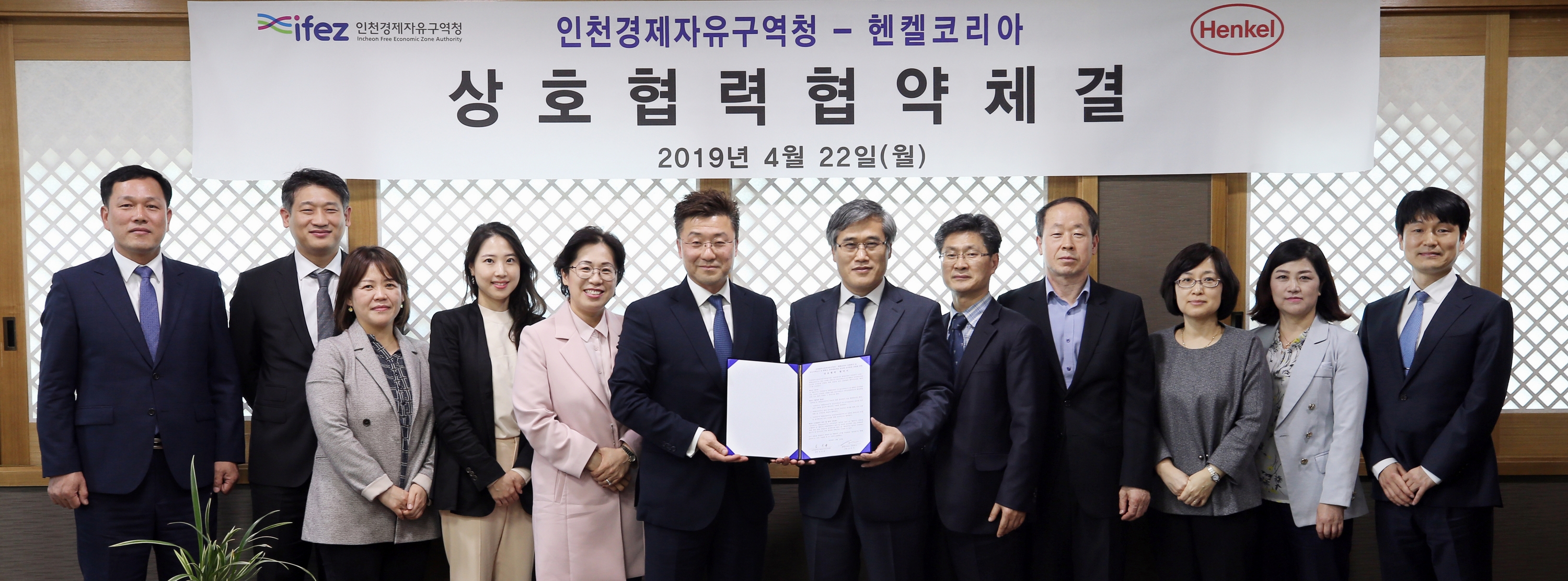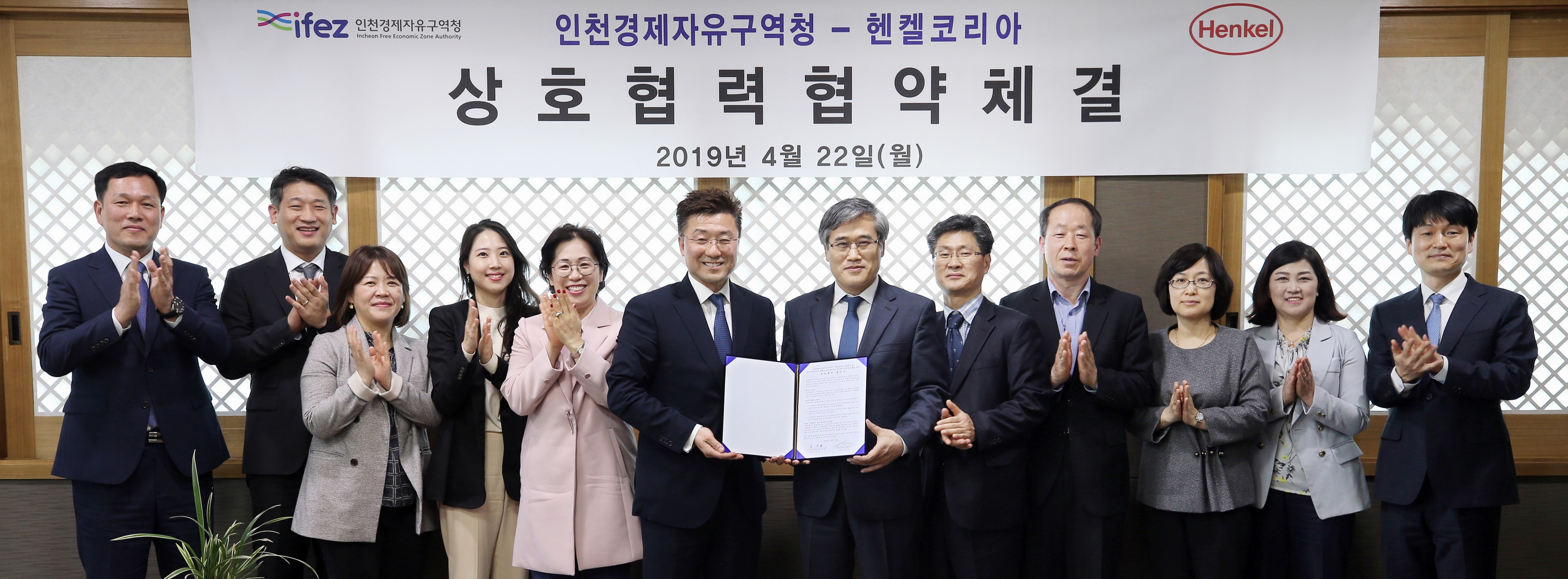 2019년 4월 22일(월요일) 김진용 청장은 헨켈코리아와 상호 협력 협약을 체결했다. 양측은 이번 협약을 통해 송도국제도시 내 헨켈코리아(유) 전자재료 사업부문 신사업장 건립을 위한 행정적인 지원, 신규 고용창출 및 지역인재 채용, 산업-학교-연구 클러스터 조성 등을 위해 적극 협력하기로 했다.