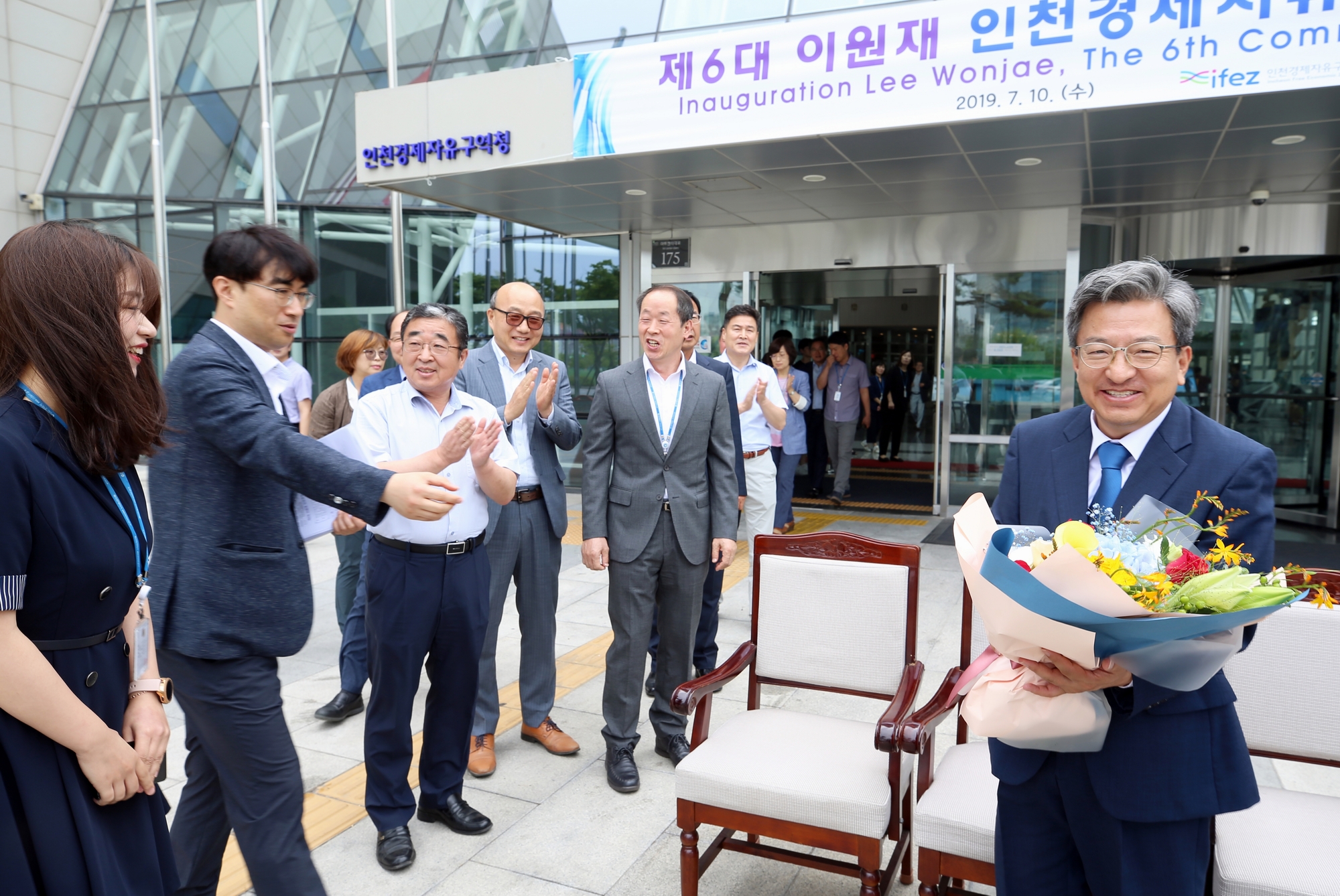 2019년 7월 10일(수요일) 제6대 이원재 인천경제자유구역청 청장이 취임했다. 이 청장은 취임사를 통해 “인천경제자유구역은 그간 세계적 수준의 정주환경과 생활기반과 글로벌 교육 환경 구축을 통해 눈부신 성장을 이뤘다. 이제는 글로벌 비즈니스, 첨단 산업의 중심지이자 국가 발전의 전략 거점으로 더욱 성장해 가야 한다. 이러한 목표 달성을 위한 거시적인 추진전략을 종합적으로 검토한 후, 좀 더 정밀하고 실현 가능하게 가다듬는 노력을 기울이겠다.”면서“특히 바이오와 헬스, 5G와 AI, 관광․레저와 컨벤션 등 미래 신산업 분야의 투자와 기업 유치, 산학연 협업 생태계 조성과 관련 인재 양성 기반 구축 등을 통해서 인천경제자유구역을 명실상부한 4차 산업혁명 시대 중추 도시로 육성해 가겠다. 또한 청라국제업무 단지 조성 사업, 청라 시티타워 건립과 제3연륙교 건설 등 진행 중인 사업도 차질 없이 마무리하도록 하겠다.”라고 강조했다. 끝으로, “각종 투자유치와 도시개발사업 등에 대한 시민들의 관심과 정책수요가 높은 만큼 늘 경청하는 자세로 시민들의 의견을 수렴하고 정책에 반영하는 시민 소통 프로세스에 각별히 힘쓰겠다.”라고 말했다.