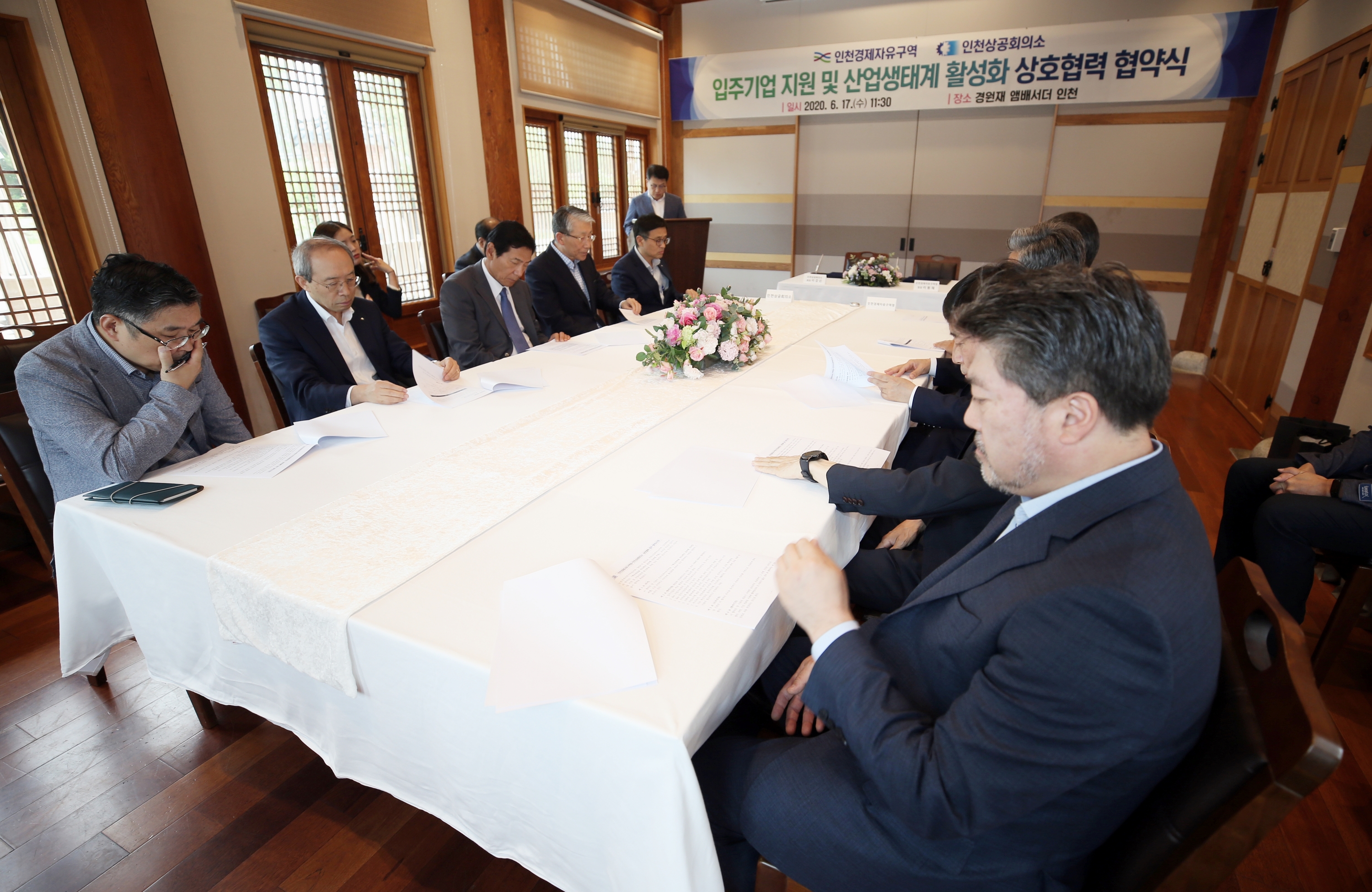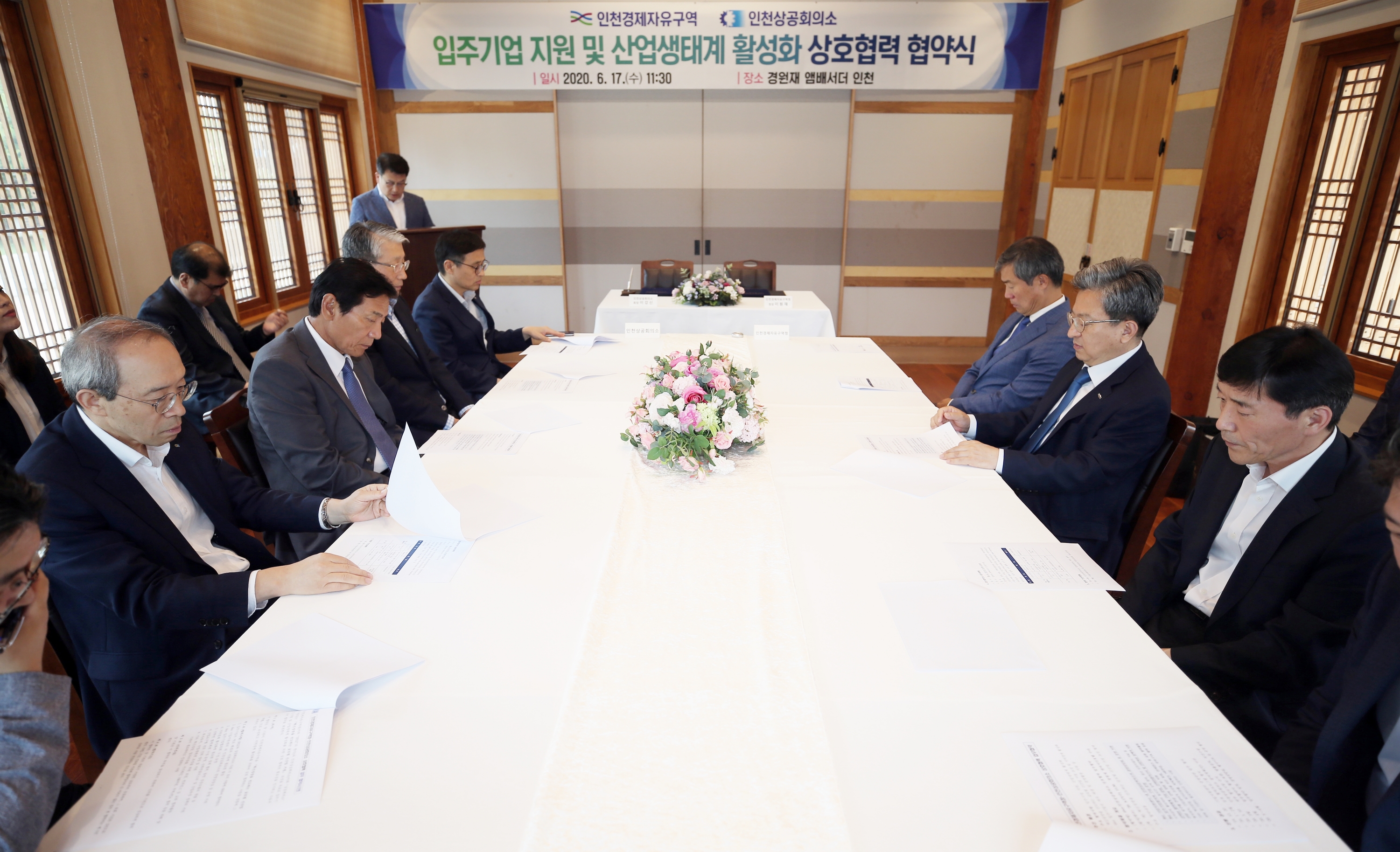 2020년 6월 17일(수요일) 이원재청장은 '경원재 앰버서더 호텔 인천'에서 인천상공회의소와 ‘입주기업 지원 및 산업생태계 활성화를 위한 상호협력 협약’을 체결했다. 이번 협약은 IFEZ 입주기업 지원과 경영환경 개선·기업애로 해소, 산업생태계 활성화를 위해 상호 협력 협약을 체결했다. 협약의 주요내용은 △IFEZ 기업지원센터 내 인천상공회의소 경영상담실 등 운영 지원 △IFEZ 입주기업협의회 구성·운영 △지역경제 활성화에 필요한 정책협력 및 동반 성장모델의 개발 △산학연 협력체계 구성·운영, 산학연 클러스터 및 산업육성 정책의 지원이다.