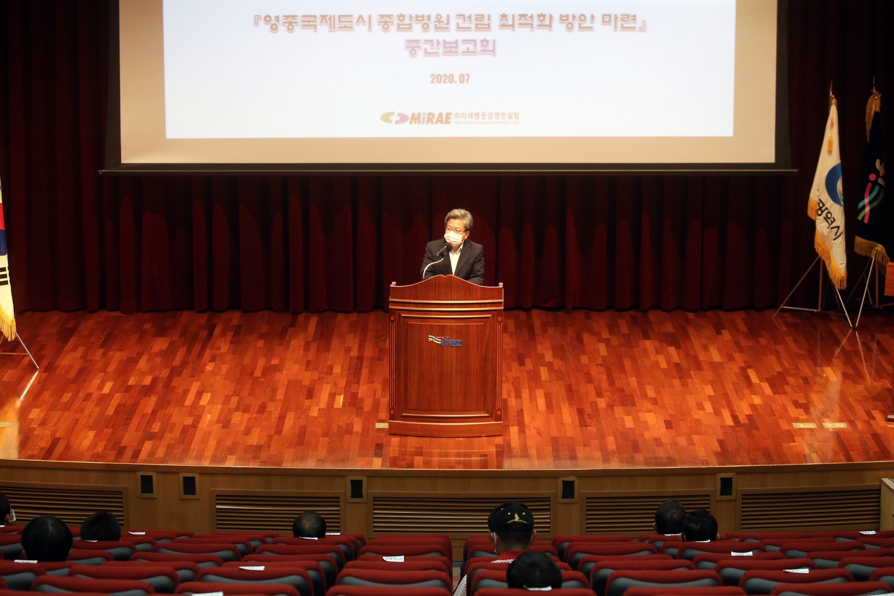 2020년 7월 20일(월요일) 이원재 청장은 ‘영종국제도시 종합병원 건립 최적화 방안마련 연구용역’ 과 관련한 중간보고회를 개최했다. 이번 보고회에서 영종국제도시 주민들의 의료수요 요구도 조사 결과를 공유하고 최근 코로나 19로 중요성이 커지고 있는 종합병원 유치와 관련한 필요성 및 방안 등에 대해 의견을 교환했다.