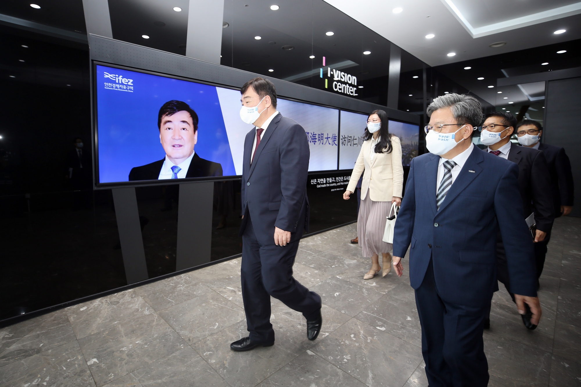 2020년 8월 14일(금요일) 싱하이밍(邢海明) 주한 중국 대사가 IFEZ를 방문했다. 싱하이밍 주한 중국 대사는 IFEZ 홍보관을 방문해 이원재 청장으로부터 IFEZ 개발현황에 대해 설명을 듣고 난 후 박남춘 인천광역시장을 만나 한중 우호협력을 논의했다.