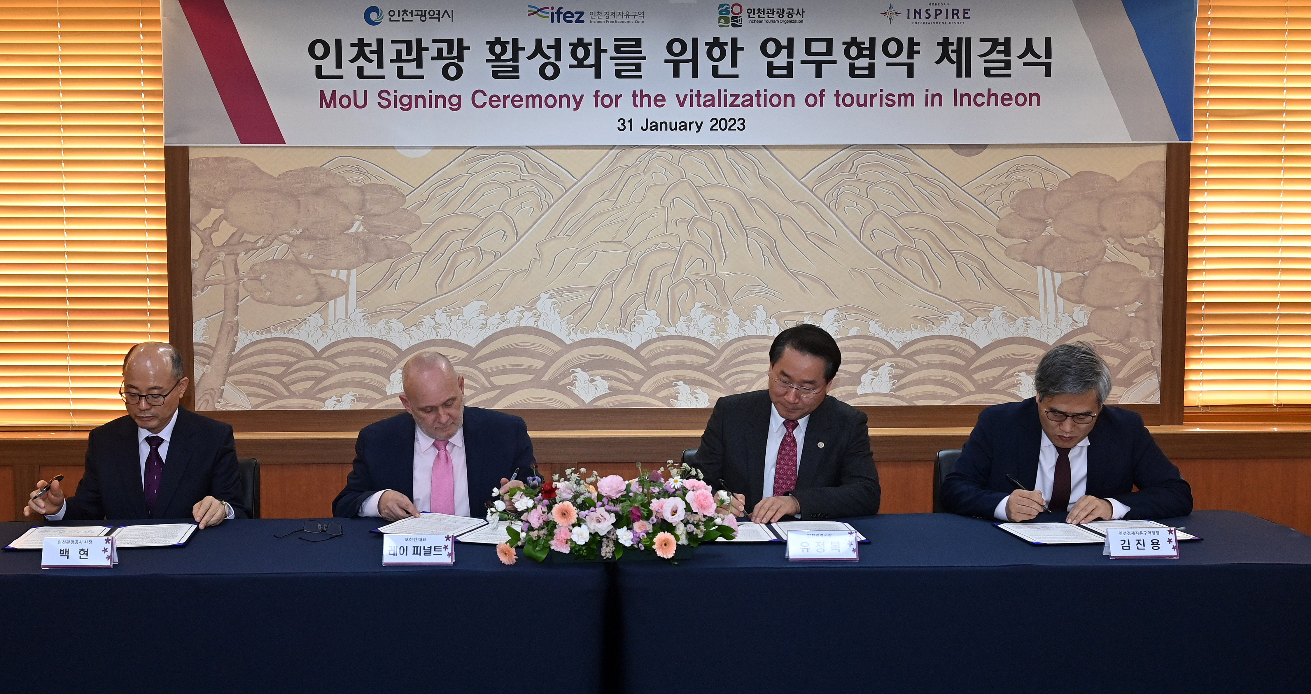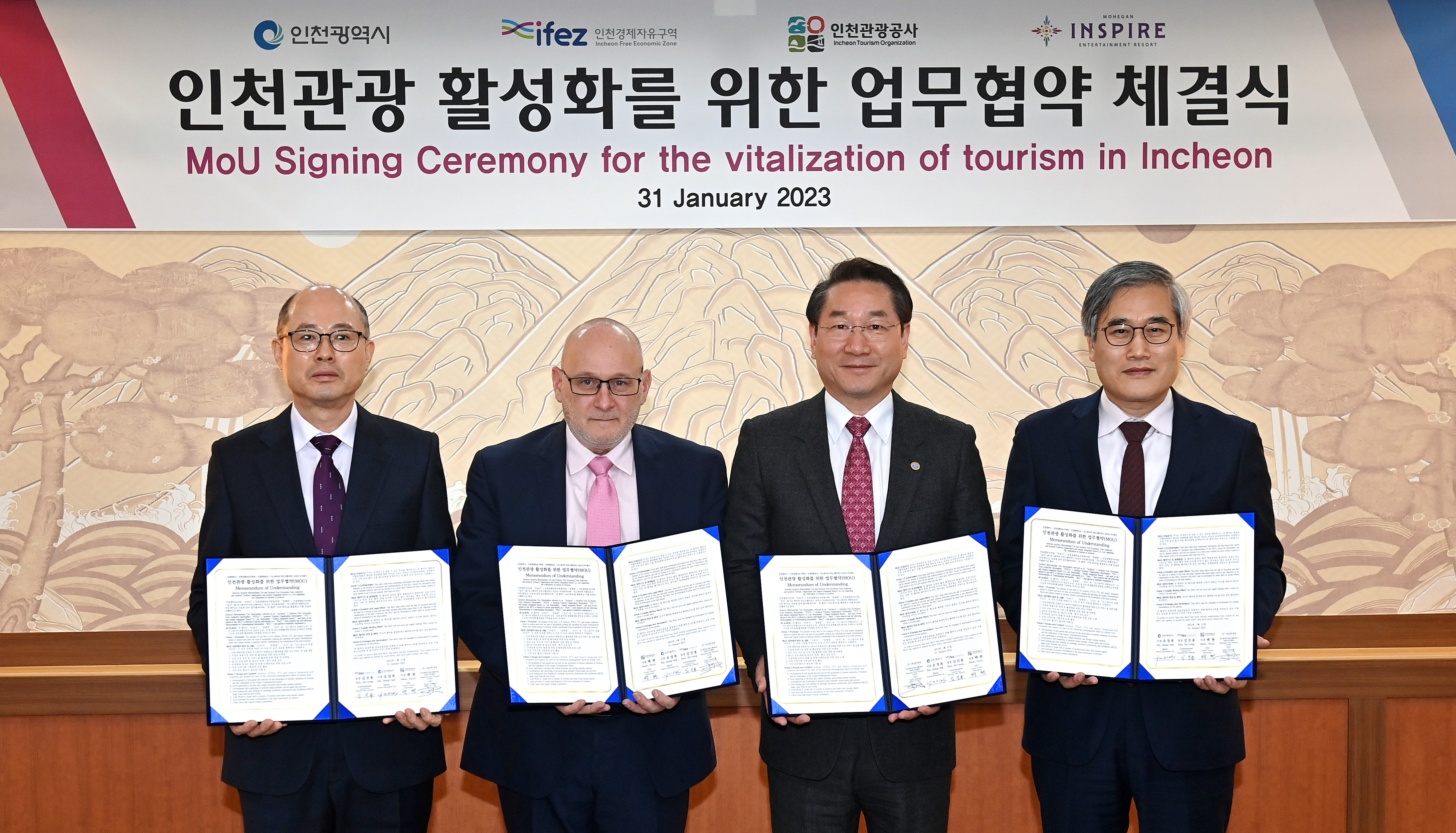 2023년 1월 31일 (화요일) 유정복 인천광역시장과 김진용 IFEZ청장, 인천관광공사, 인스파이어 인티그레이티드 리조트가 인천관광 활성화를 위한 다자간 업무협약을 체결했다. 이번 협약에서 인천관광산업 진흥과 인스파이어 복합리조트 활성화, 마이스 공동 개최와 대규모 축제 및 행사 공동 유치, 인천 일자리 창출과 지역 관광인재 양성, 인천지역사회공헌 공동 활동 같은 다양한 분야에서 긴밀하게 협력하기로 했다.