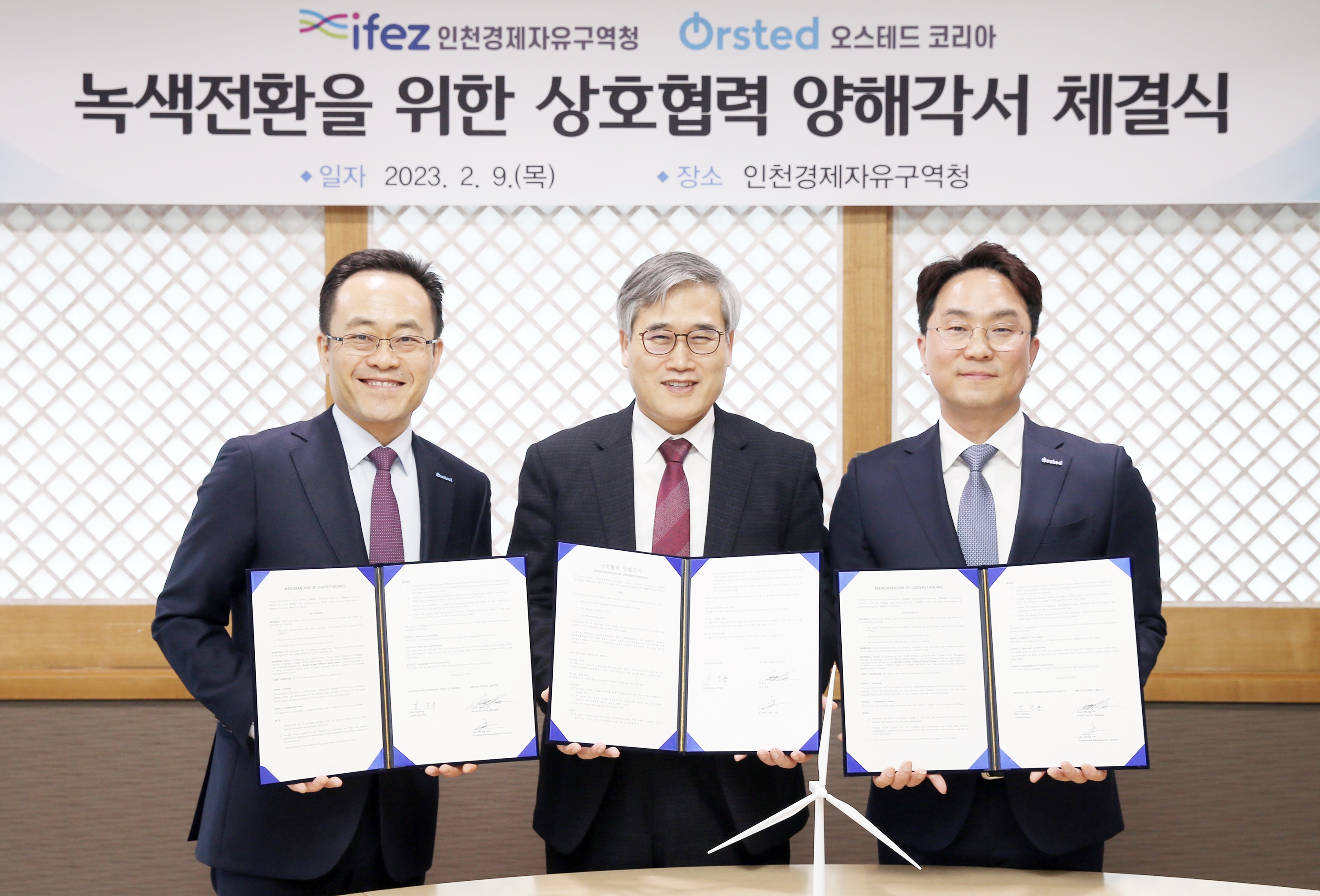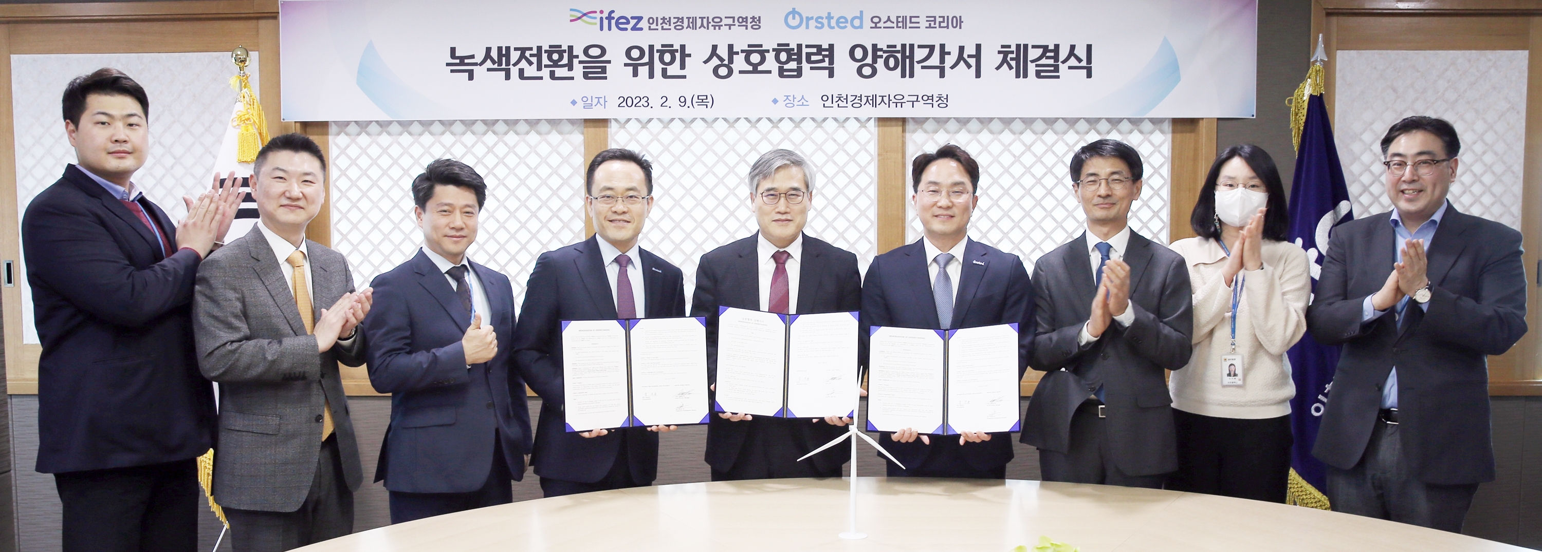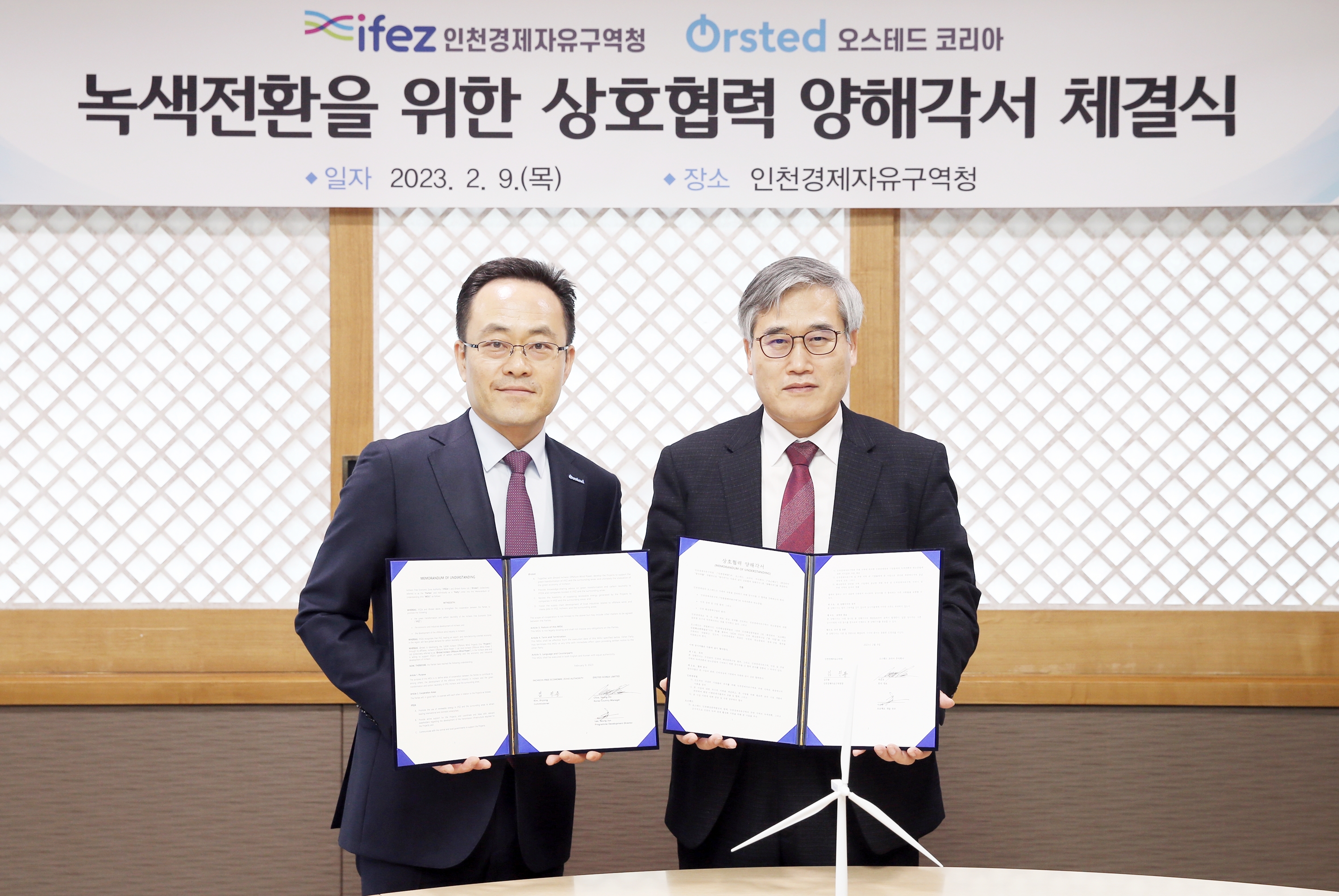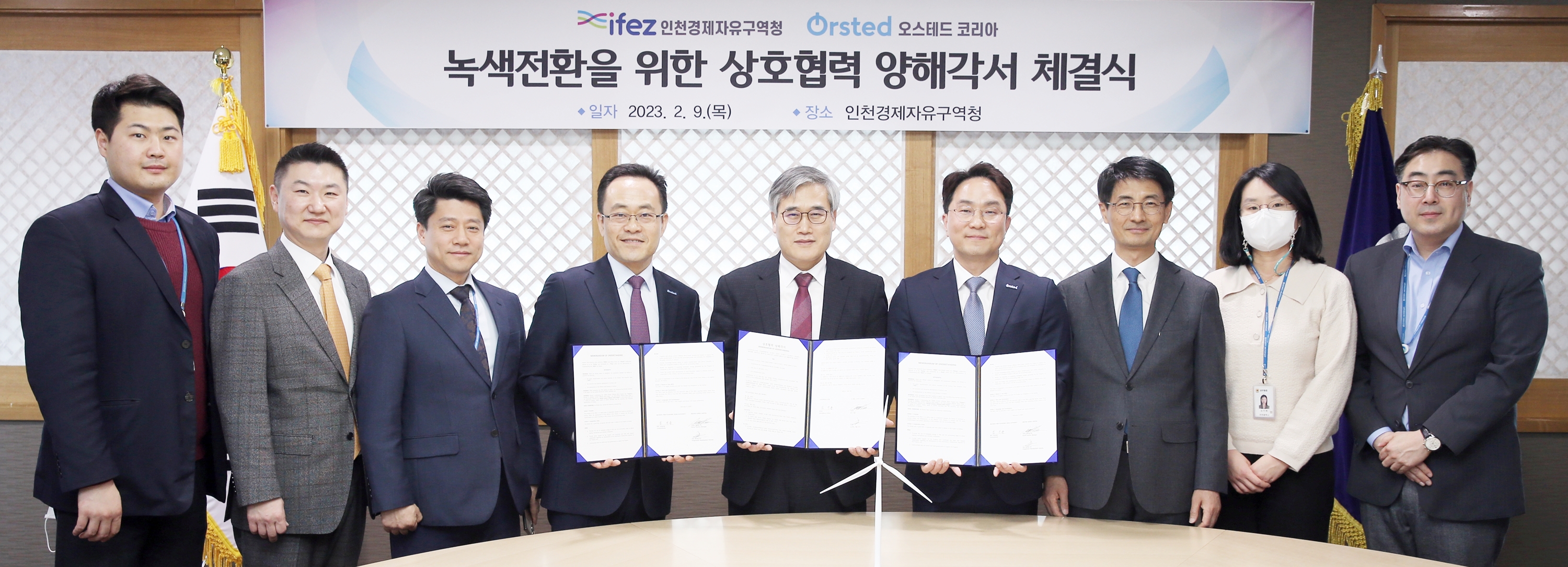 2023년 2월 9일 (목요일) 김진용 청장은 오스테드코리아와 녹색전환을 위한 상호협력 양해각서를 체결했다. 이번 양해각서 체결로 국내외 기업 유치를 위해 IFEZ와 주변 지역에 대한 재생 에너지 사용의 장려, 인천의 녹색 전환과 녹색 경제 활성화 지원, 기업들의 대한 탄소 중립 지식 공유 등을 함께할 예정이다.