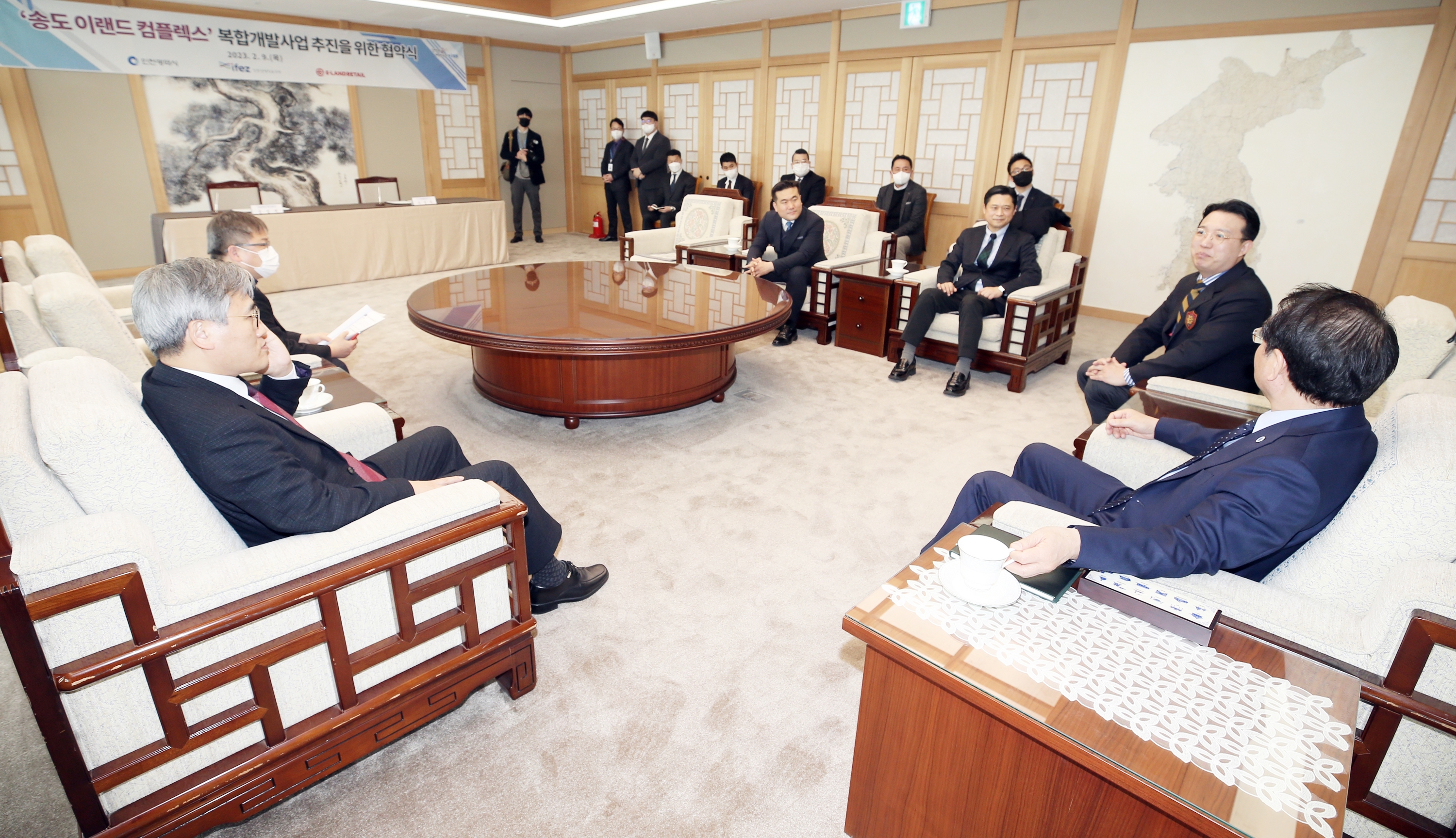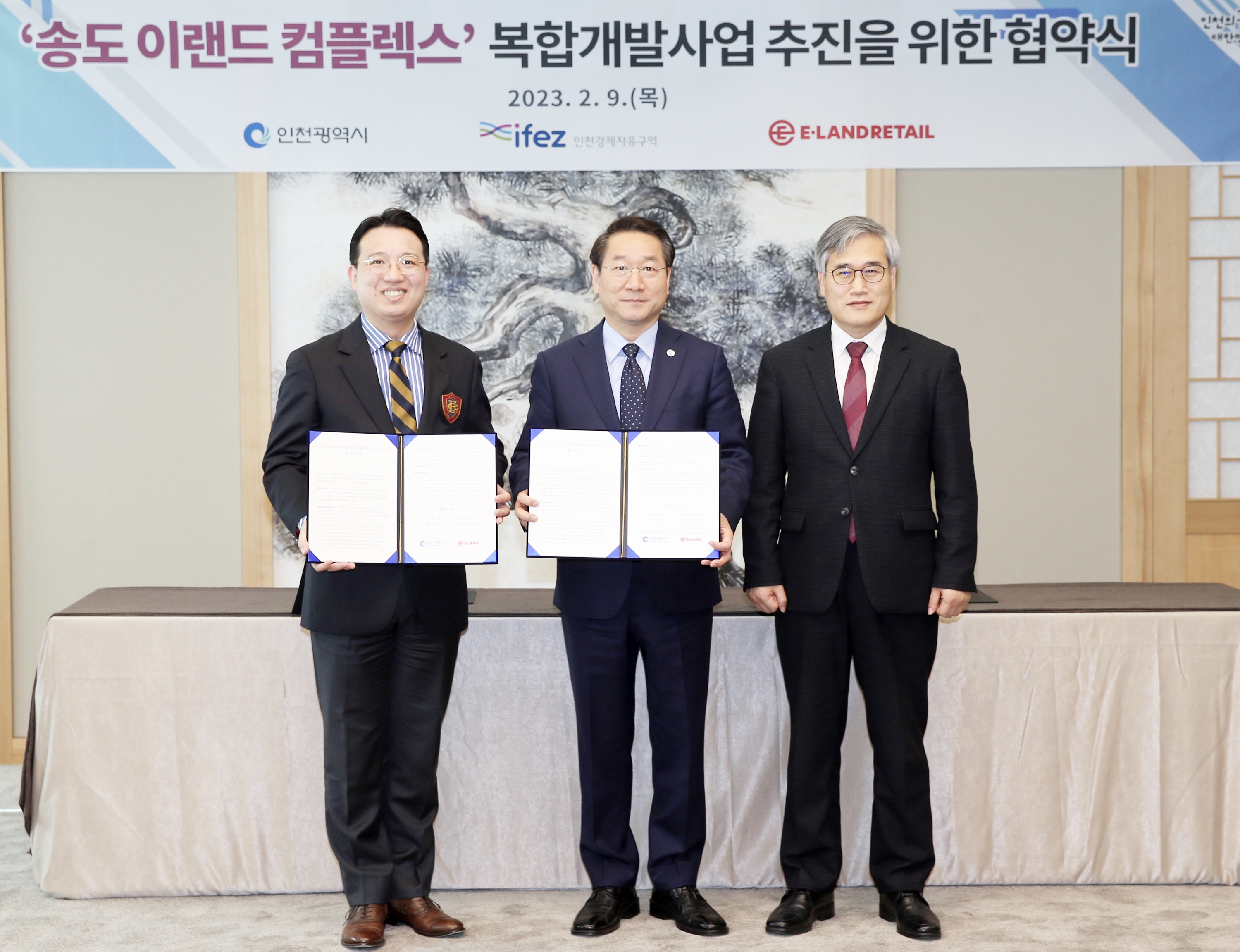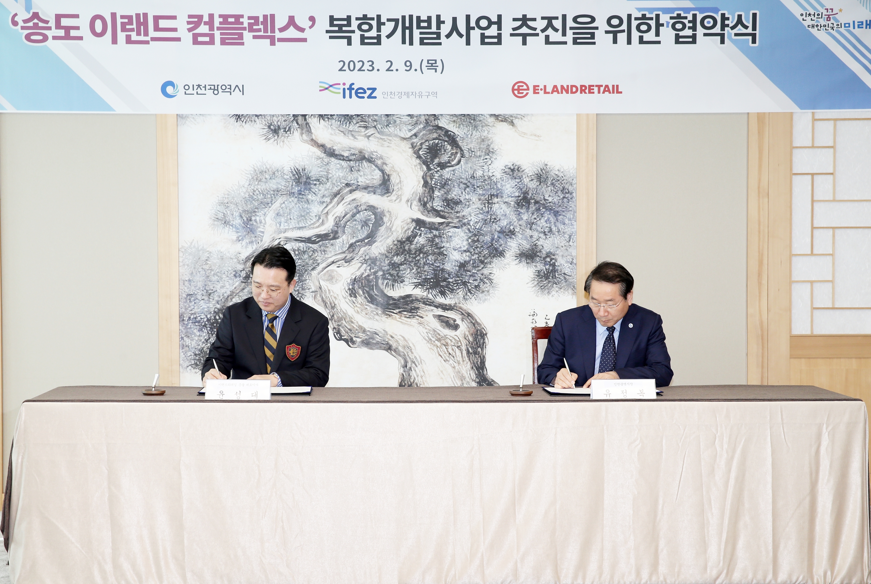 2023년 2월 9일 (목요일) 김진용 청장은 인천광역시, 이랜드리테일과 함께 송도 이랜드 컴플렉스 복합개발사업 추진을 위한 협약을 체결하였다. 이랜드리테일은 인천지하철 1호선 인천대입구역 인근 송도국제업무단지에 1만 9587㎡ (약 6,000평) 규모의 복합쇼핑몰 건립을 추진한다.