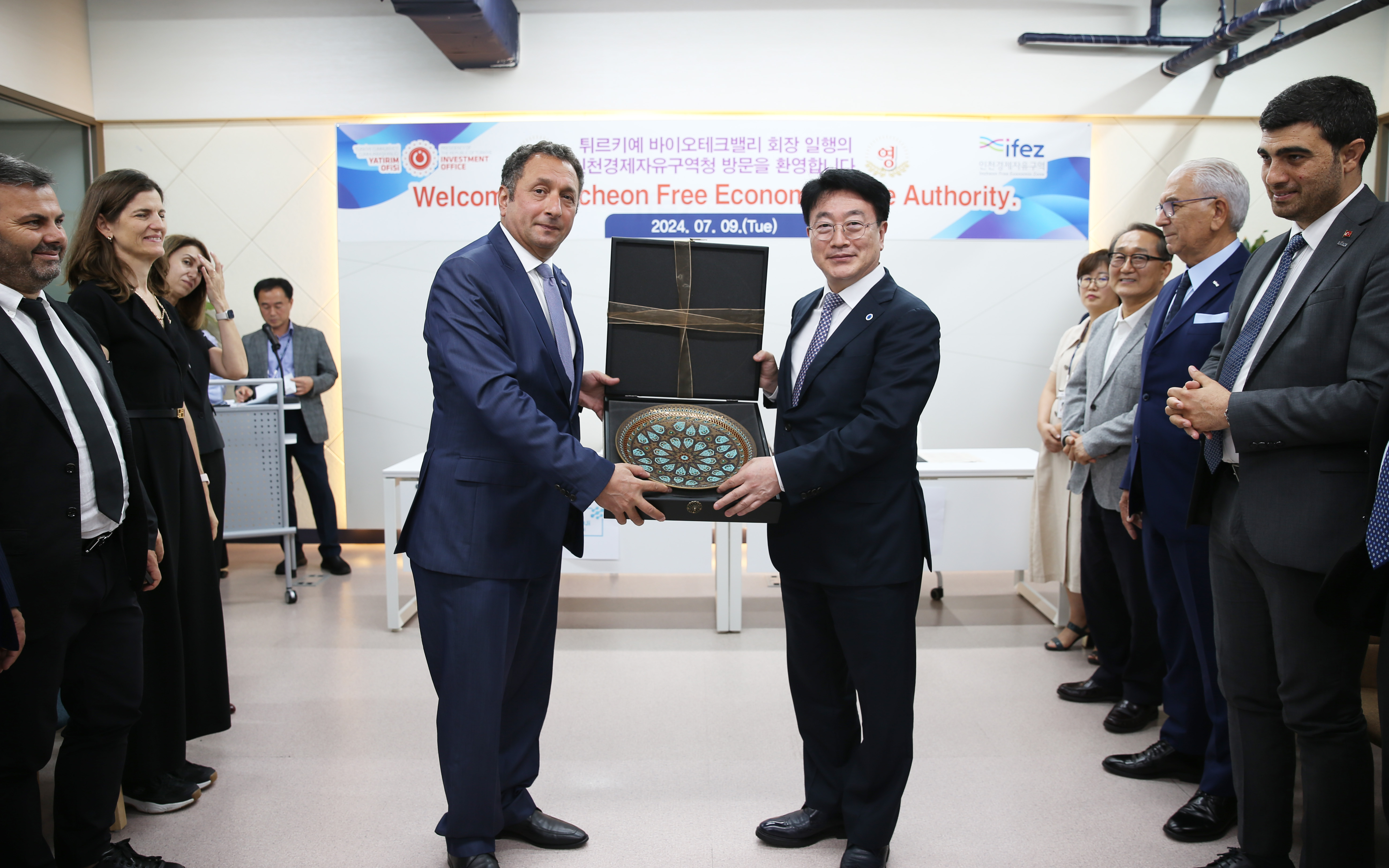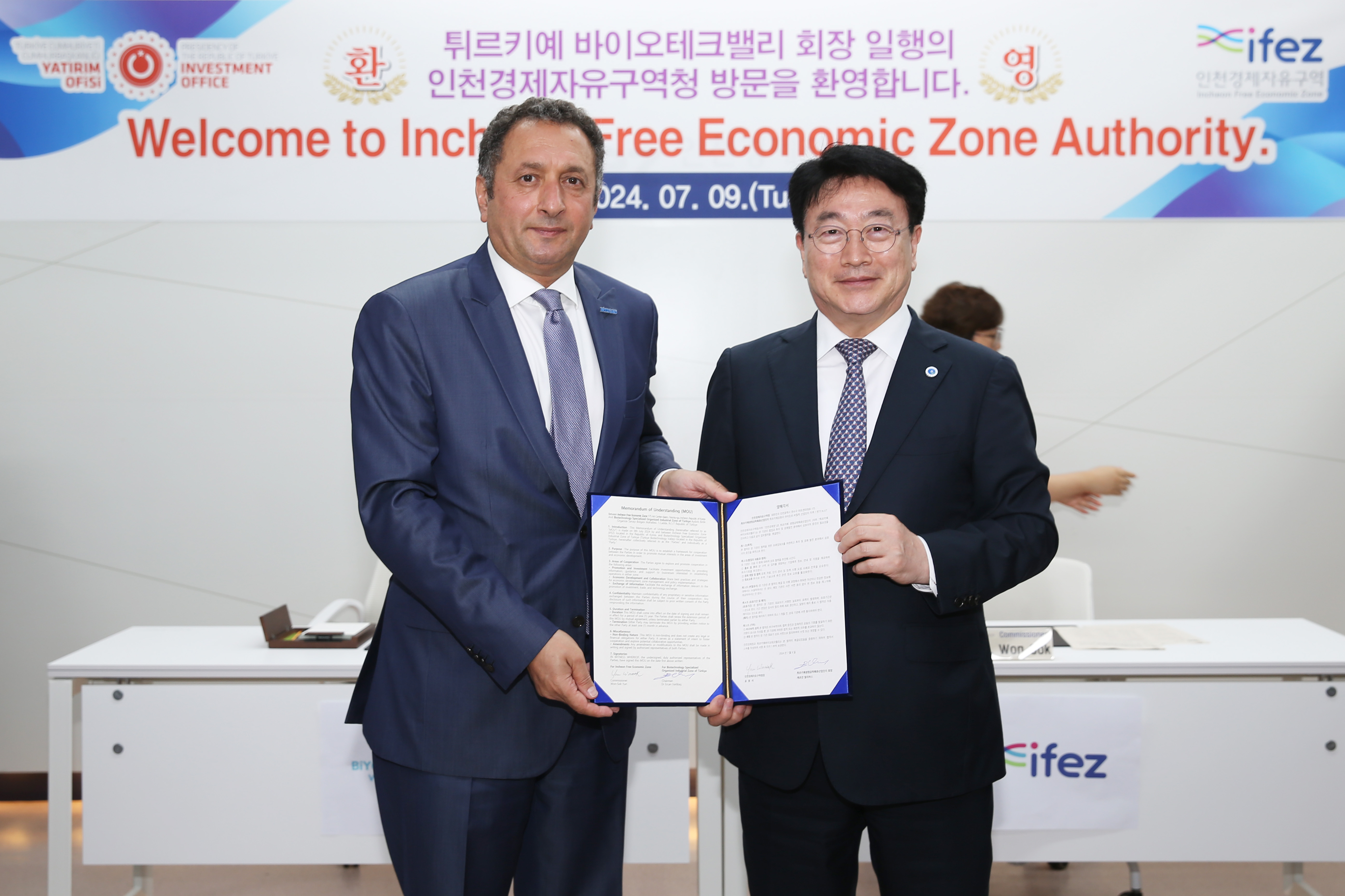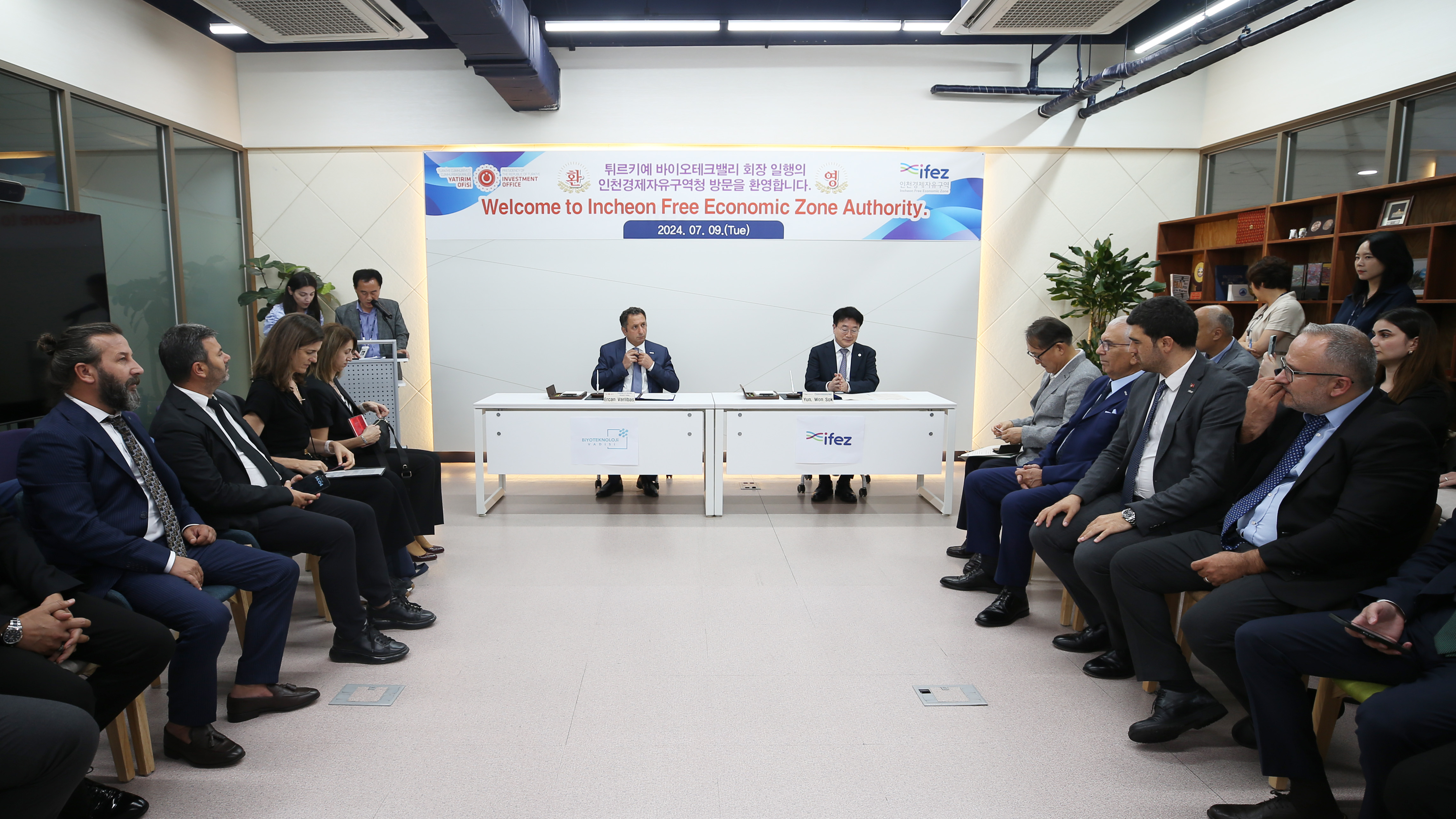 2024년 7월 9일 (화요일) 윤원석 인천경제자유구역청장은 인천경제자유구역청(G타워, 송도국제도시) 문화동 2층 비즈니스센터에서 튀르키예 바이오테크밸리 회장 일행을 만나 교류 협력 양해각서(MOU)를 체결했다. 이번 협약은 상호 협력 프레임워크 등 향후 투자 및 교류 증진 활성화를 위해 마련되었다.