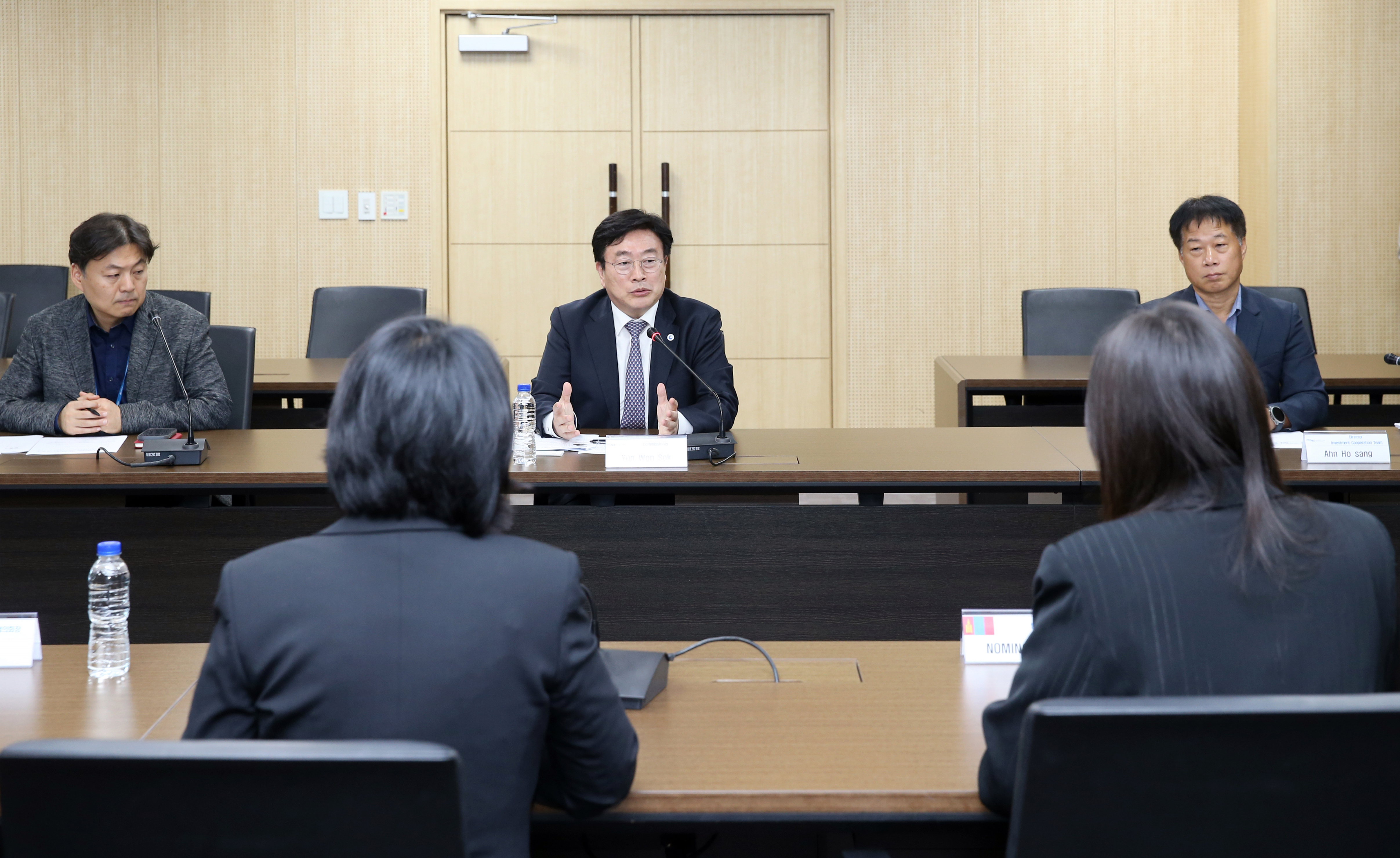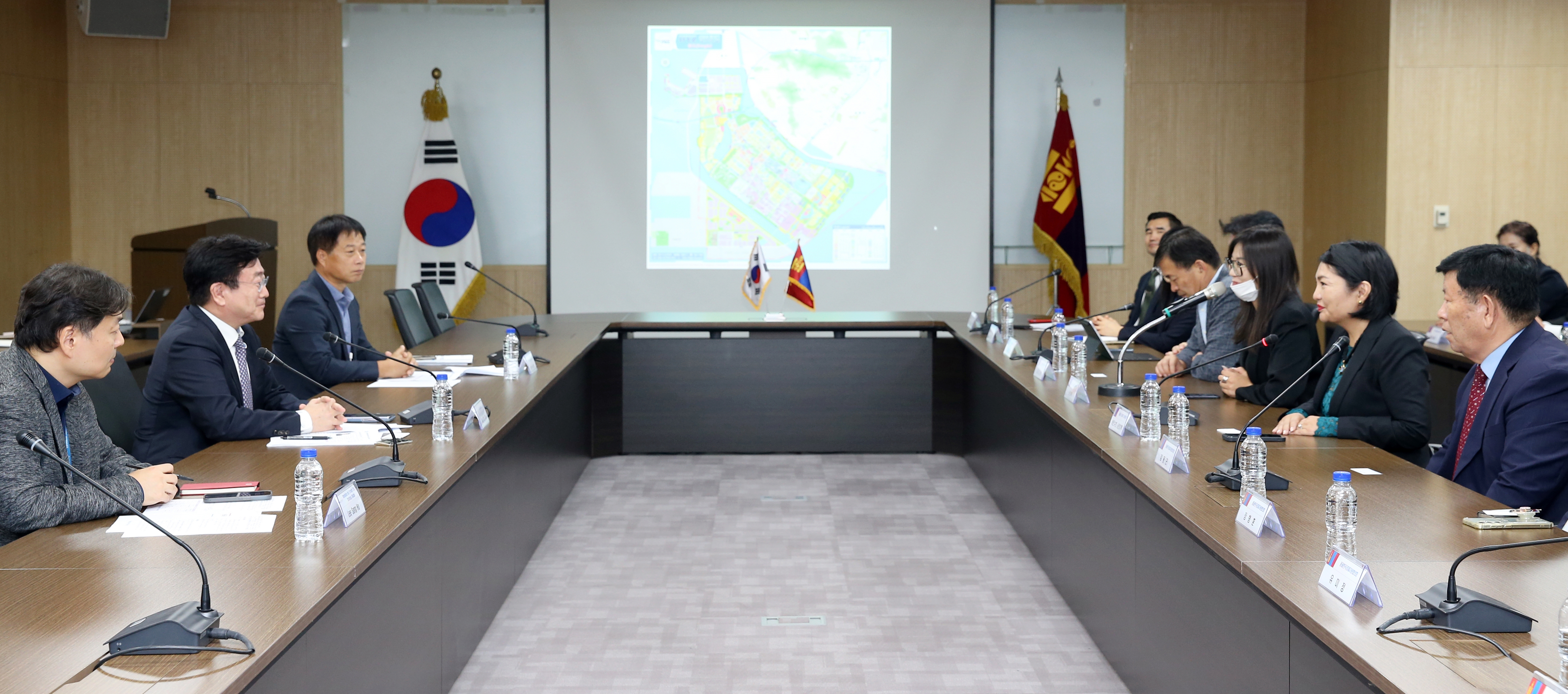 2025년 10월 16일(목요일), 윤원석 청장은 송도국제도시 G타워 8층 보드룸에서 몽골 쿠싱밸리 경제청장을 접견하고 홍보관 및 스마트시티 운영센터를 투어했다.