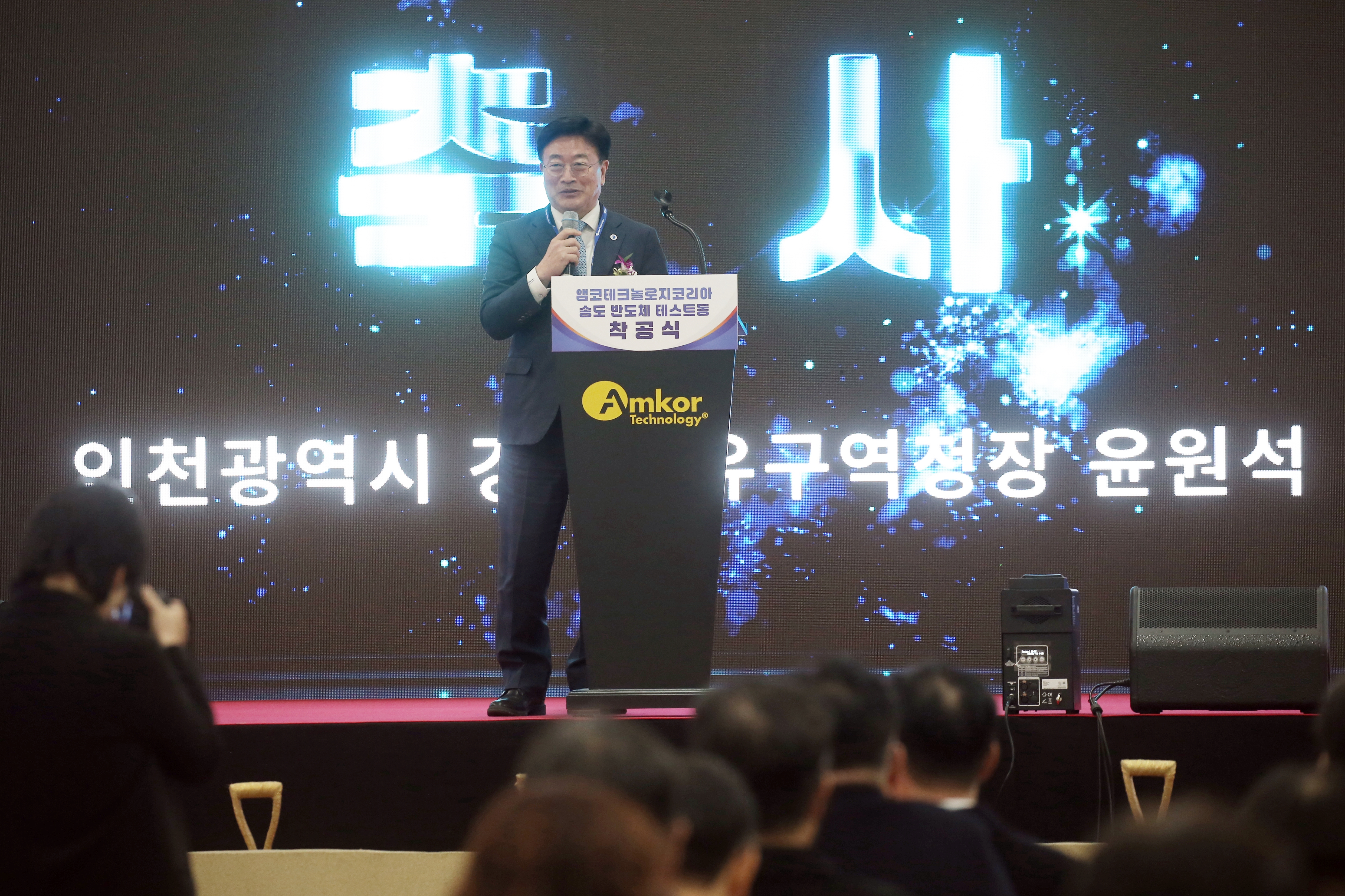 2025년 2월 19일(수요일), 윤원석 청장은 송도국제도시 첨단산업클러스터(B)에서 앰코테크놀로지코리아 송도공장 반도체 테스트동 착공식에 참석했다. 이번 착공은 총 2,661억 원의 외국인직접투자를 바탕으로 신축 제조동과 클린룸, 첨단 공정설비를 구축해 연면적 46,200㎡ 규모의 생산시설을 확충하는 사업이다. 2027년 양산을 목표로 하며, 글로벌 반도체 수요 대응과 공급망 경쟁력 강화, 지역 고용창출 등 다양한 경제적 효과가 기대된다.