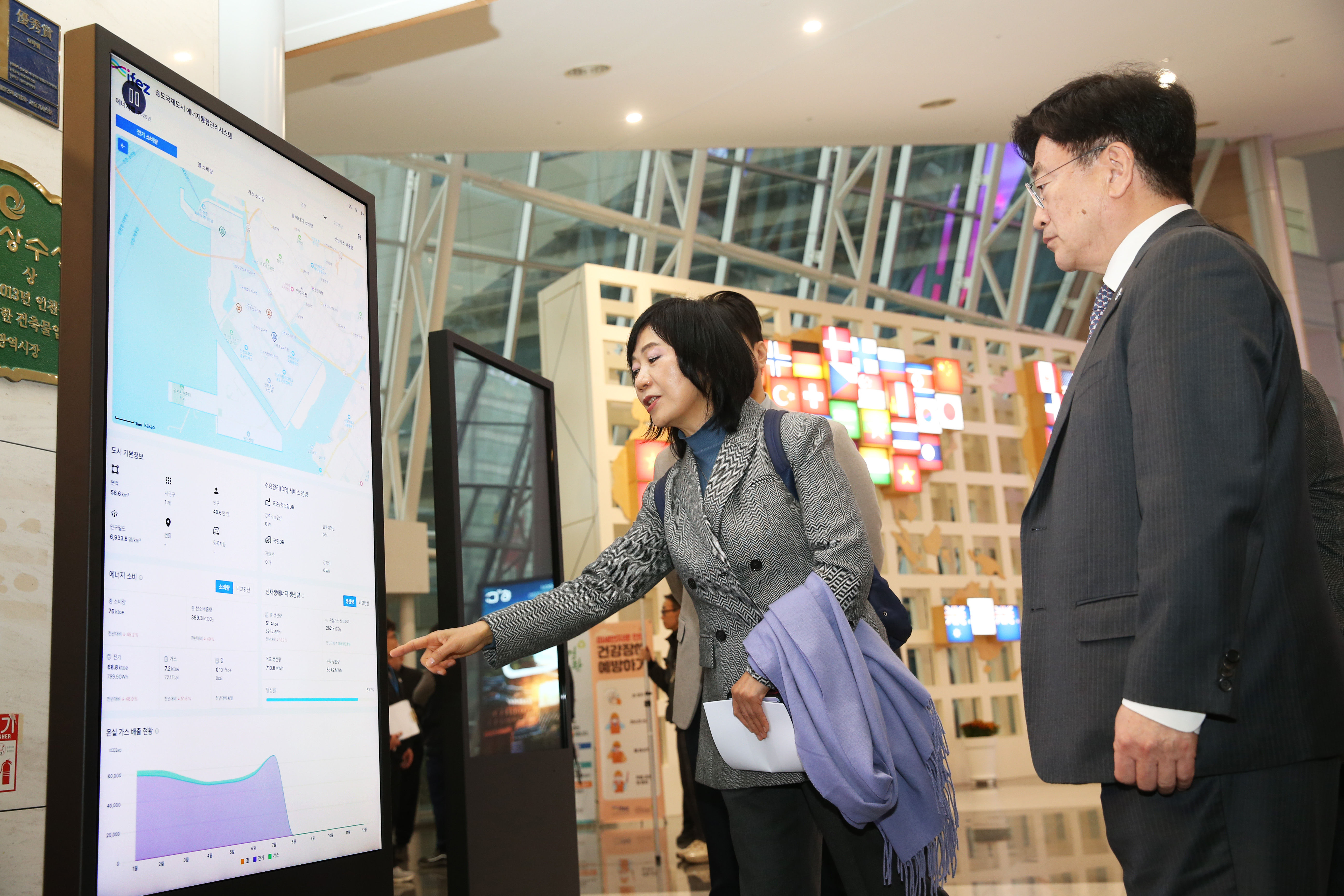 2025년 11월 27일(목요일), 윤원석 청장은 송도 G타워에서 「IFEZ 제로에너지스마트시티 통합플랫폼 구축사업」시연회를 개최했다. 이번 시연회는 지난 2025년 4월부터 추진된 에너지플랫폼 구축(TOC) 사업의 완료를 기념하고, 구축된 스마트도시 인프라와 주요 서비스를 대외에 공유하기 위해 마련됐다. 행사에는 인천테크노파크, 인천종합에너지(주), 현대건설(주), (주)헤리트, (주)제이에이치, 유관기관 등 약 20여 명이 참석했다.