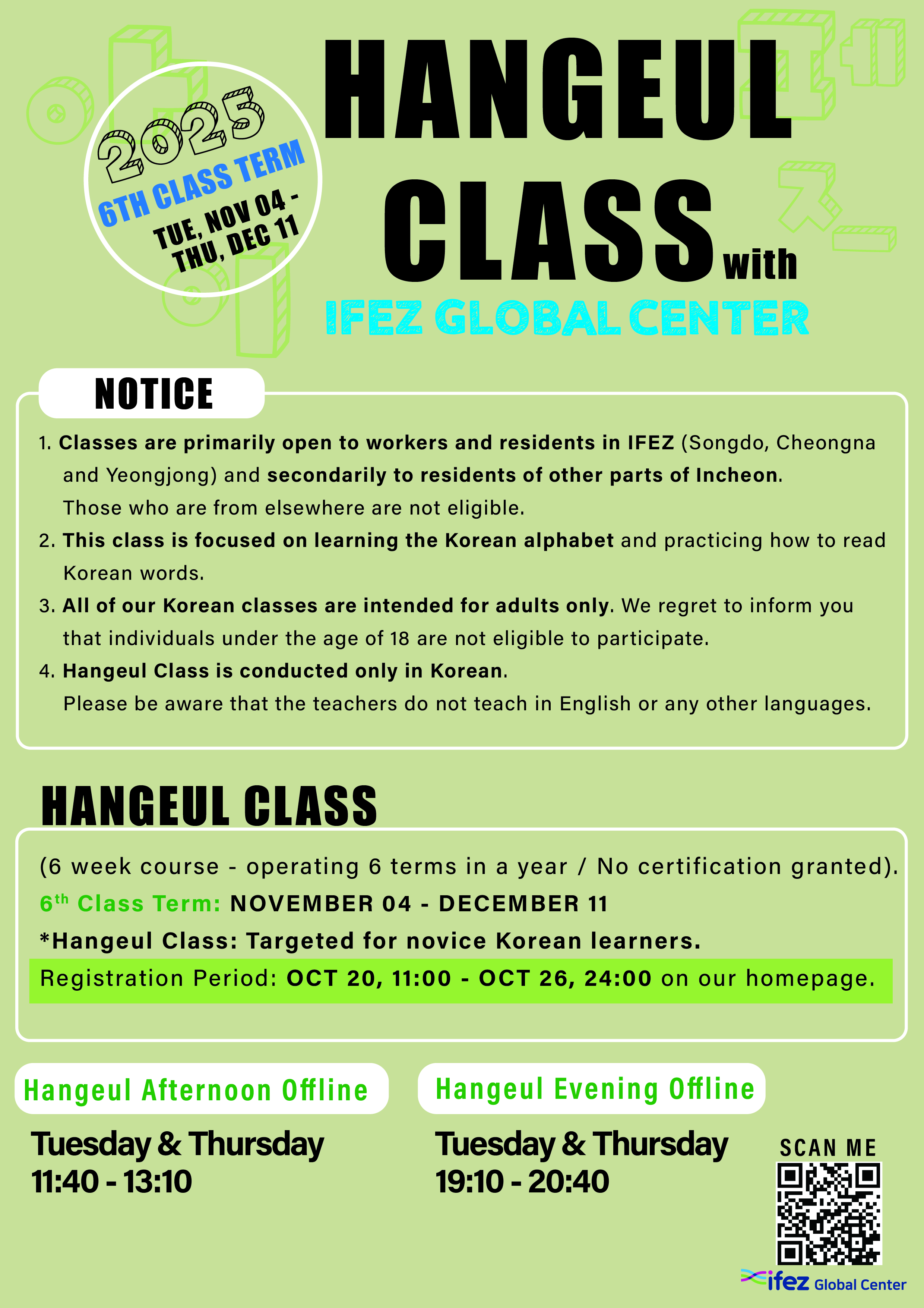 2025 6th Term of Hangeul(Korean Alphabet) Class(Online Registration: OCT 20, 11:00 -)