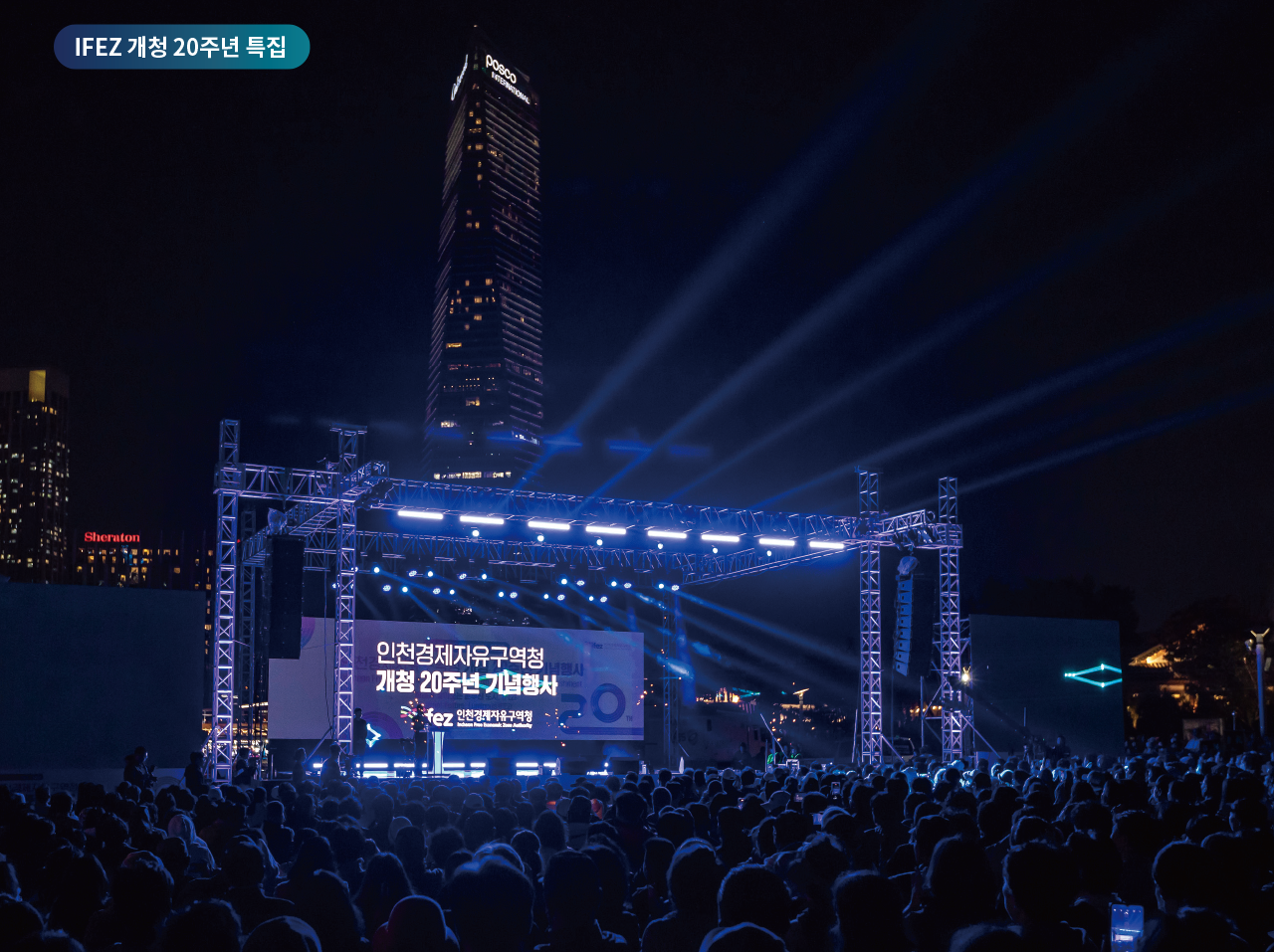 10월 15일, IFEZ 개청 20주년을 맞아 송도 센트럴파크 UN광장에서 기념행사가 열렸다. 시민 3천여 명이 찾은 이번 행사에서 IFEZ의 20주년을 축하하며 앞으로의 20년을 기약했다.