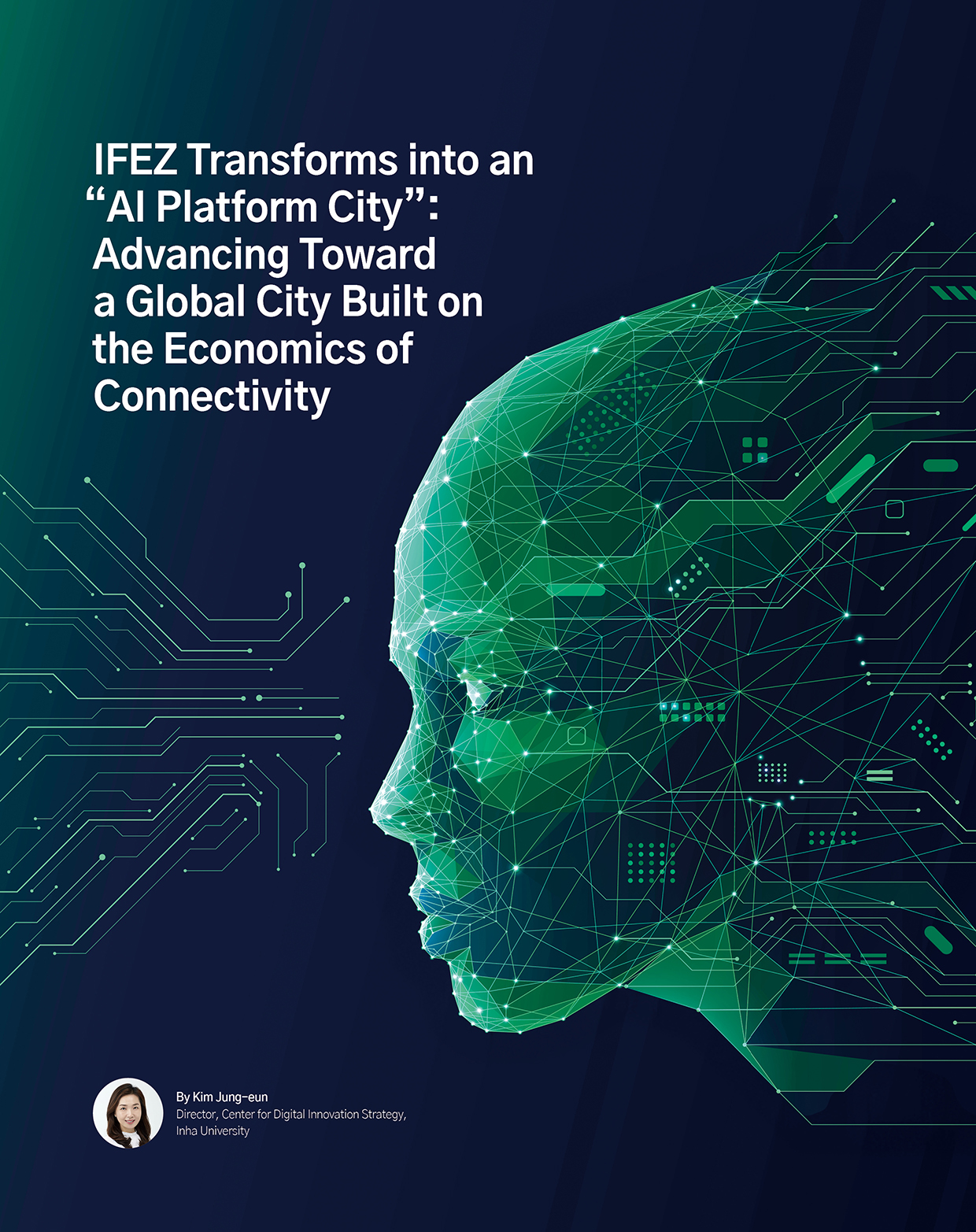 or instance, it has deployed AI-powered object recognition CCTV and video analysis technologies to eliminate monitoring blind spots and to significantly strengthen the urban safety network, such as by improving searches for missing persons and by supporting crime prevention. It has also installed a pedestrian object-recognition system based on data integration and open services to enhance pedestrian safety. In addition, it has upgraded the “Poom Platform,” which supports Incheon Startup Park tenants, to provide GPU resources and AI solutions, thereby strengthening an ecosystem where innovative startups can experiment and refine new ideas. The Smart City – Phase 1 thus goes beyond merely introducing technology, turning the city itself into a platform that encourages active engagement and innovation among citizens and enterprises. IFEZA is currently working on the AI Data Platform Architecture as part of the Detailed Design of Smart City services - Phase 2. Rather than just building infrastructure, this initiative structures how data is collected, integrated, and applied throughout the city, offering a blueprint that leverages AI to reshape the daily lives of the public, as well as industrial processes and urban infrastructure. It is expected to drive a major AI-led transformation across industries, enhance public safety through AI applications in healthcare and disaster management, and establish an AI- and autonomous vehicle-based transportation and logistics ecosystem in the southern part of Ganghwa. Moreover, if this framework is opened to external developers, global startups, and universities, Incheon will expand beyond a city for technological experimentation into a global co-creation hub. This approach will serve as both an actionable strategy for the city to function as part of the global knowledge ecosystem and the starting point for realizing a connectivity-driven economy. The competitive edge of a city is no longer determined by its area or population. The future of a city hinges on how many reliable connections it can make and what people and opportunities emerge from them. Realizing a connectivity-driven economy using data, human capital, and trust defines the very future of a city. If the IFEZ transforms into a true platform city, its development will go beyond the physical boundaries of a new city into a global hub of cooperation built on digital trust.Cities thrive on connectivity. Platformization is a way for cities to further expand and deepen their traditional strengths. By leveraging its airports, ports, and platform-based urban model, IFEZ is expected to connect global citizens and position Incheon as a global city.