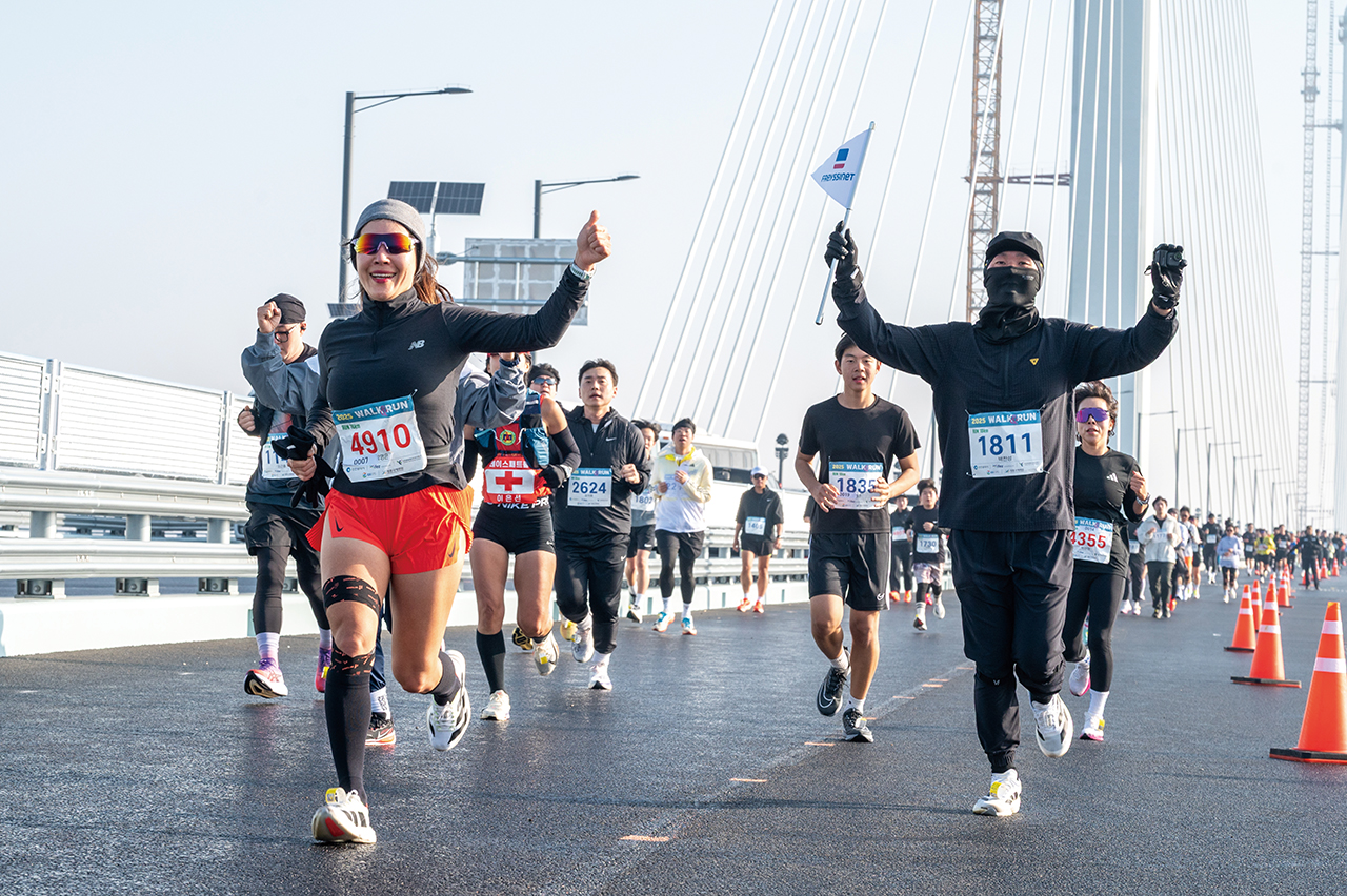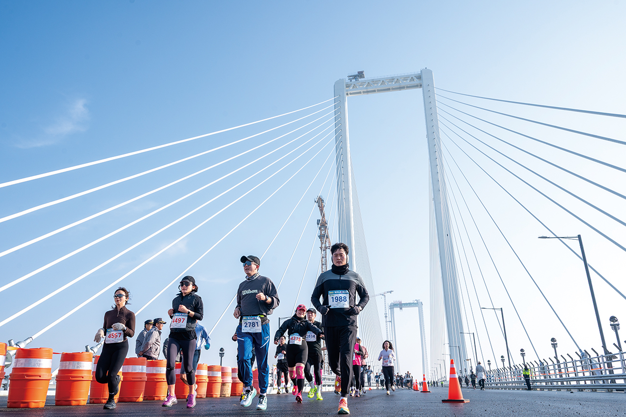 The "Walk & Run” event took place on the 3rd Landing Bridge on December 7. Starting from Gu-eup Baetter Coastal Park, the event brought together about 2,000 walkers and 2,000 runners, totaling roughly 4,000 participants, creating an energetic atmosphere. Kicking off with the opening ceremony at 9:30 a.m., the 10km running group set off at 10:00 a.m. At noon, a variety of performances entertained the participants. Then, the 8km walking group set off at 1:00 p.m., taking their turn in the event. Participants received a variety of awards, including commemorative medals, timing chips, buffs, and beach towels. Participants walked and ran on the sea-crossing bridge connecting Yeongjong and Cheongna, taking in panoramic views of the West Sea, the grand 184-meter-high main pylons, and the urban landscape stretching toward Cheongna Lake Park. Walking and running freely on the wide, car-free bridge created an unforgettable experience for them.