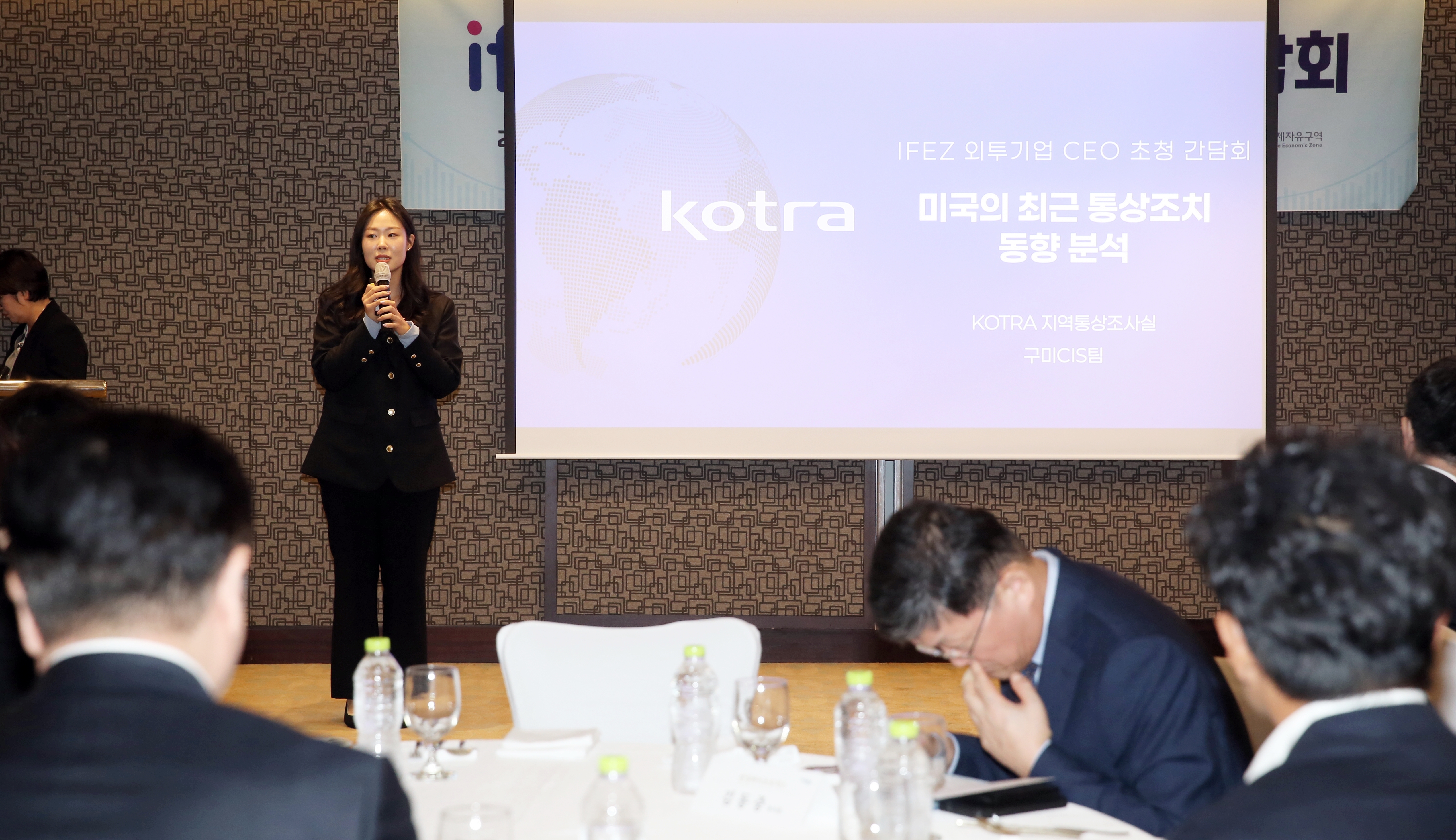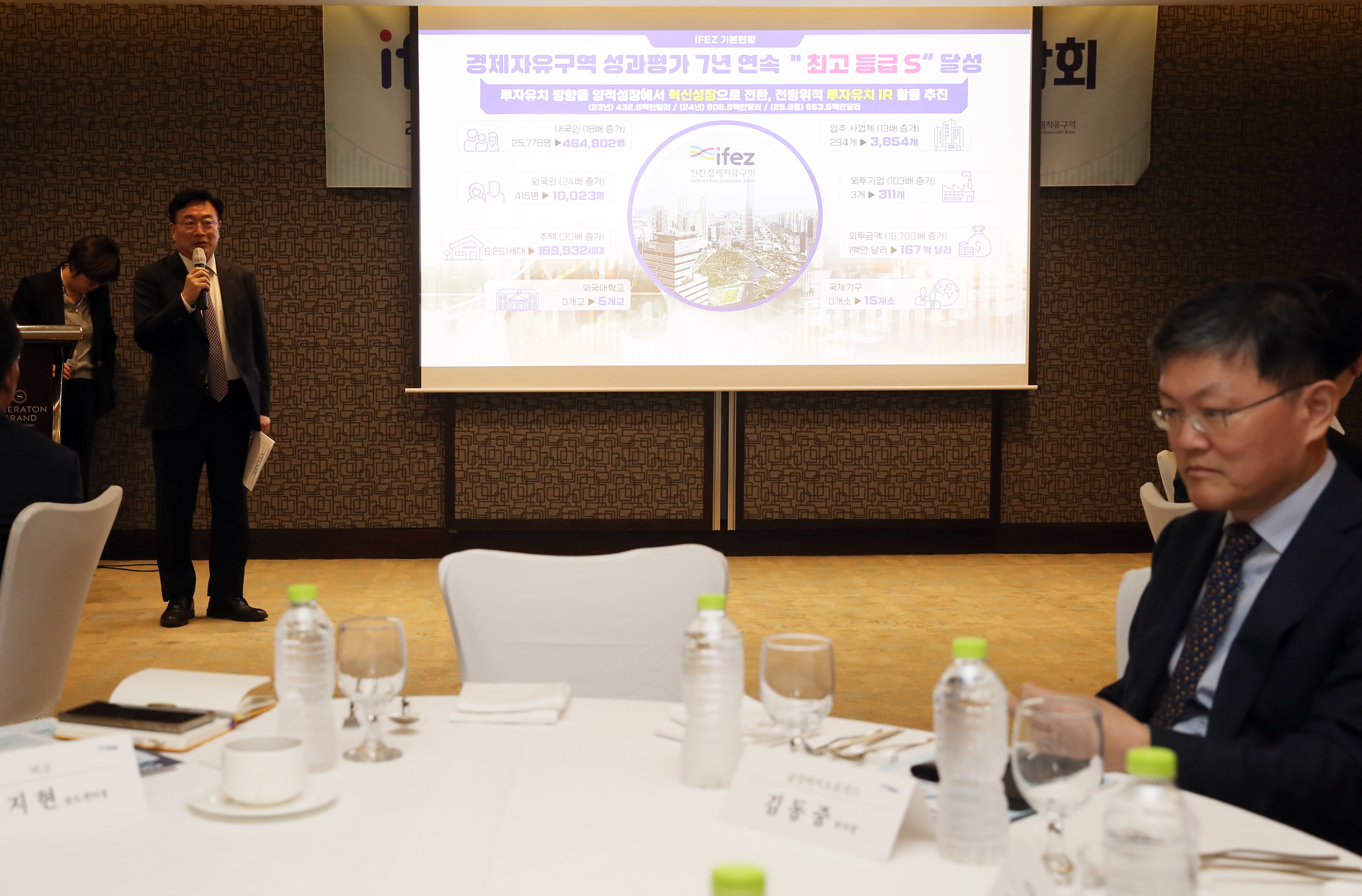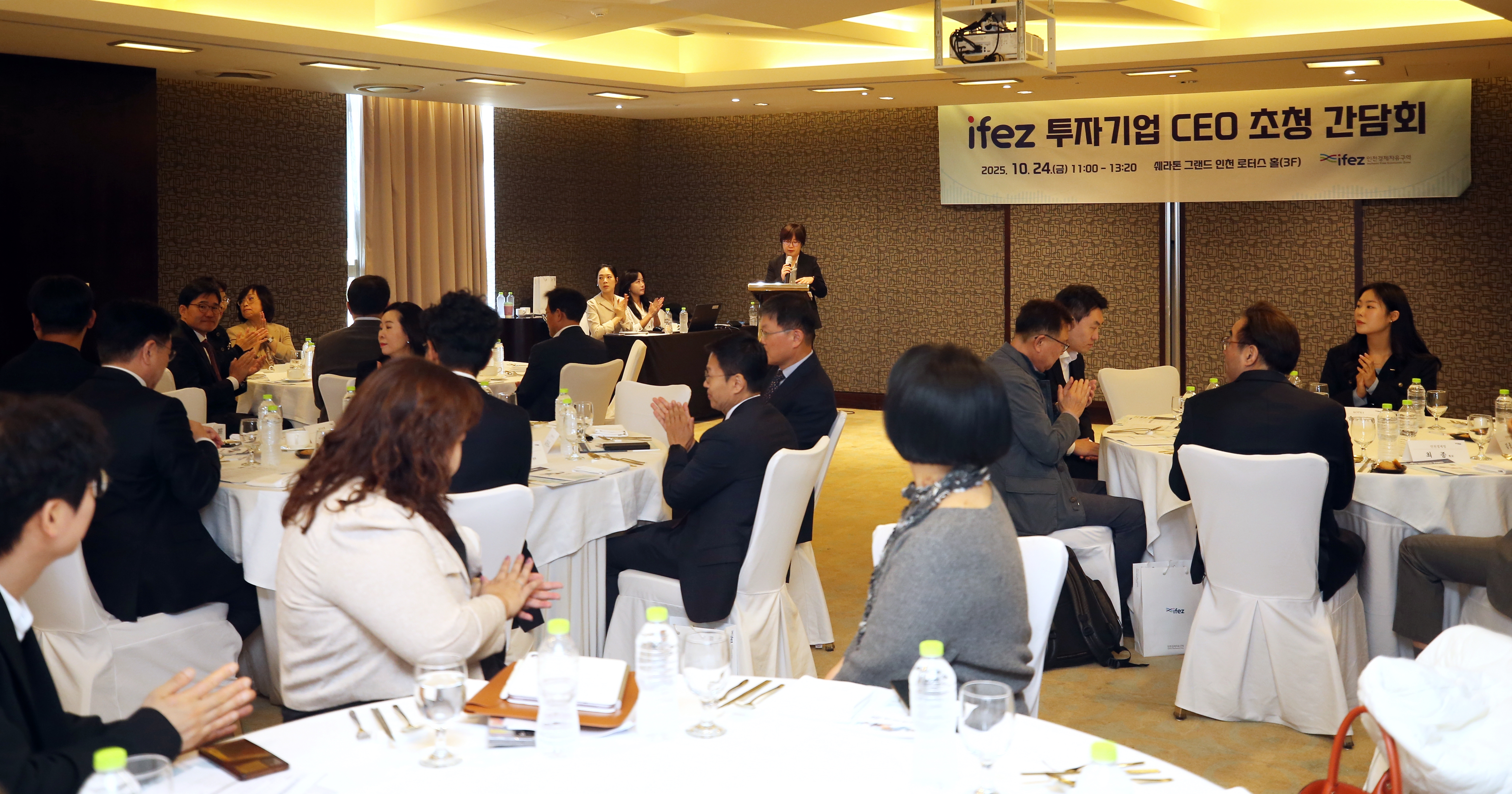 2025년 10월 24일(금요일), IFEZ는 쉐라톤 그랜드인천에서 ‘IFEZ 투자기업 CEO 초청 간담회’를 개최했다. 이번 간담회에는 IFEZ에 입주한 주요 투자기업 CEO와 관계자 40여 명이 참석하여, 글로벌 통상정책 대응 및 투자 협력 강화 방안에 대해 논의했다. 간담회에서는 대한무역투자진흥공사(KOTRA) 구미CIS팀 관계자가 ‘미국의 최근 통상조치 변화와 대응전략’에 대해 발표하였고, 투자기업들과 정부·지자체의 협력 방안에 대한 의견을 교환하였다. 참석자들은 교통 인프라와 기숙사 등 정주 환경 개선, 전력 등 산업 기반시설 강화를 요청하며 IFEZ 확대 지정을 추진 중인 강화남단에 대한 기대감을 나타냈다.