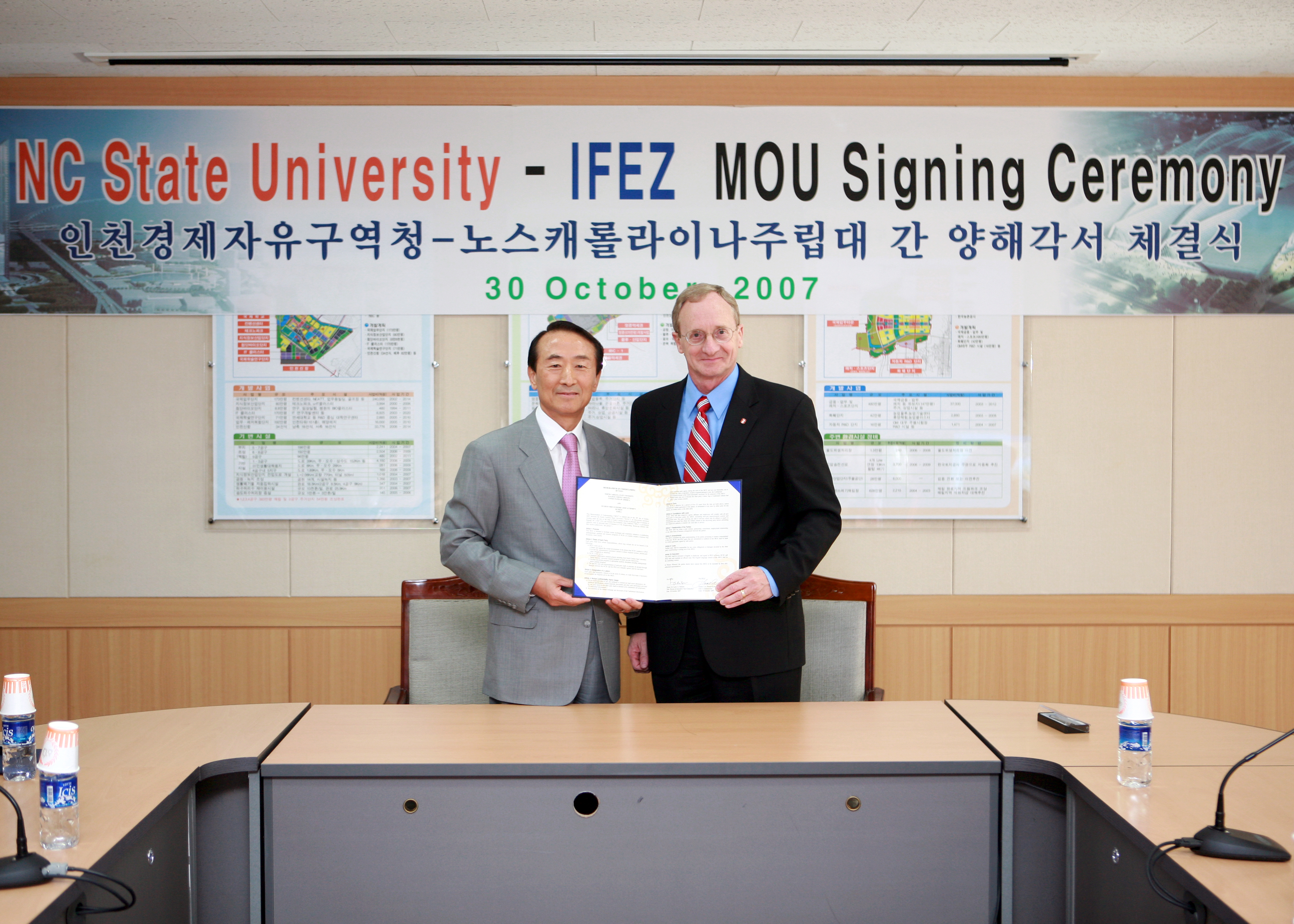 On October 30, 2007, the IFEZ signed an MOU with the North Carolina State University (NCSU) in the United States for academic and research cooperation in the field of biological sciences. The NCSU plans to establish a Plant Pathology Research Institute in Songdo International City in collaboration with Seoul National University and implement a joint doctoral program.