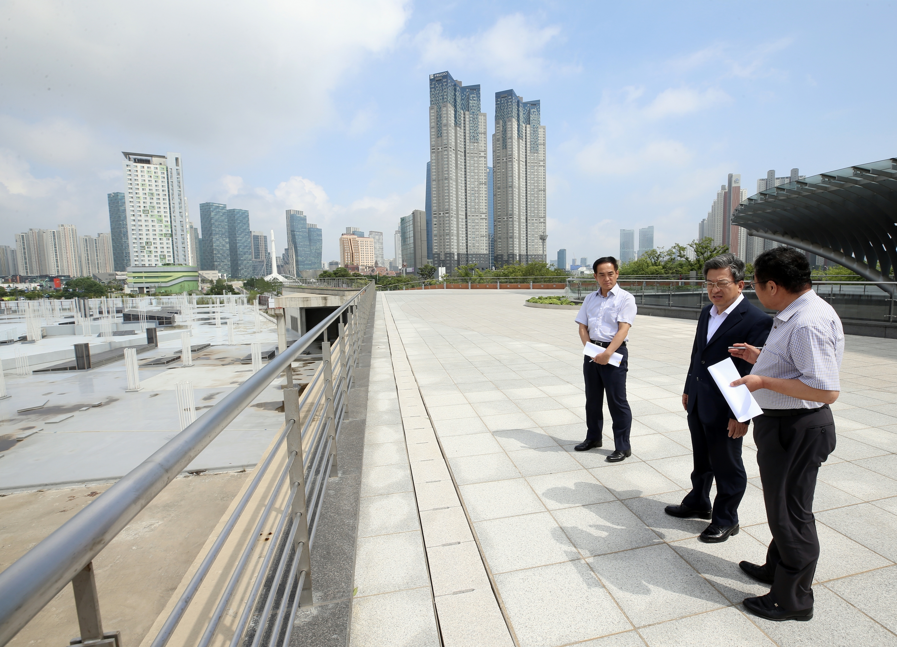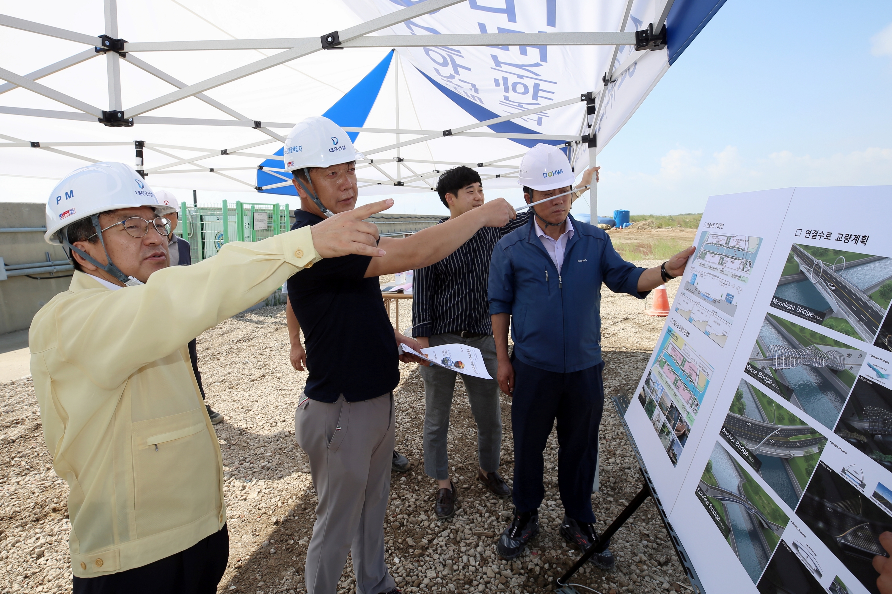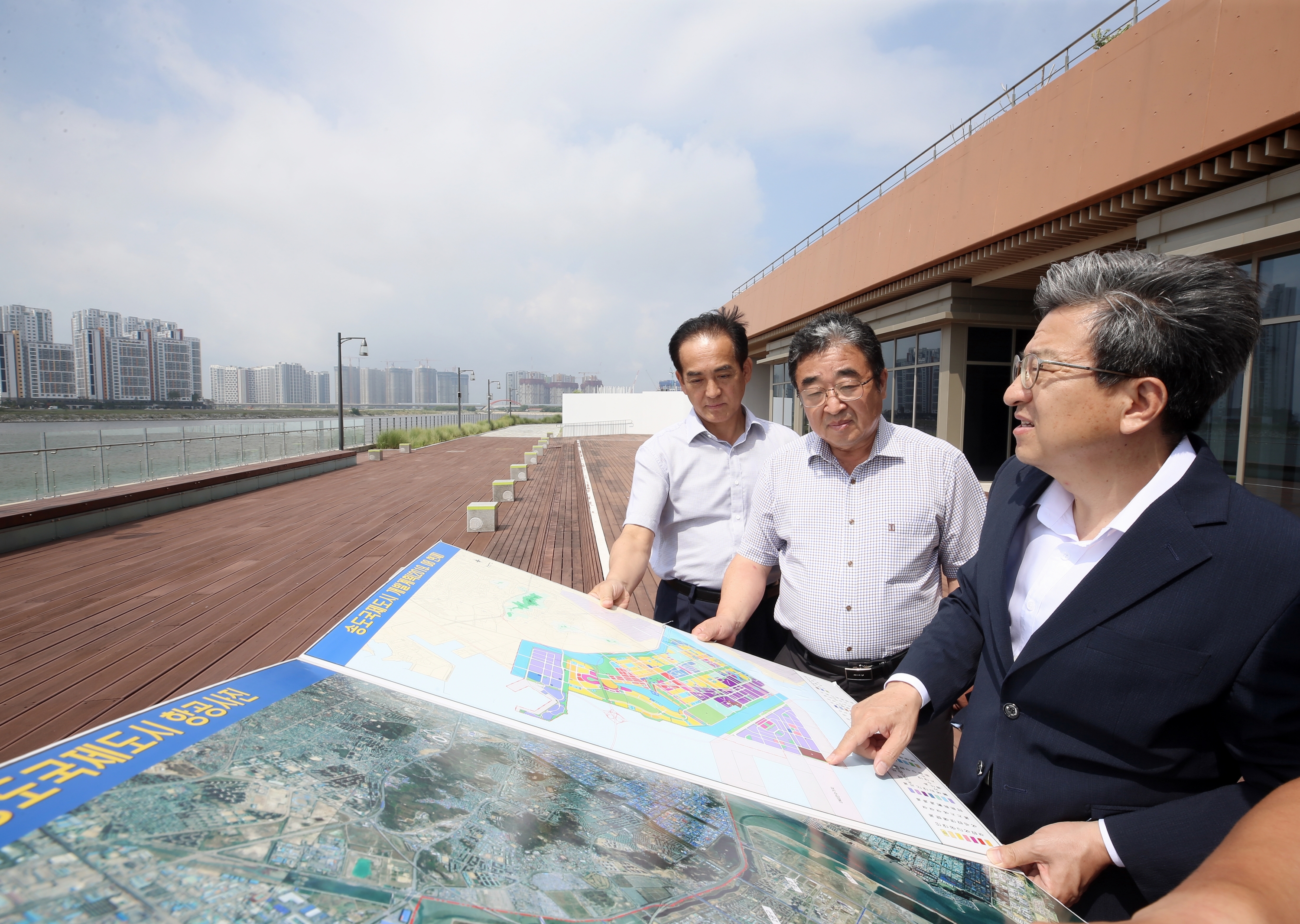 On Friday, August 16, 2019, IFEZ Commissioner Lee Won-jae visited the Art Center Incheon, the waterfront site, the Songdo 6-8 road construction site, and the Songdo 8 section automatic waste collection facility. Director Lee Won-jae took a tour of the project site to find out the status of major projects in the Incheon Free Economic Zone and encouraged officials. In addition, they were asked to report the problems in the promotion process and to make efforts to promote the project without disruption through continuous communication and consultation with related companies and residents.