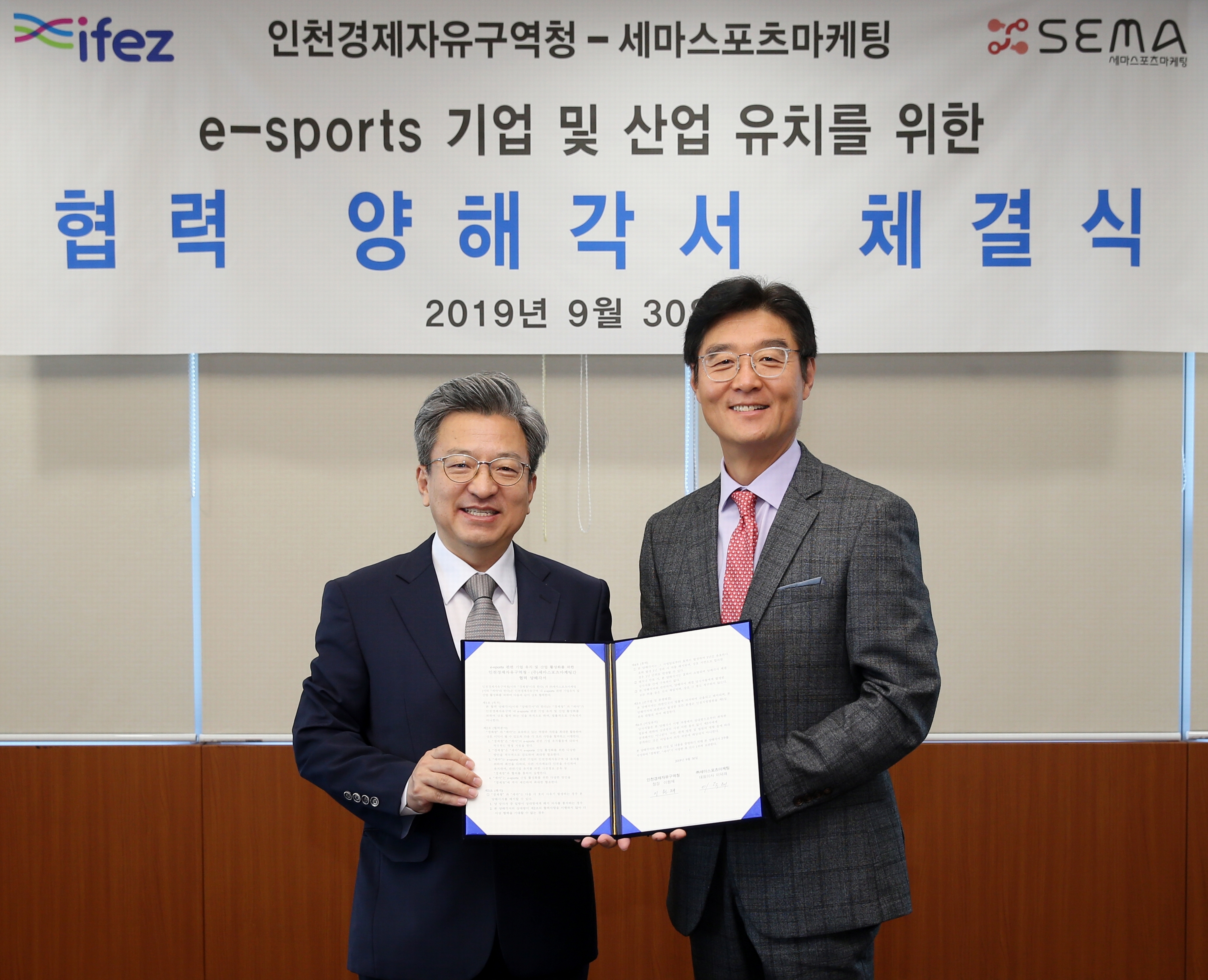 On September 30 (Mon), 2019, IFEZ signed a memorandum of cooperation to attract companies and promote industries related to sema sports marketing and e-sports. Through the signing of this agreement, the company will proceed with the operation of Incheon, Korea, and overseas e-sports related companies and universities. In addition, we plan to cooperate with each other for the opening of e-sports events and educational programs, and to share and discuss various policies for vitalizing the e-sports industry in Incheon.