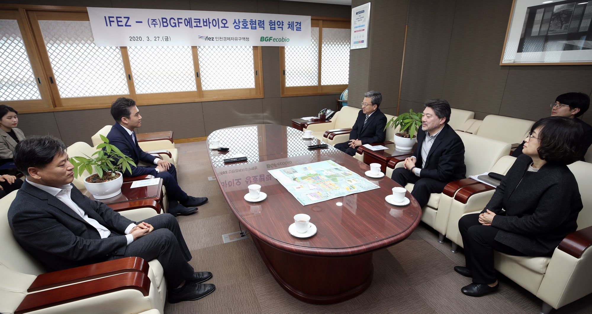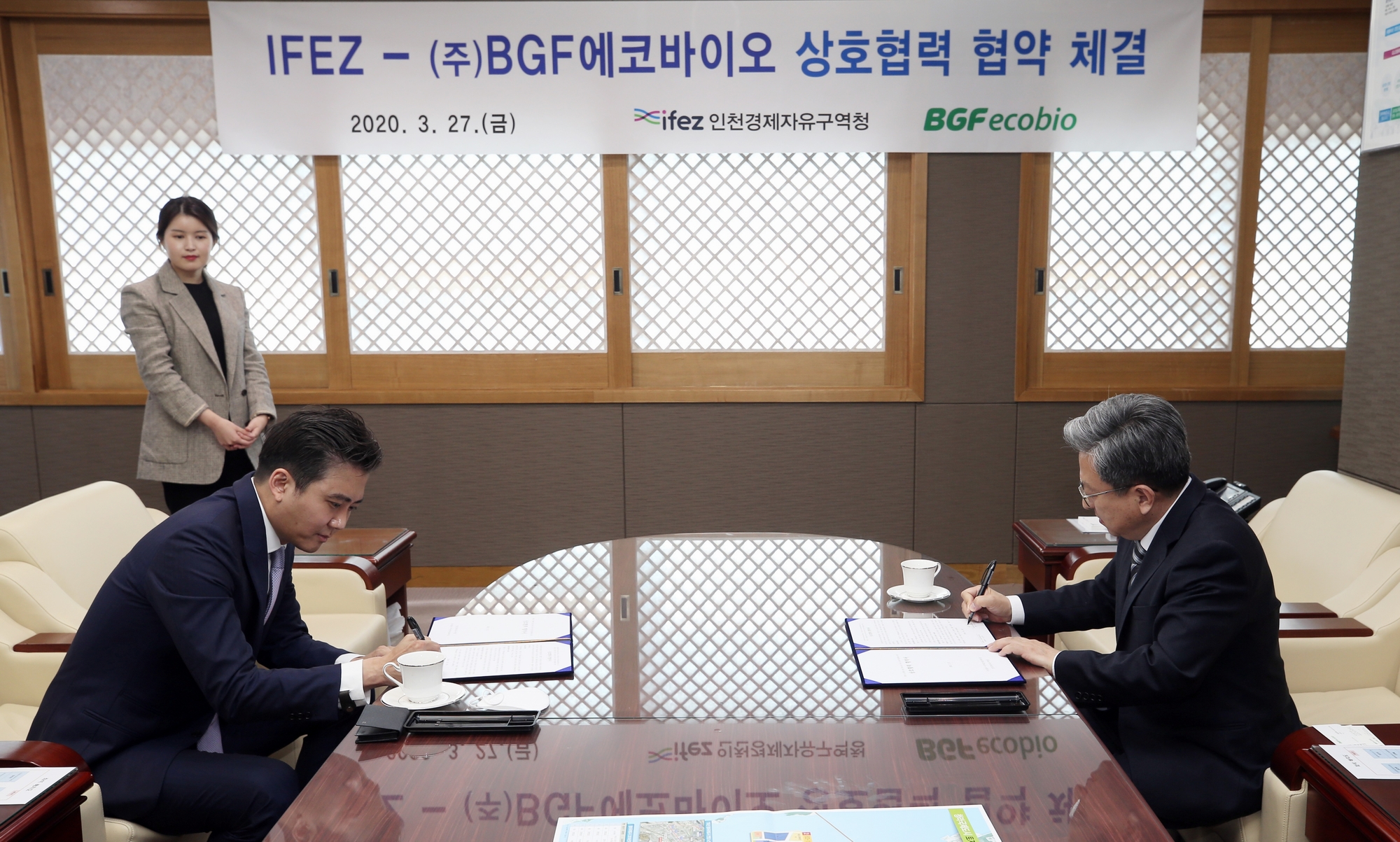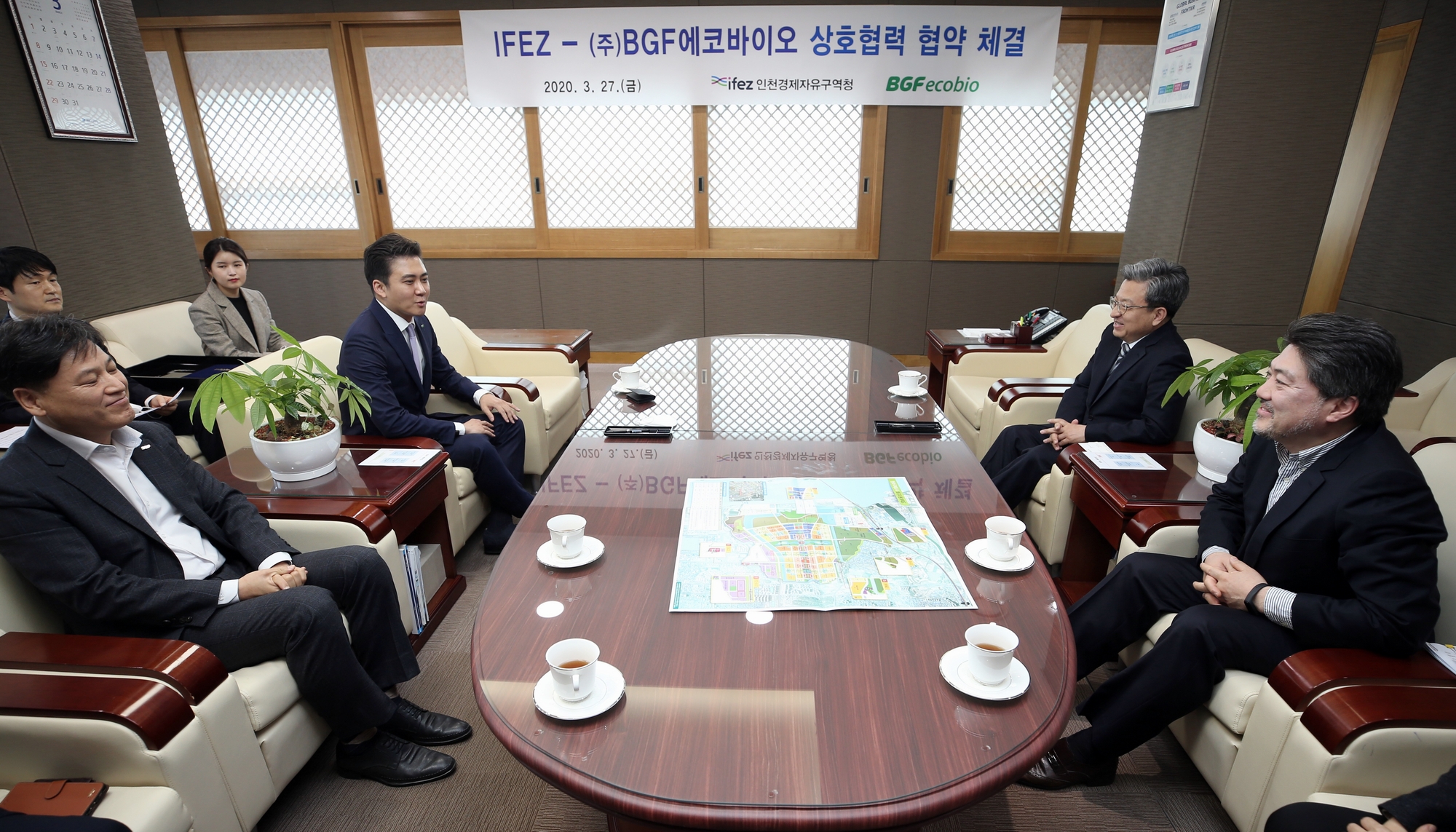 Friday, March 27, 2020 IFEZ signed a mutual cooperation agreement with BGF Ecobio, an eco-friendly high-tech biodegradable plastic product manufacturing company. With this conclusion, BGF EcoBio will build an eco-friendly high-tech product development and manufacturing facility by investing approximately 49.3 billion won in project cost at 15,623m2 of Incheon Hi-Tech (IHP) located in Cheongna International City. It will start construction in August 2020 and be completed in March 2021.