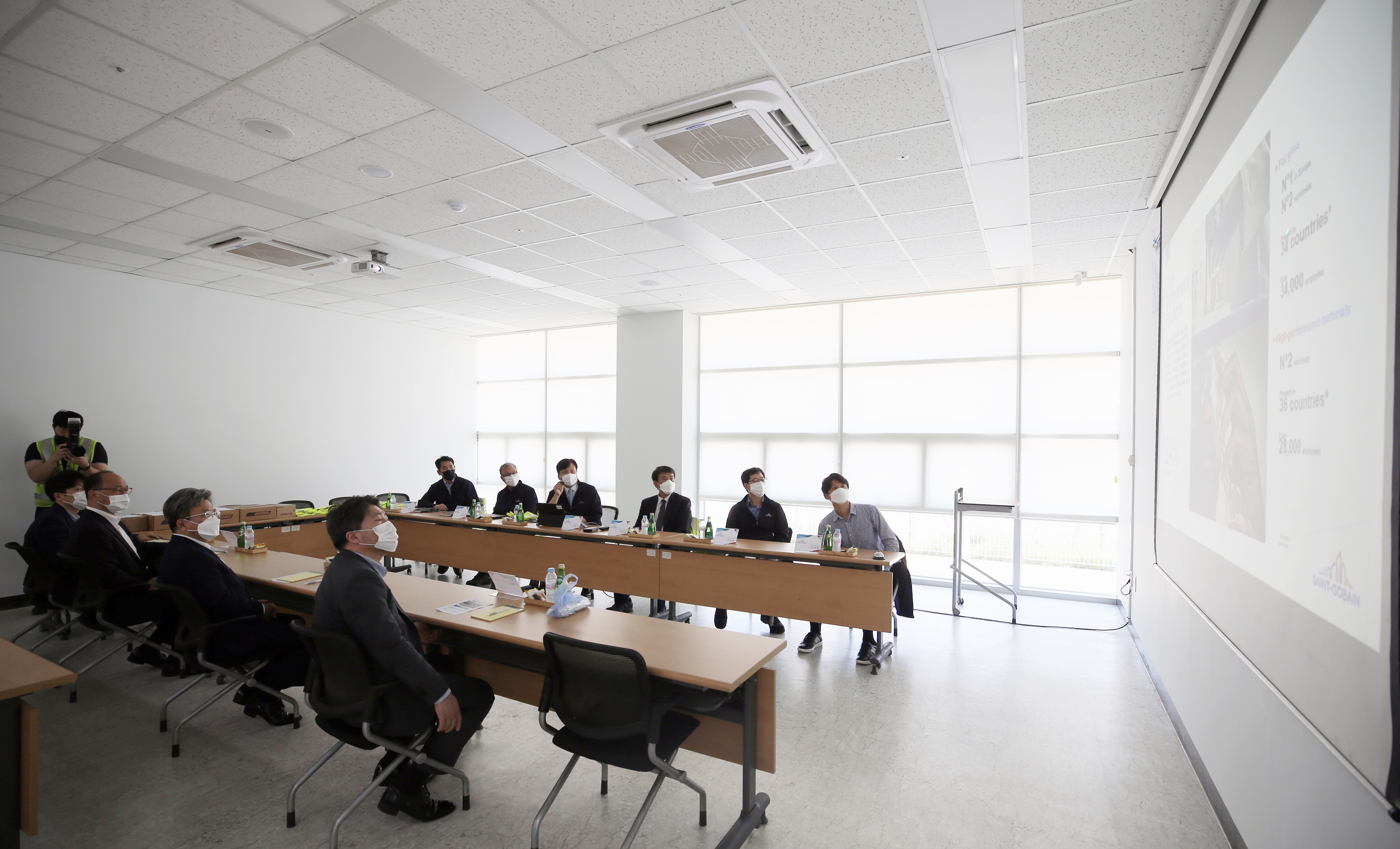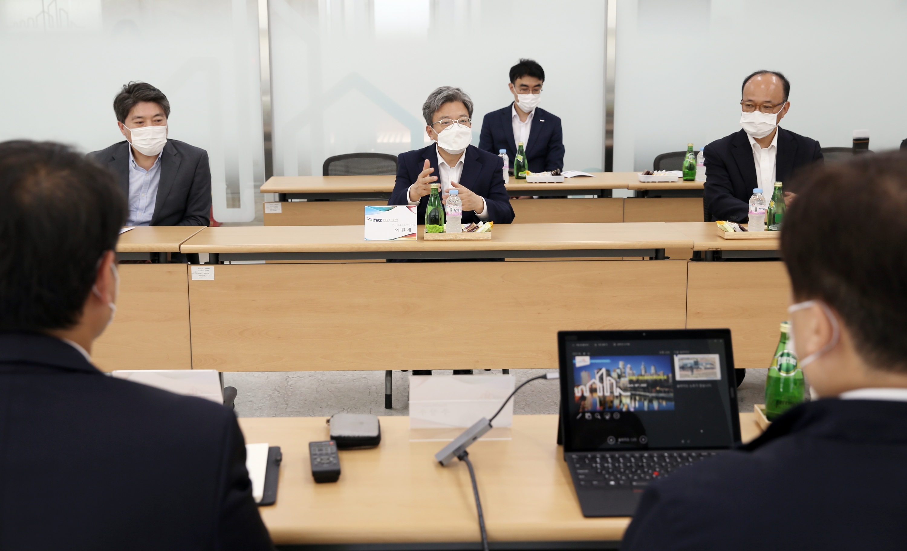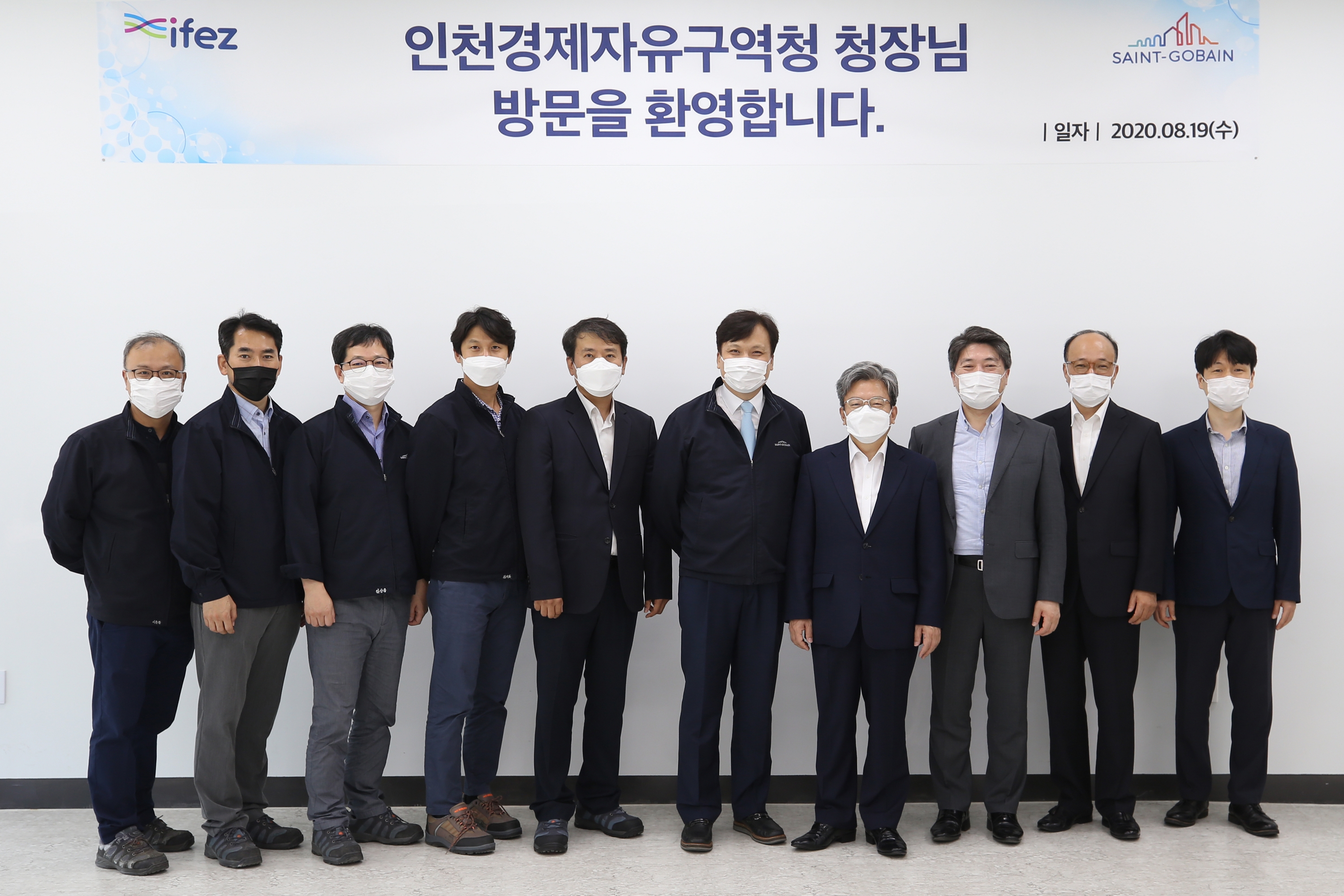 On August 19, 2020 (Wednesday), Lee Won-jae visited Saint-Gobang Korea, a bio and high-tech company that moved into the IFEZ Songdo International City. Saint-Gobang Korea is the world's 200th largest company by Fortune magazine in the U.S. and is a 100 percent subsidiary of Saint-Gobang in France, which was founded in 1665 and has developed and produced ceramic materials and high-performance plastic technology products for 350 years. Saint-Gobang invested a total of 22 billion won in the project and completed a two-story, one-story bio-process product manufacturing facility at 218-5 Songdo-dong in January and is currently in operation. Saengobang, built in Songdo International City, is built as a manufacturing facility based on the company's smart factory technology and will gradually expand to various smart factory technologies, including the deployment and operation of "co-operative robots."