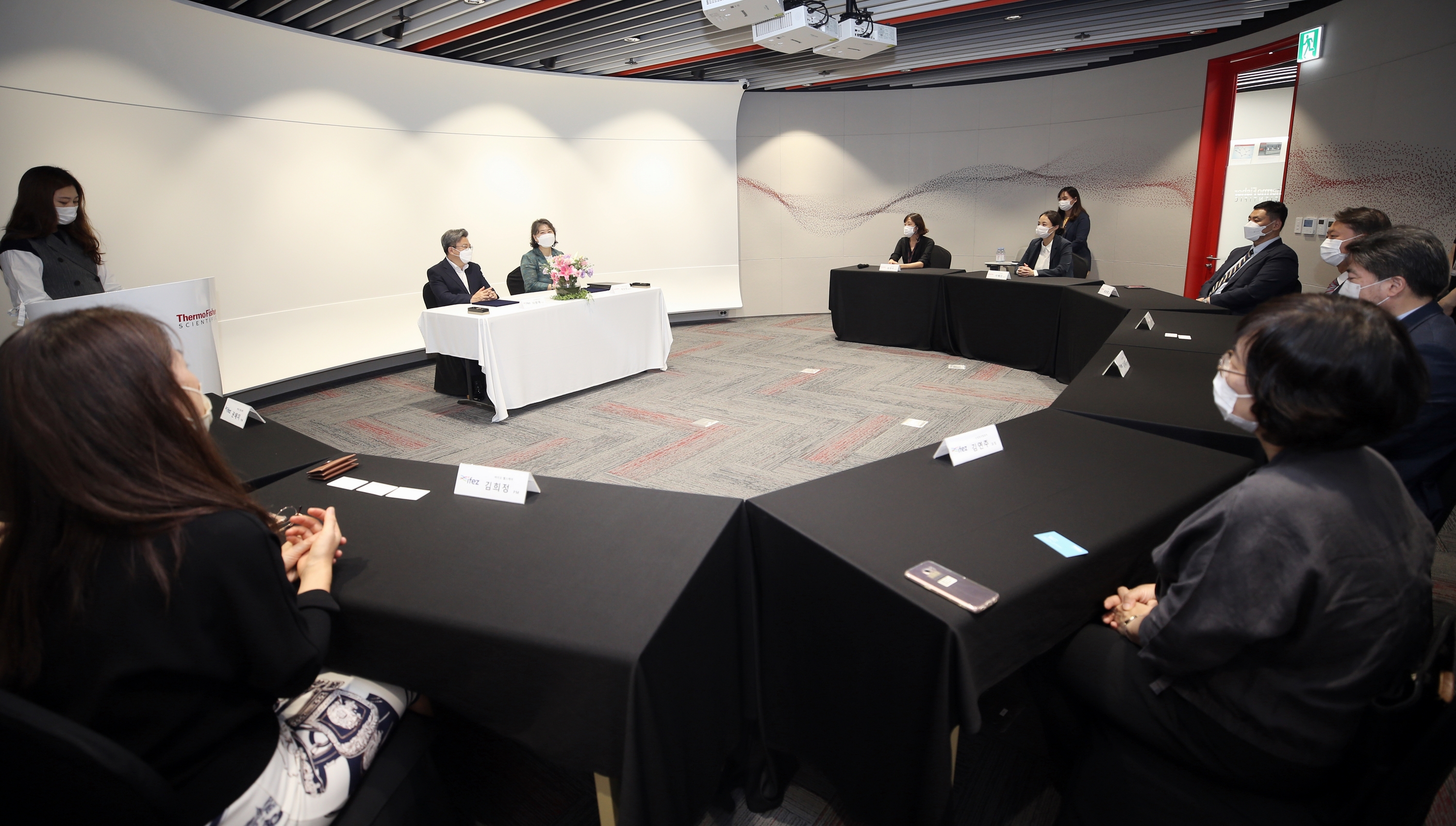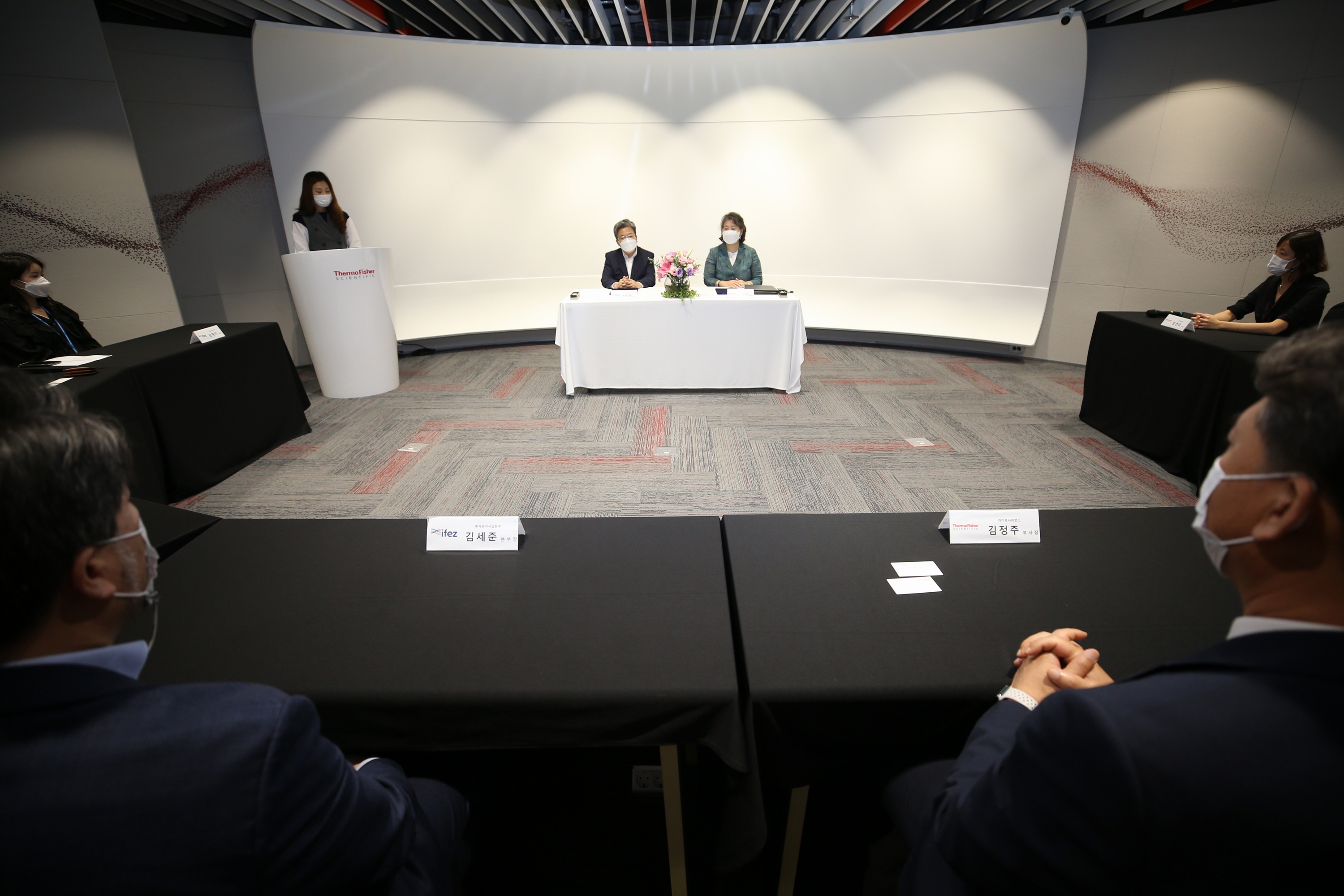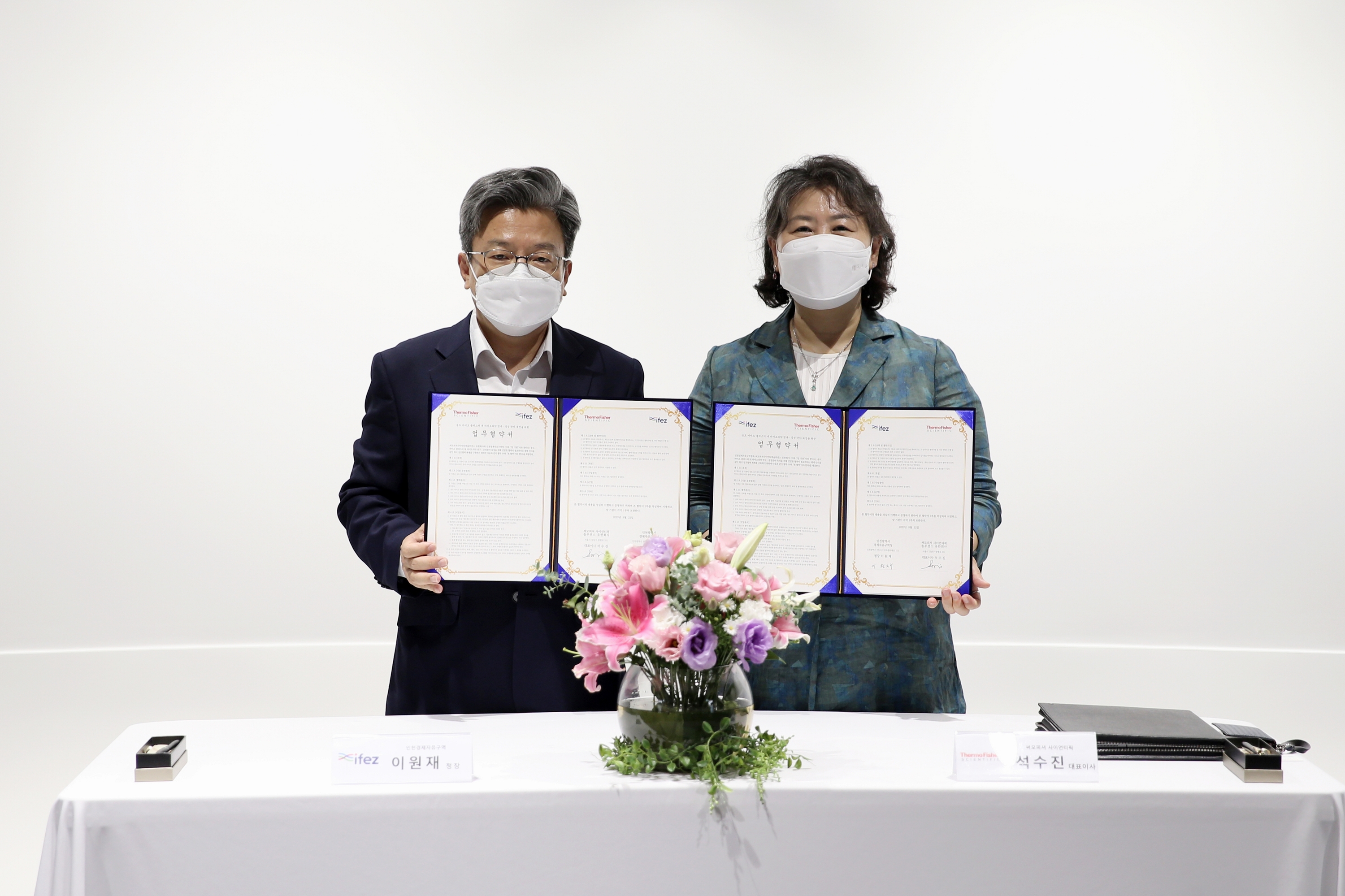 On September 22, 2020 (Tuesday), IFEZ signed an agreement with Thermo Ffischer Scientific Korea, the Korean subsidiary of Thermo Fischer, to foster bio-medicine research and process in Songdo International City. The Bioprocess Design Center (BDC), which will be built this time, will have about 100 equipment that can be used from basic research to production of bio-medicine in animal cell and microbial culture rooms, cell culture badges and buffers preparation rooms, and refining and analysis laboratories that reproduce biopharmaceutical production processes.