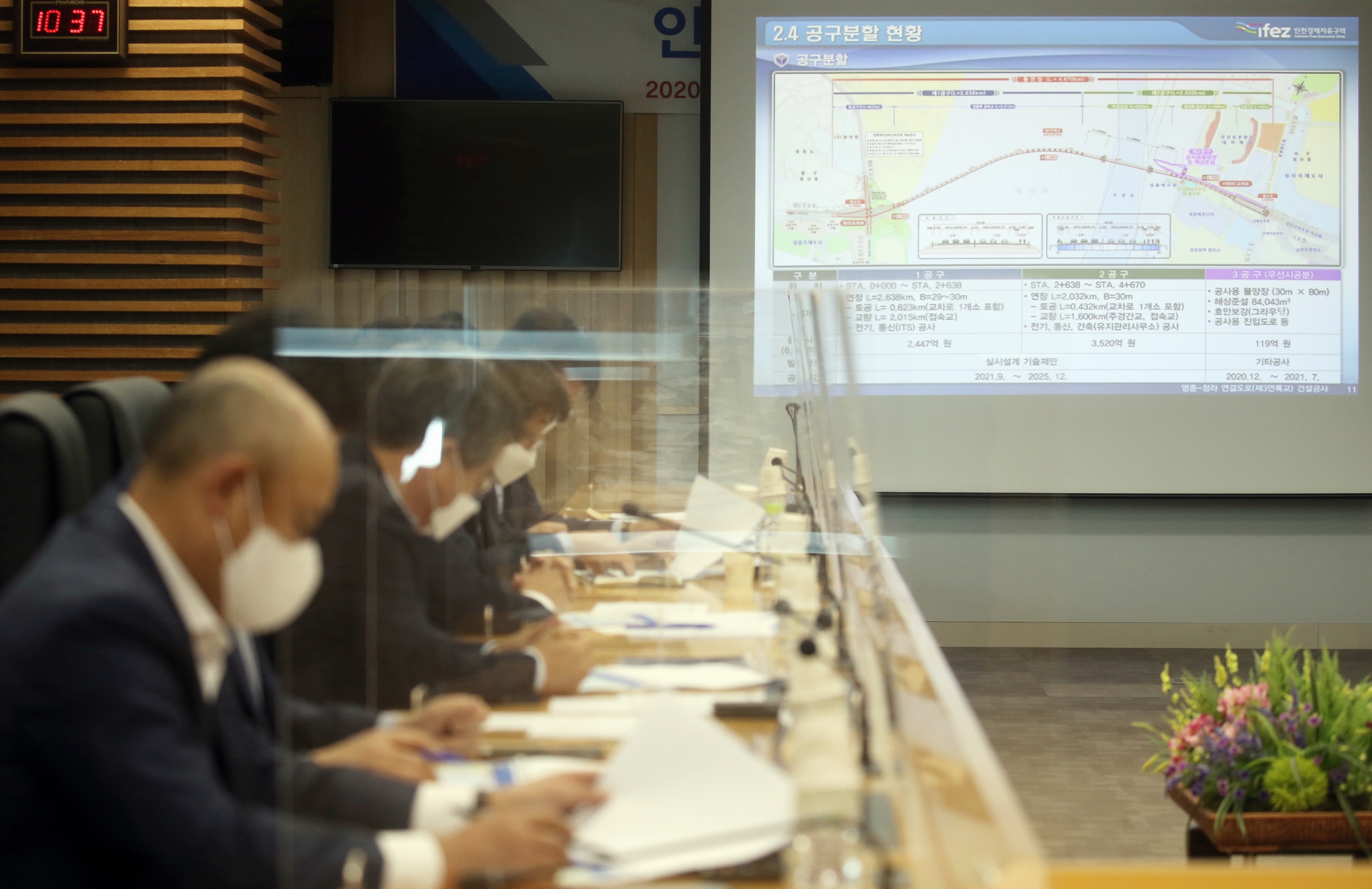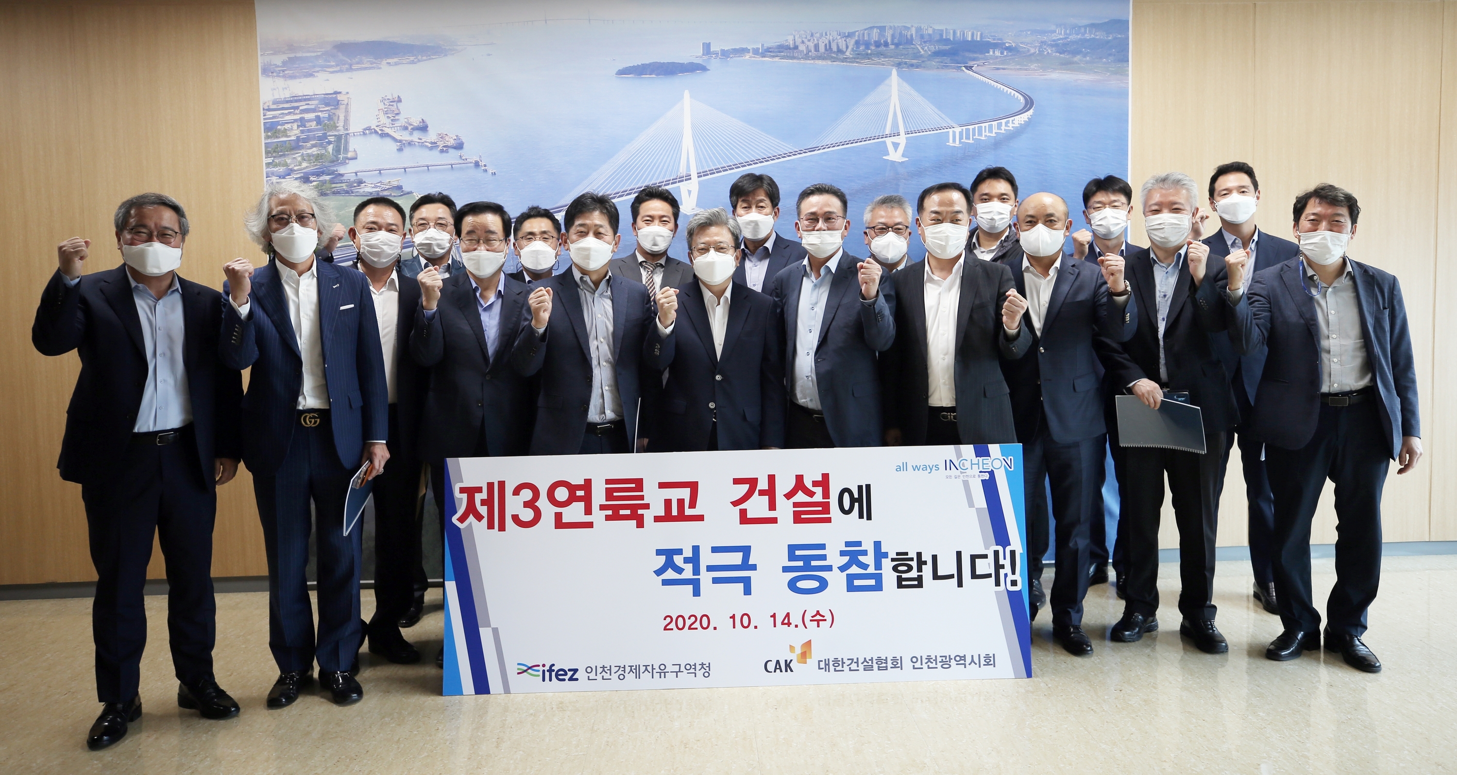 On October 14, 2020 (Wednesday), IFEZ held a meeting on the construction of the third bridge with representatives from 15 construction companies in Incheon attending. At the meeting, the IFEZ explained how the project was carried out, the details of the original design, the method of bidding for the design technology proposal, and the future schedule, and sought cooperation from local companies to prevent them from bidding for the construction project. He also listened to the difficulties of local construction companies. The third bridge (Jungsan-dong, Jung-gu, and Cheongna-dong, Seo-gu) will be 4.67 kilometers long and 29 meters wide and will be constructed as six round-trip lanes, sidewalks and bicycle paths, and a contract is being requested to the Public Procurement Service last month for the first three construction sites to create a second section and a supply and demand section of Cheongna.