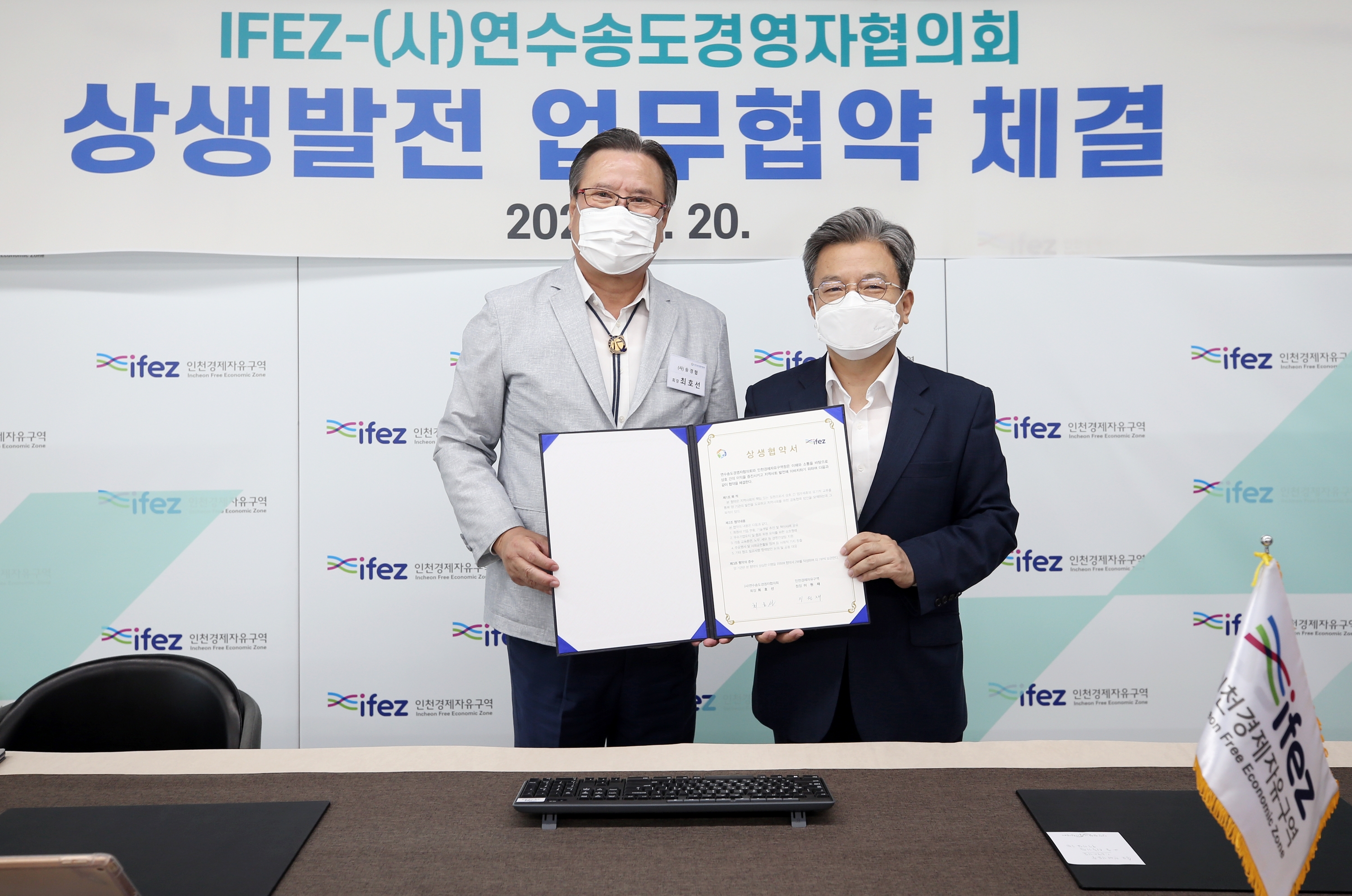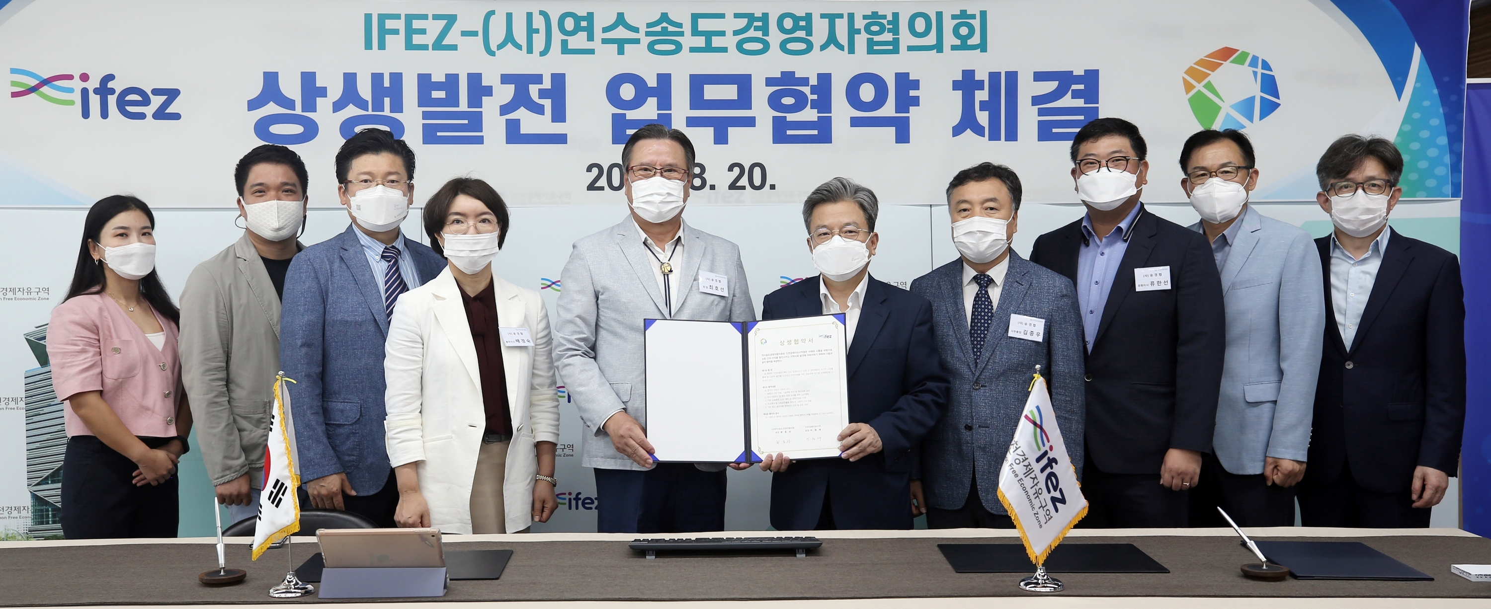 On August 20, 2021 (Friday), a business agreement was signed between IFEZ and the Songdo International City Management Council, a divisional corporation. The main contents of this agreement are △ mutual cooperation to attract excellent companies and attract members of associations △ participate in social contribution activities with IFEZ △ share business status of member companies, technology development promotion and innovation cases △ support management consulting such as education, labor, and tax. The Songdo International City Management Council was launched in July 2011 to exchange management technologies and functions in Songdo International City, and consists of 140 companies including 48 regular members.