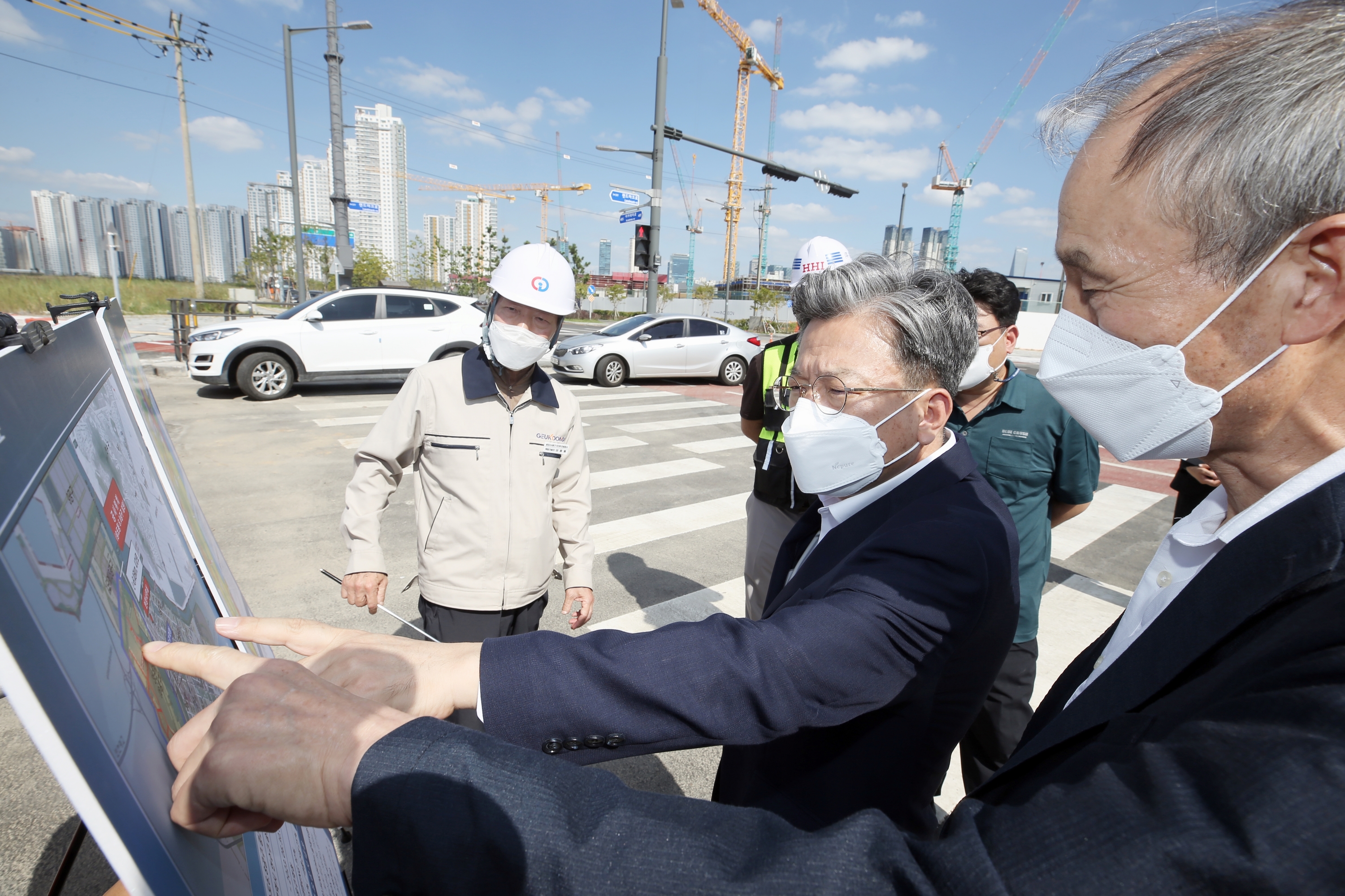 Lee Wonjae, head of IFEZ, visits the construction site of Songdo International City District 6 and 8.
