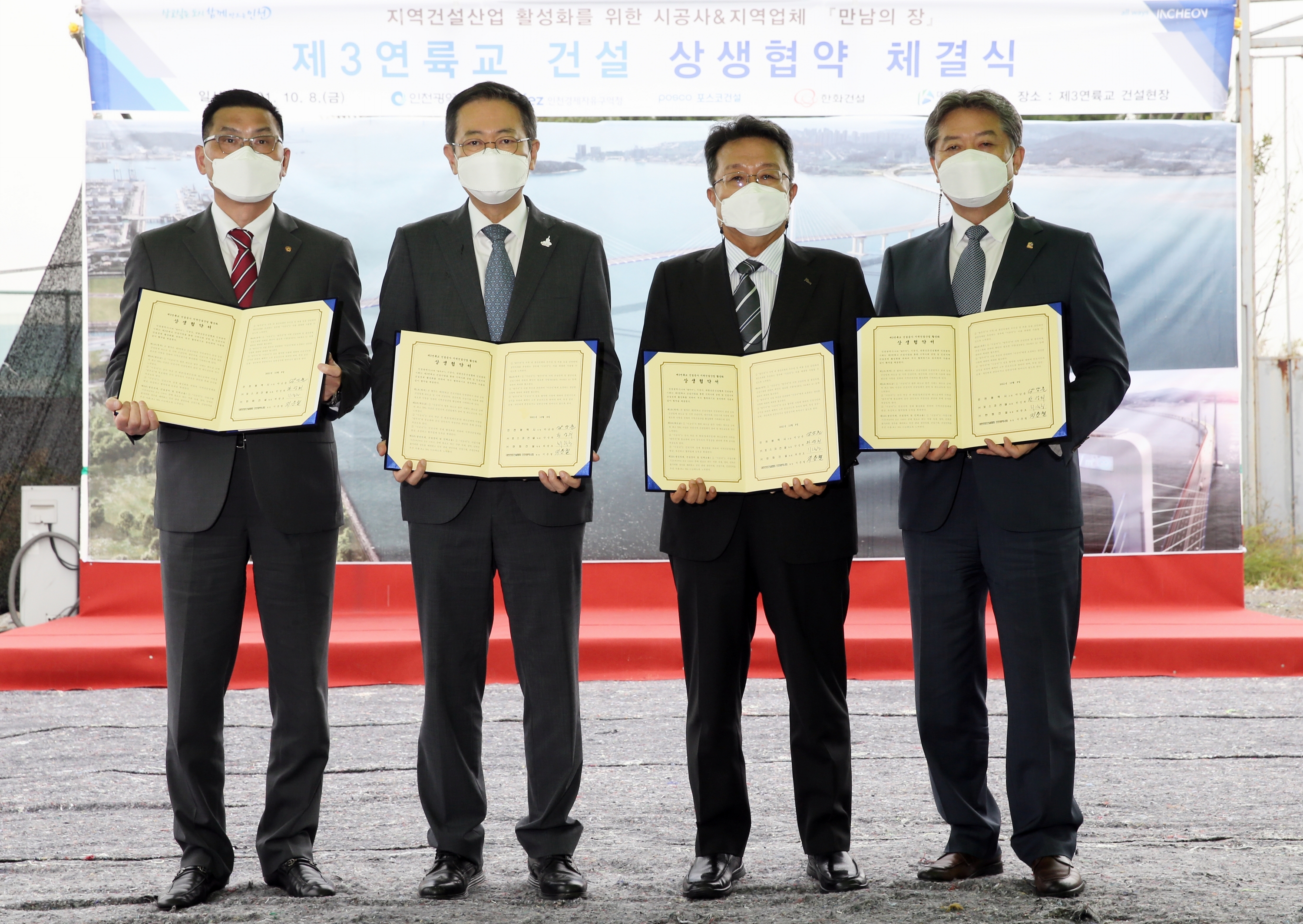 On October 8, 2021 (Friday), IFEZ signed an agreement for co-prosperity with a "meeting place" between the construction contractor of the third landing bridge and the construction company in Incheon. More than 40 professional construction companies in Incheon, materials, new technologies, and patent holders, including POSCO E&C Co., Ltd., a construction company in Section 2, and Hanwha E&C, a construction company in Section 1, participated, while each local company shared construction performance and construction methods. Through this event, IFEZ aims to reflect the design of technology proposals from local companies with excellent technology such as new technologies and patent construction methods, and to expand participation by registering professional construction companies as partners to achieve more than 76%.