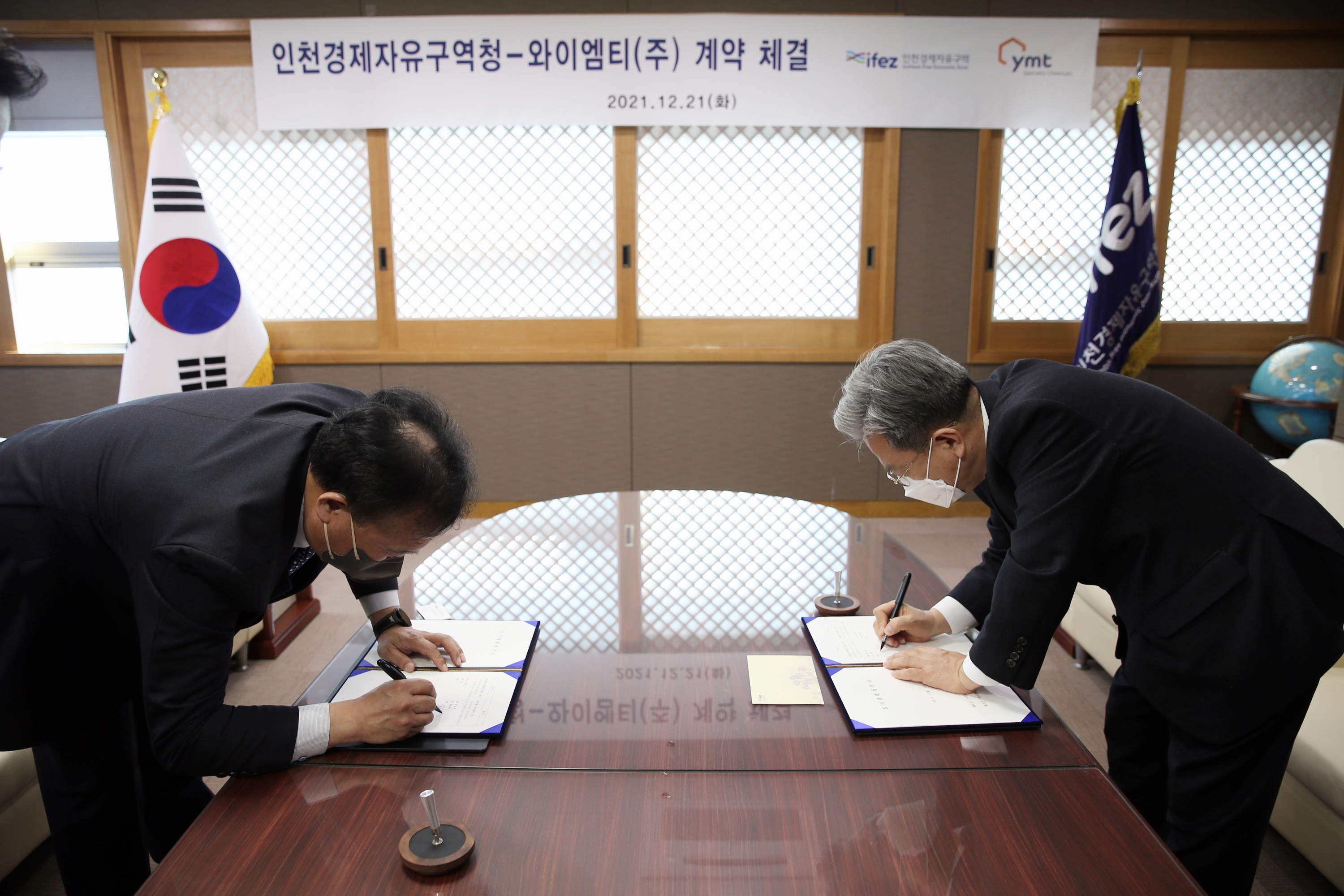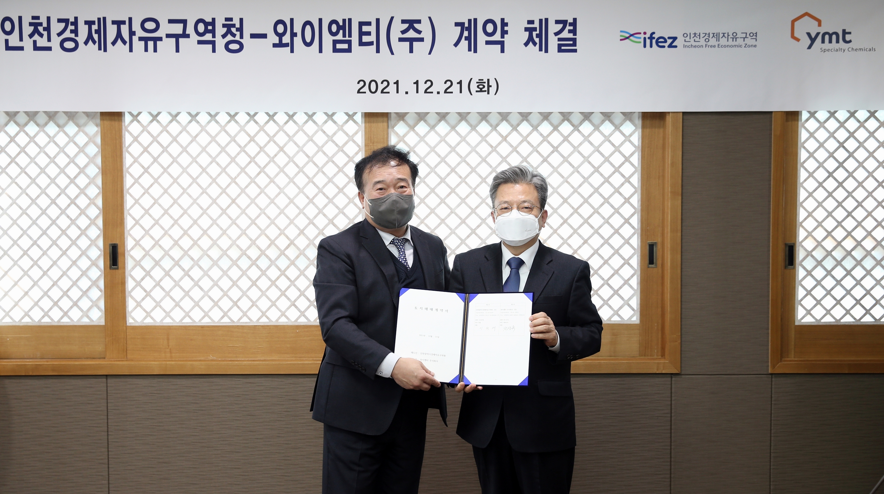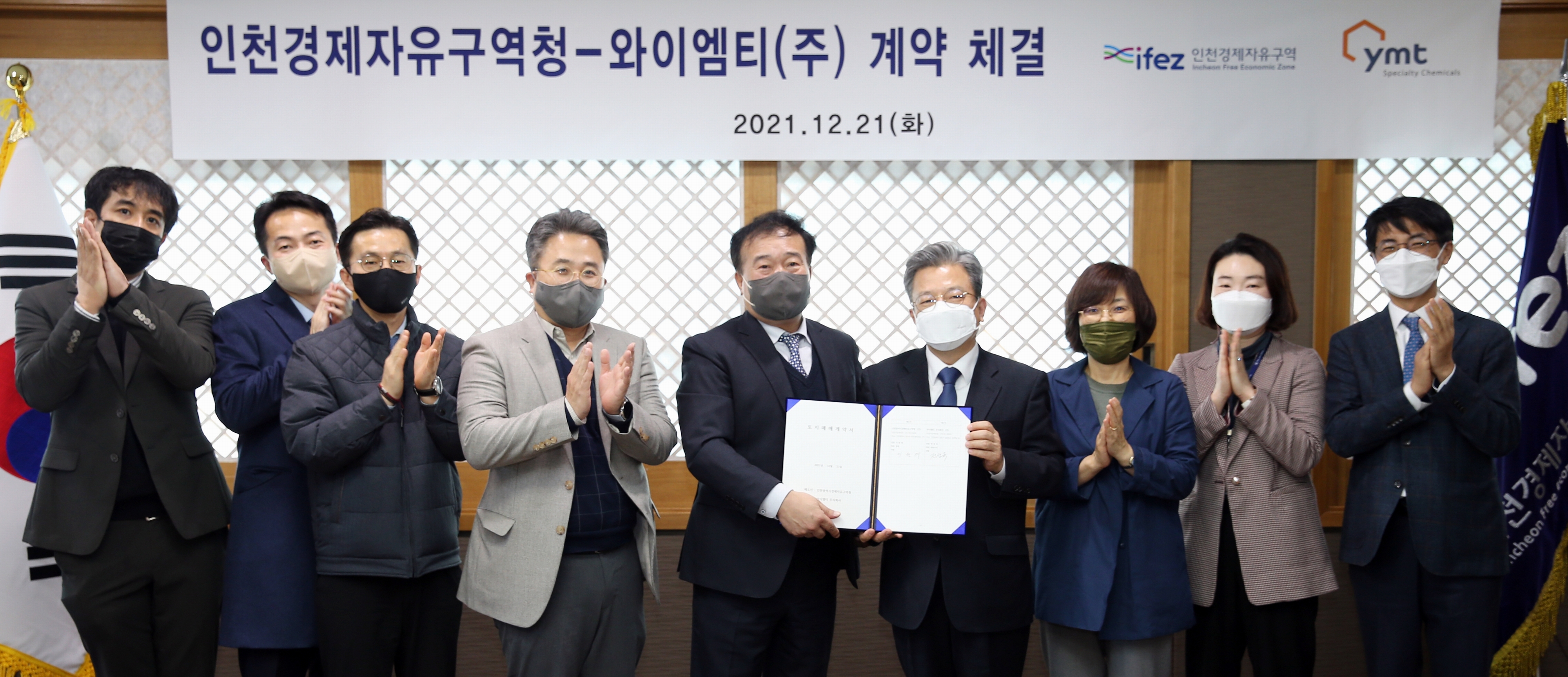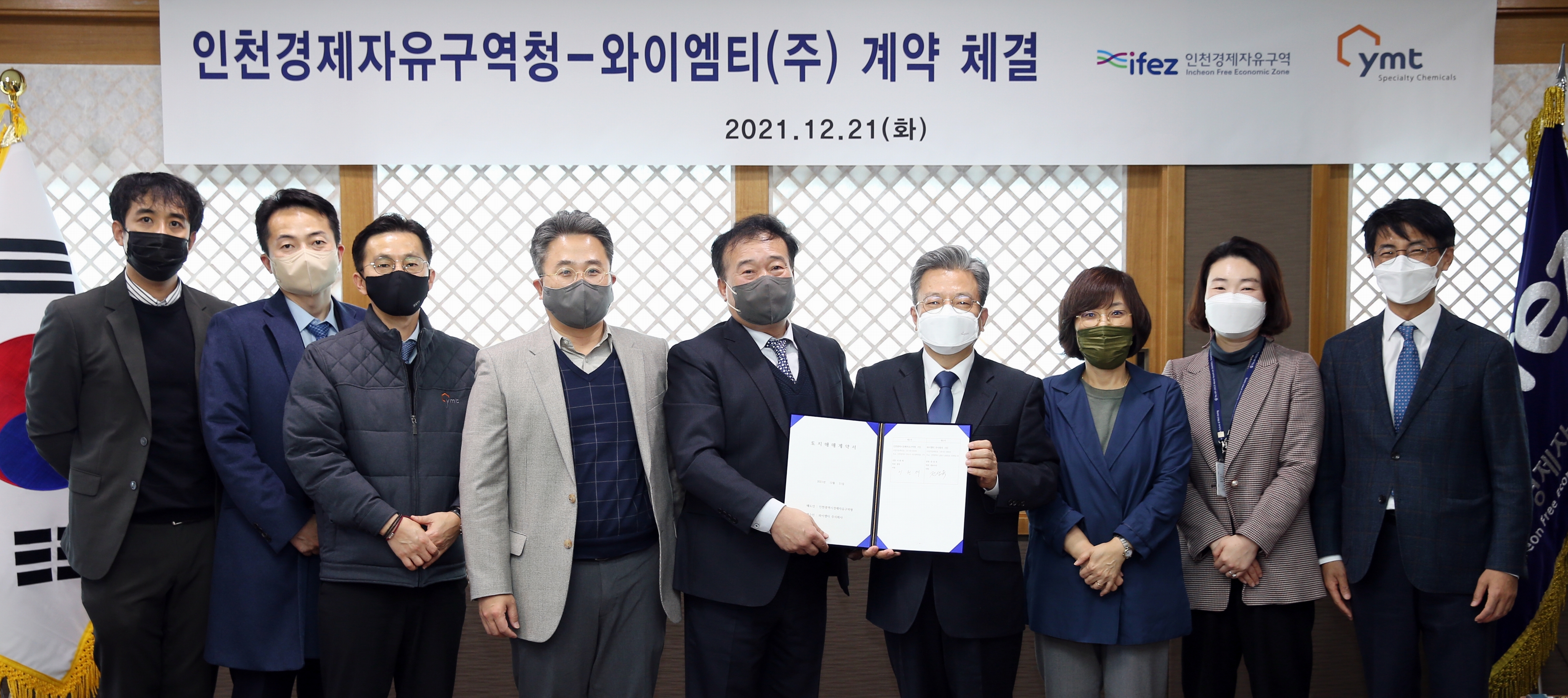 On December 21, 2021 (Tuesday), IFEZ signed a land sales contract with YMT Co., Ltd. to build a research institute in Songdo International City. YMT Co., Ltd. plans to build a research institute for bio-research and development using electronic parts chemical materials and copper fabrics in Ks10-3 lots (210-6/area 9924.4㎡) in Songdo International City with a total project cost of 48.6 billion won, and is scheduled to be completed in 2024. YMT Co., Ltd. is a KOSDAQ-listed company that develops PCB surface-treated chemical materials that are essential for mobile phones and tablets. YMT's products are used for Apple and Samsung's mobile phones and tablets, and electric vehicles of Tesla and BYD in China.