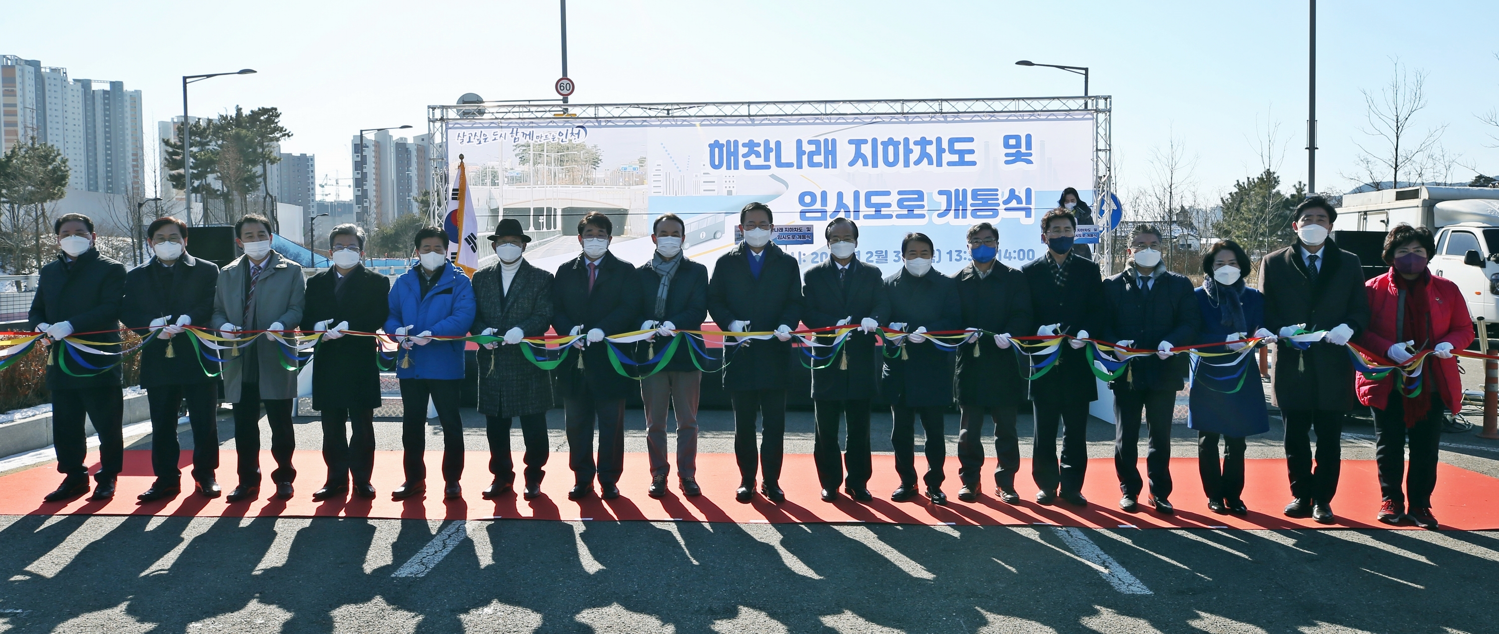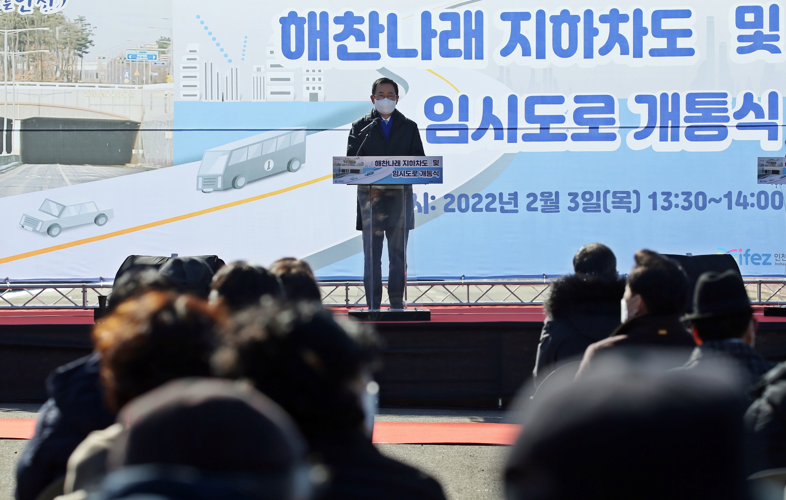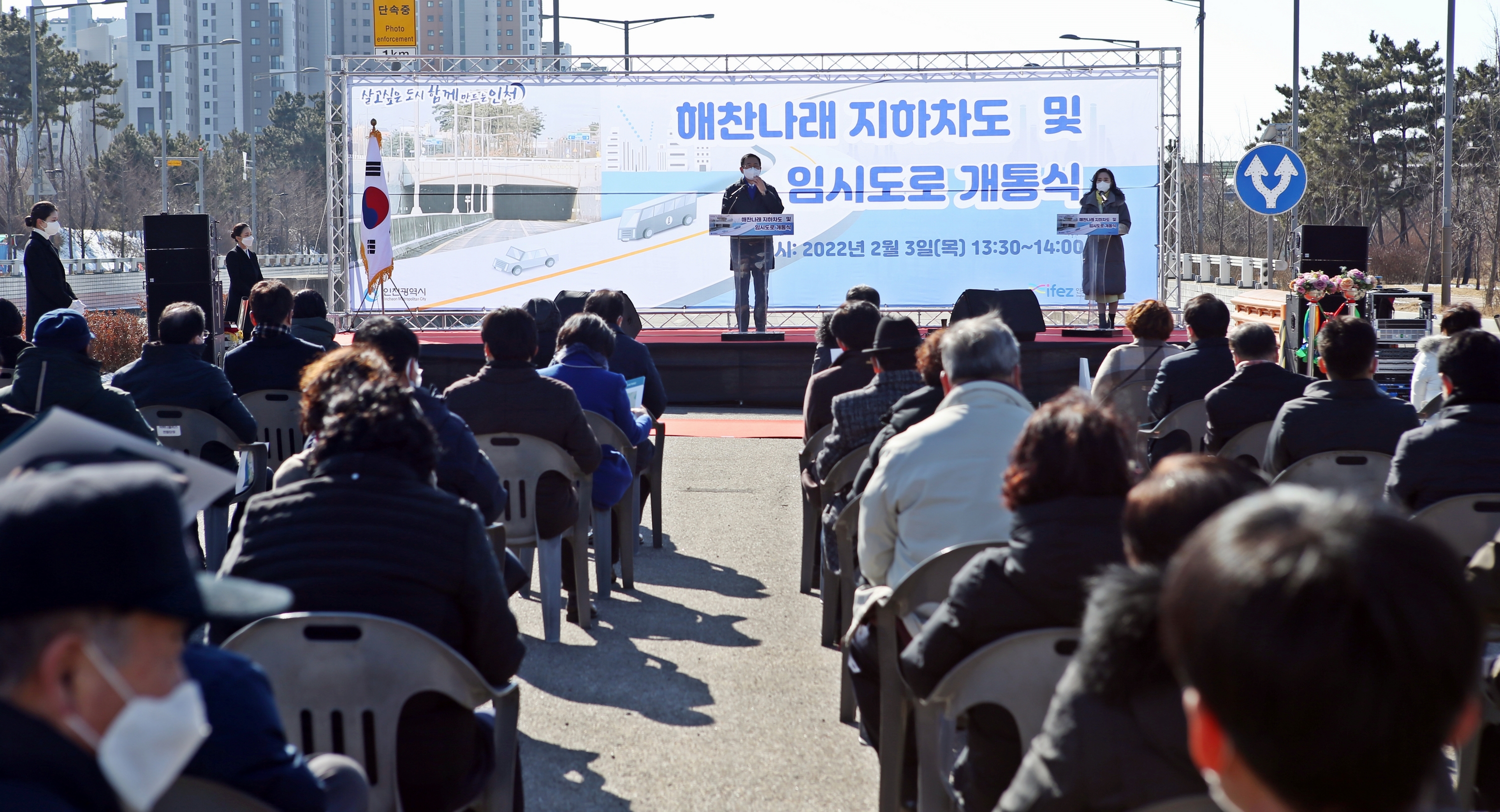 On February 3, 2022 (Thursday), IFEZ held the opening ceremony of the Haechan Narae Underground Road and Temporary Road in Yeongjong International City. Near the time of Section 1 of the 3rd Yeonryukgyo Bridge, a 480m long and 9m wide temporary road connecting Haneul-daero and Yeongjong-daero was completed, and the Haechannarae Underground Road was sequentially opened.