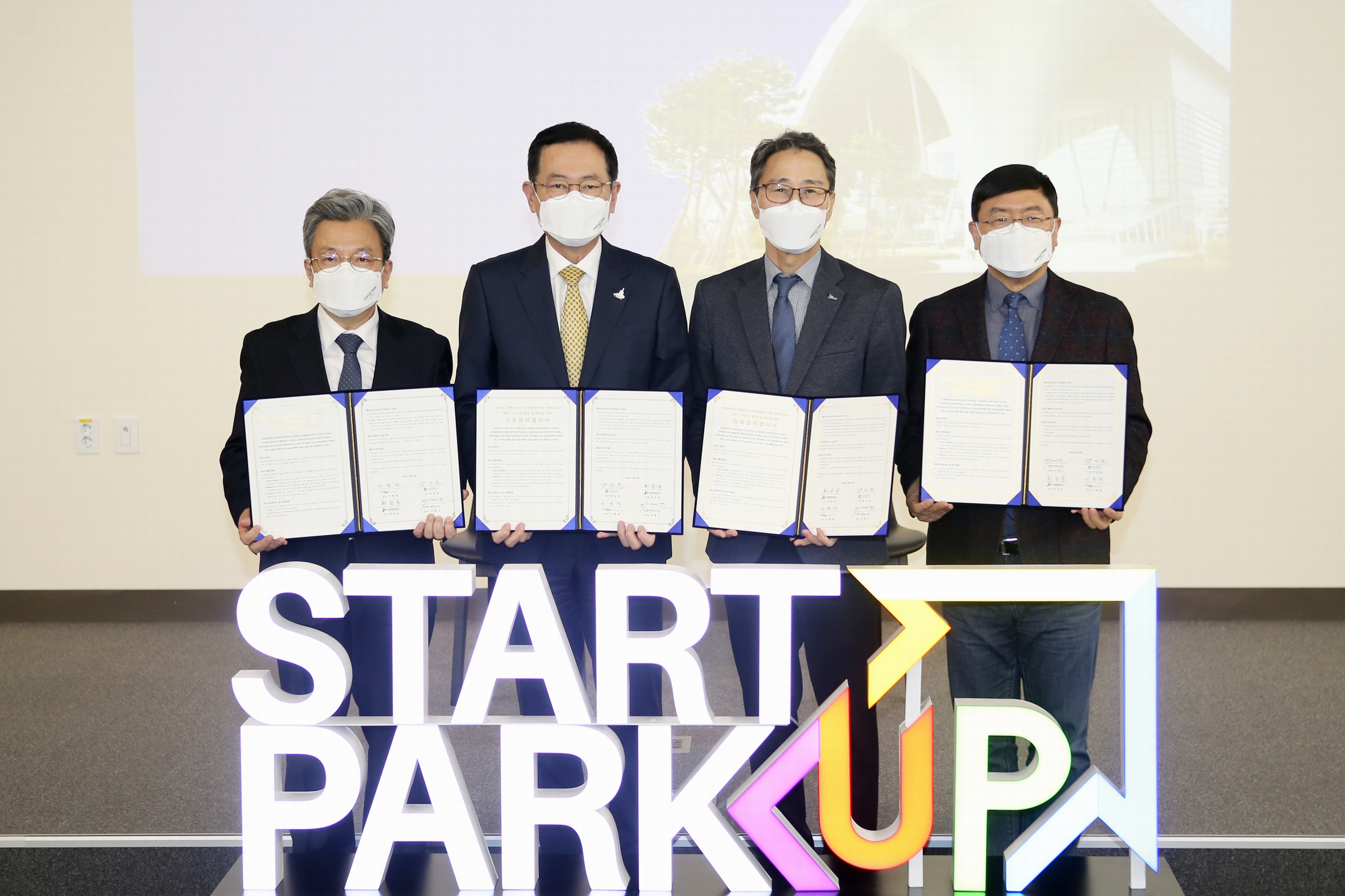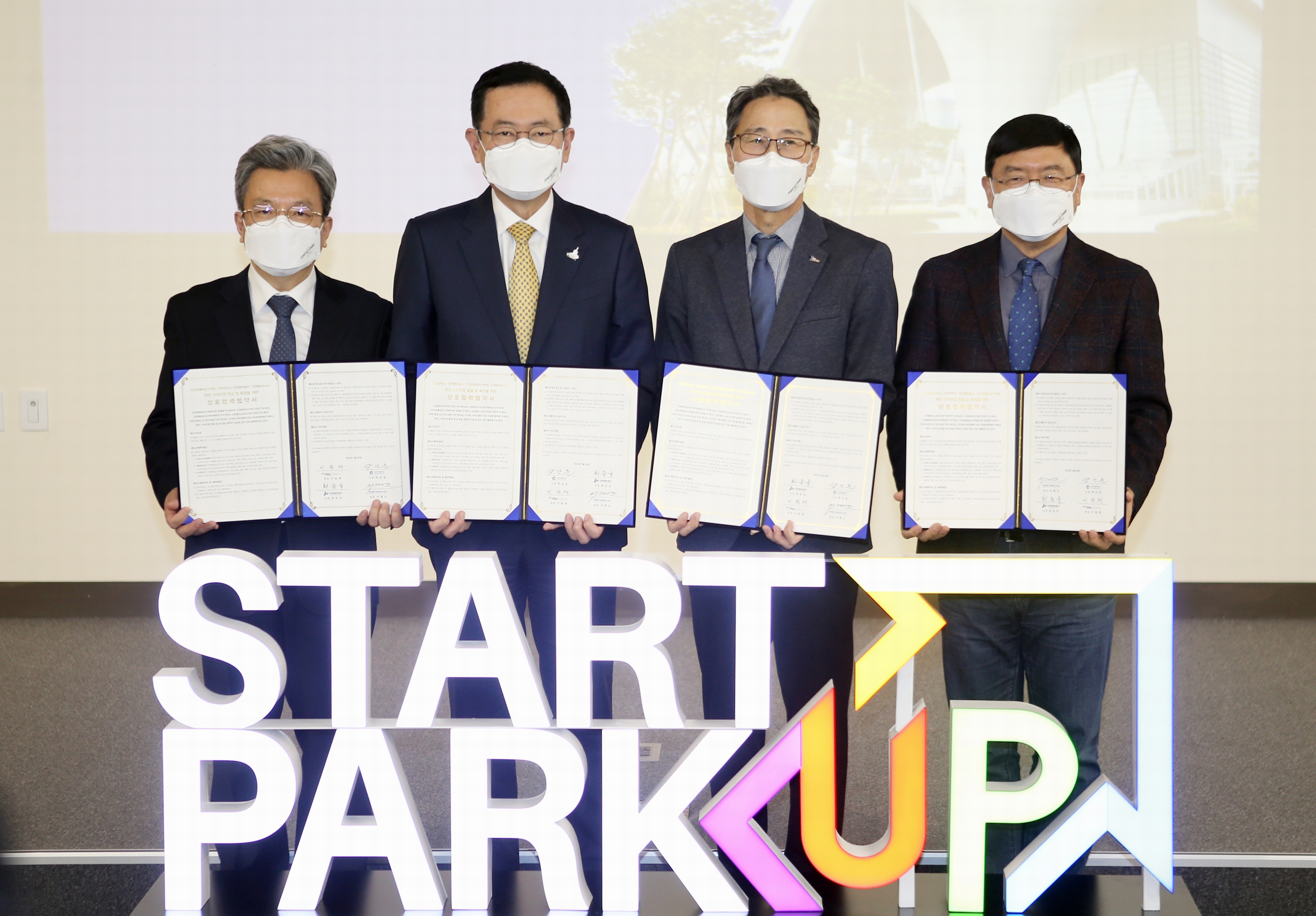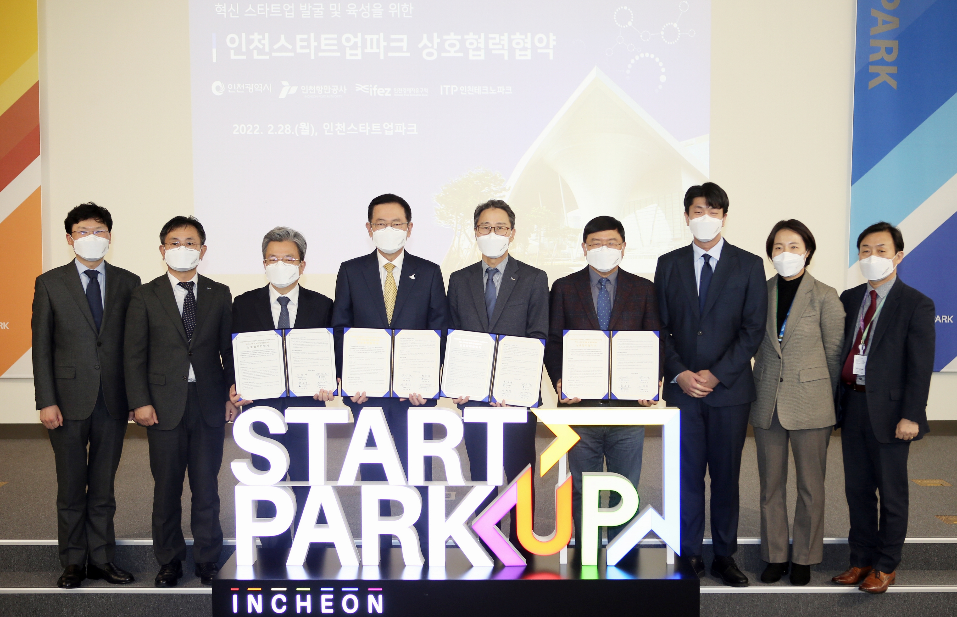 On Monday, February 28, 2022, Incheon Metropolitan City, Incheon Port Authority, and Incheon Techno Park signed a mutual cooperation agreement for Incheon Innovation Startup Park. The main contents of this agreement are △ Establishing policies and budgets to foster innovative startups △ Supporting infrastructure demonstration resources owned by Incheon Port Corporation △ Joint operation of the "Exhibit Bridge Project" program.