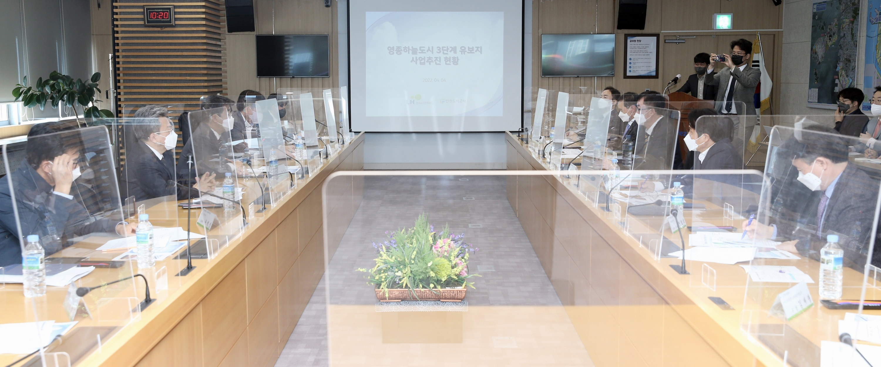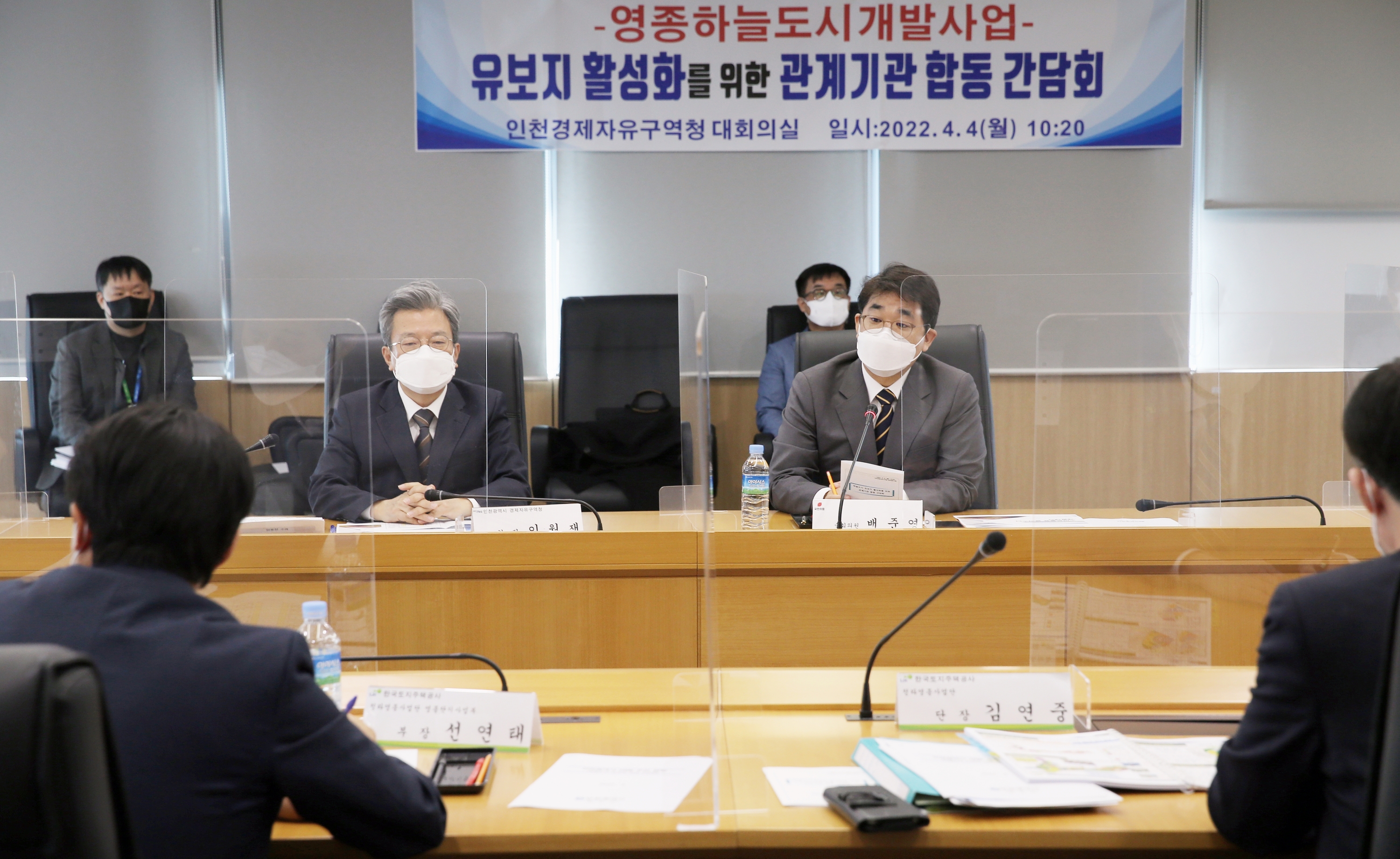 On April 4, 2022 (Monday), IFEZ held a meeting to revitalize Yeongjong Sky City. The development of the third-stage reserve in Yeongjong International City Sky City has been delayed for the past 15 years. Related organizations such as Korea Land and Housing Corporation (LH), Incheon Urban Corporation (iH), Incheon International Airport Corporation, and Incheon Metropolitan City participated in the meeting. According to the results of the project strategy establishment service, LH announced the layout of the space divided into industrial facility site, urban support facility site, self-sufficient complex, and maintenance site, Incheon International Airport announced the development of smart logistics cluster.