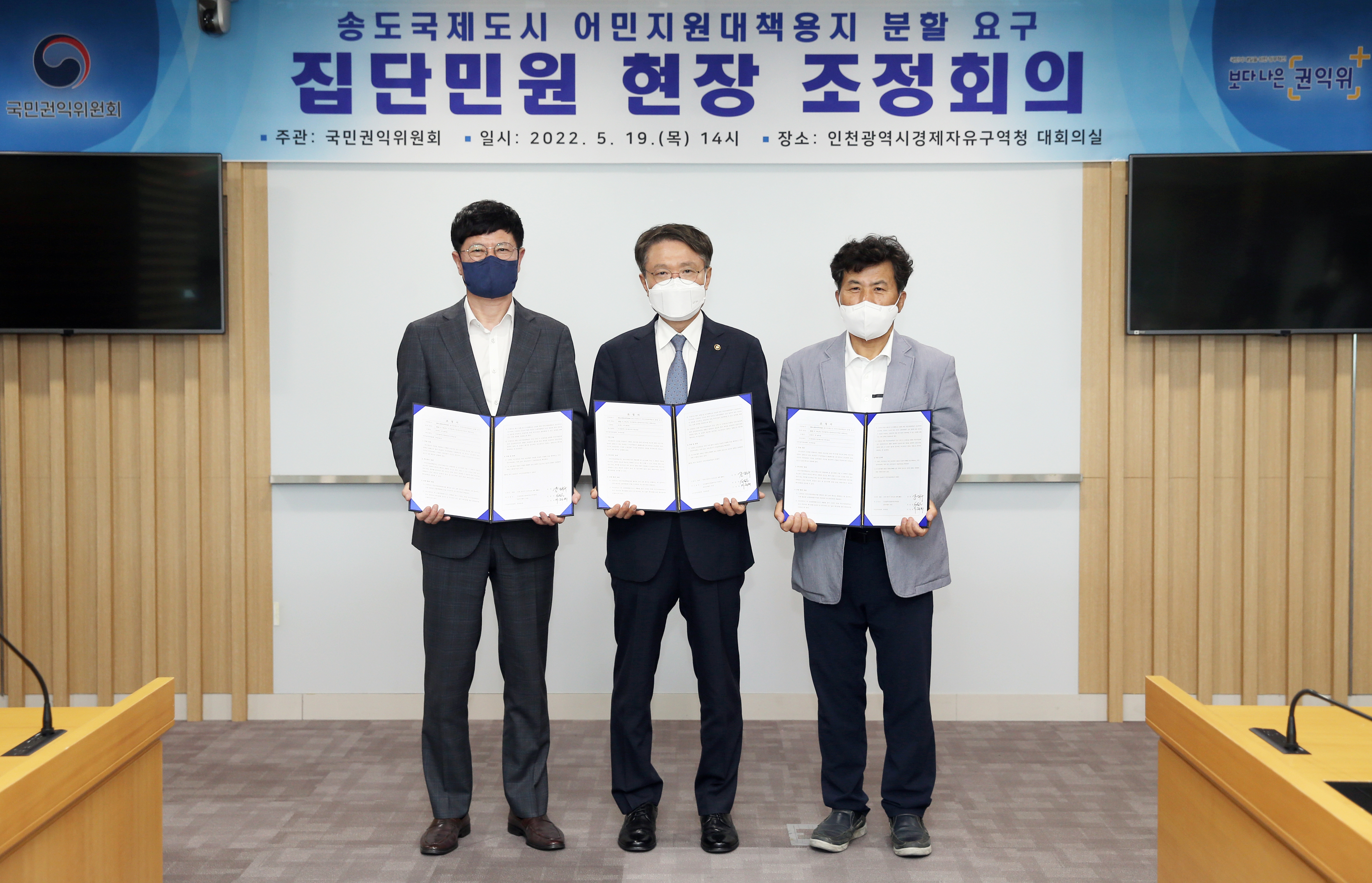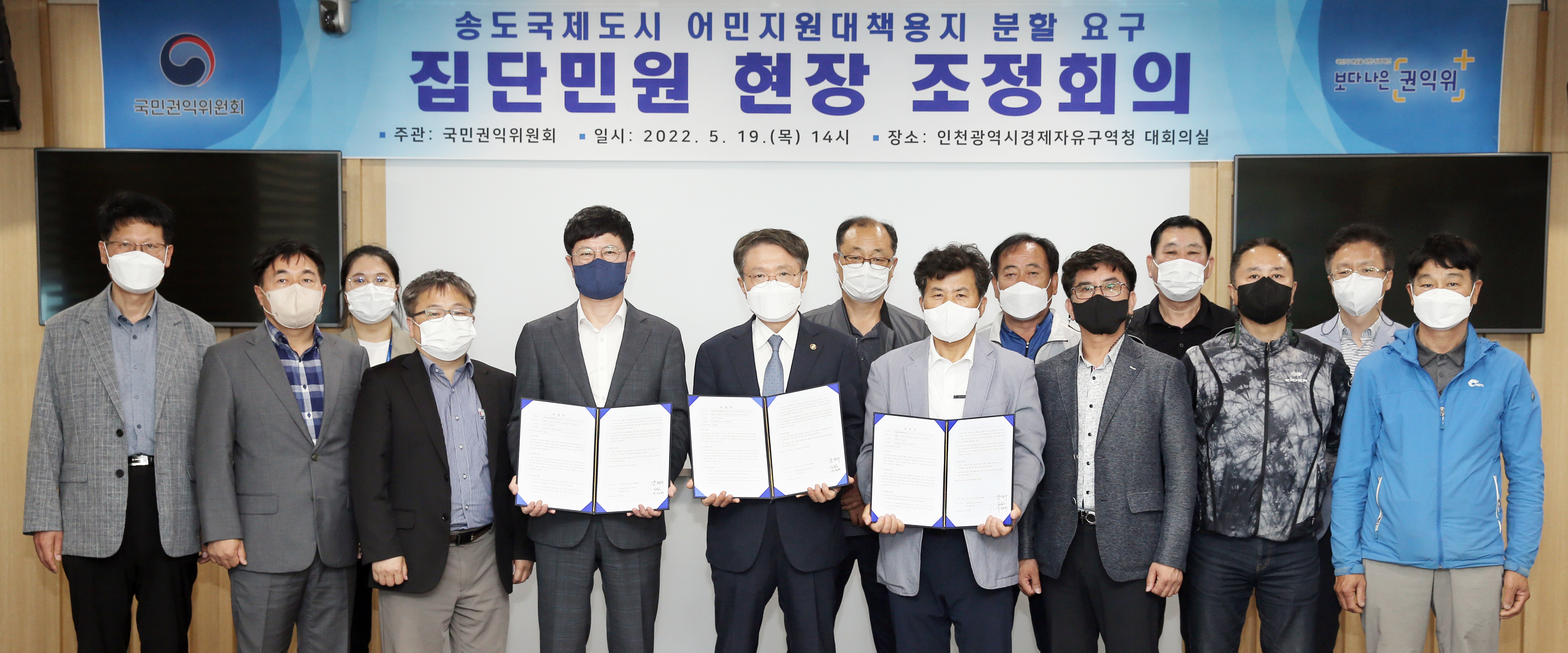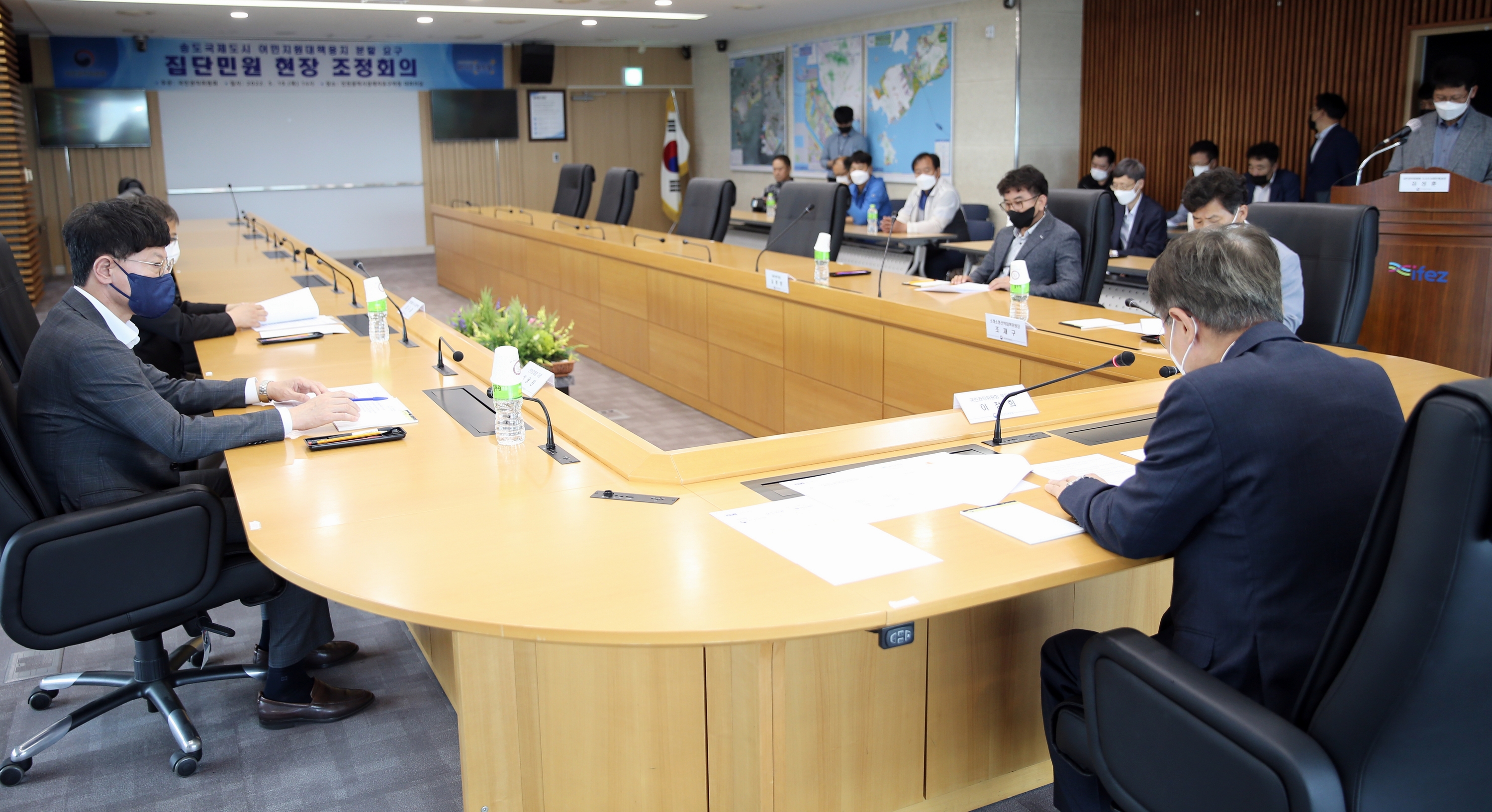 On May 19, 2022 (Thursday), IFEZ and the Anti-Corruption and Civil Rights Commission held an on-site coordination meeting for collective complaints demanding the division of land for supporting fishermen in Songdo International City. The mediation meeting was held to solve the problem of dividing the single land support (Rm3) located in Songdo International City's 11-2 tool into four. The main content of the mediation plan is to divide the △ Fisherman Support Plan from the current single plot into four plots along with the new road crossing the center of the plot. △ Fishermen acknowledge that even if the land supply area decreases, they will negotiate and decide on their own.