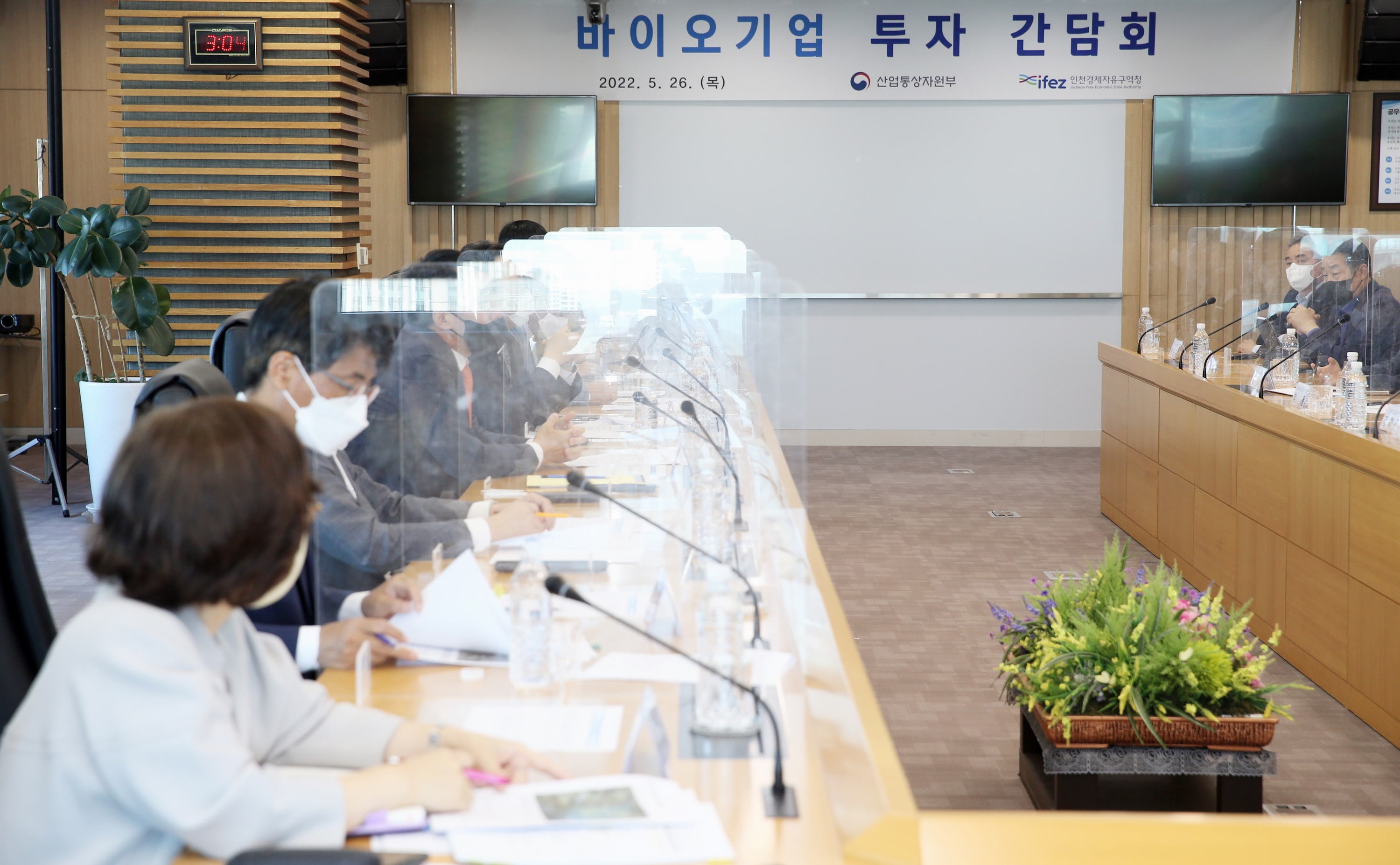 On May 26, 2022 (Thursday), IFEZ and the Ministry of Trade, Industry and Energy held a "Bio Enterprise Investment Meeting." Representatives and executives of nine companies representing Korea's bio industry, including Celltrion, Samsung BioLogics, and SK Bioscience, attended the meeting, which was held to check investment plans and difficulties of bio companies.